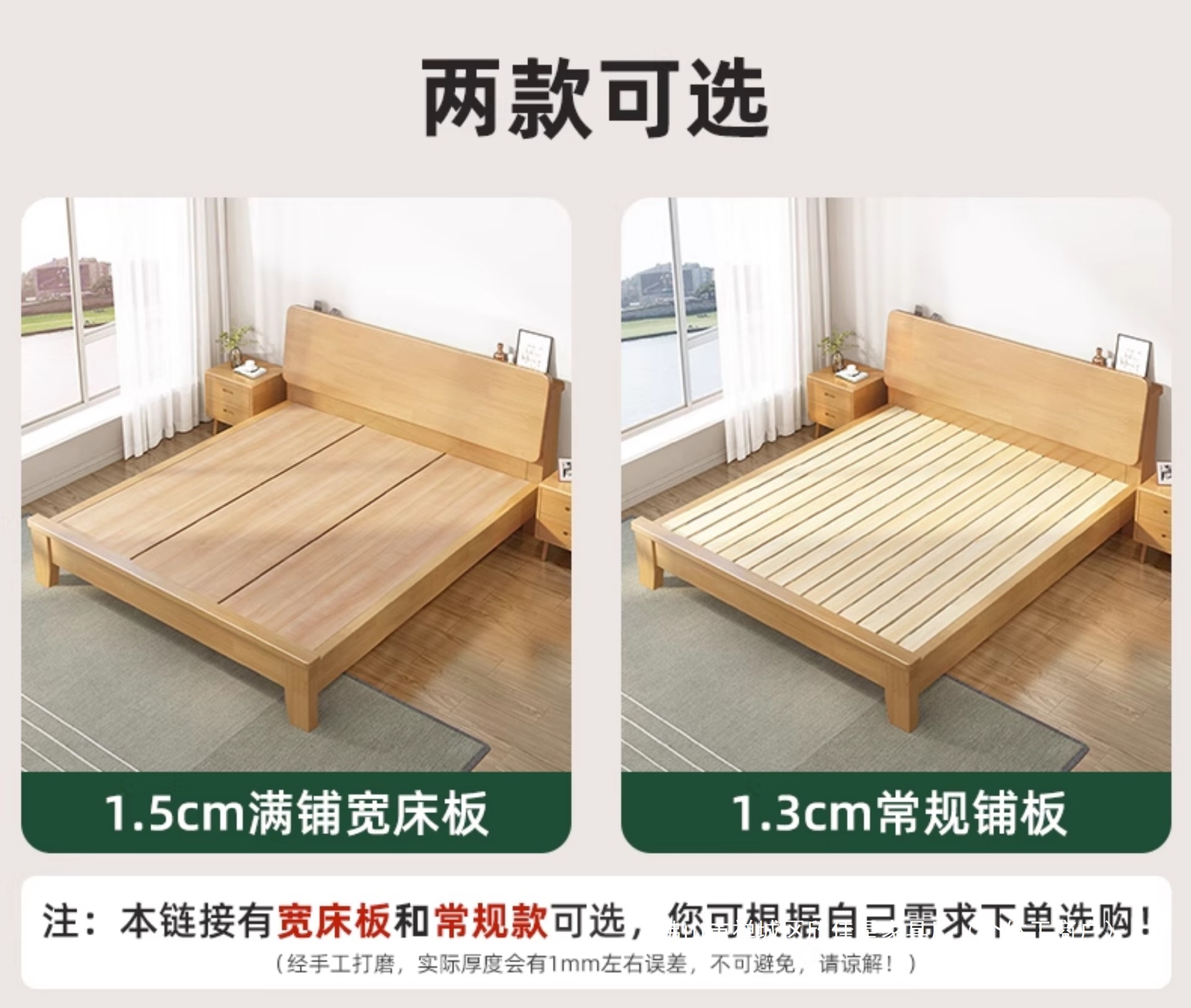 • 원목 컬러의 와이드 침대보드 + 두꺼워진 5cm 코코넛 야자 매트 + 침대 옆 탁자 * 1 [위층 패키지 설치]