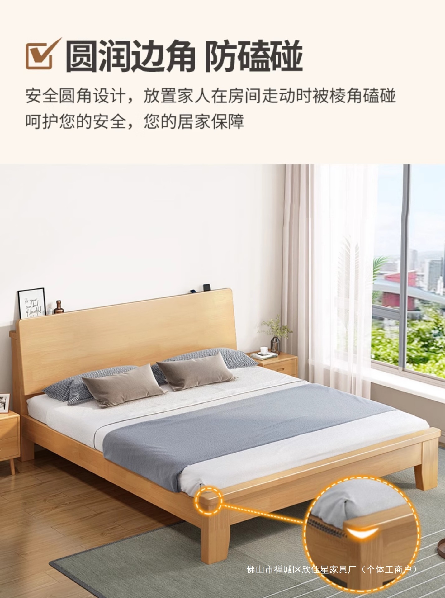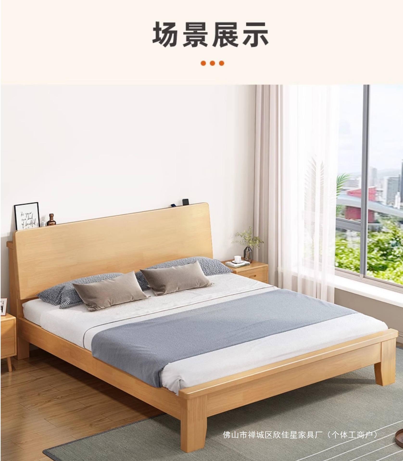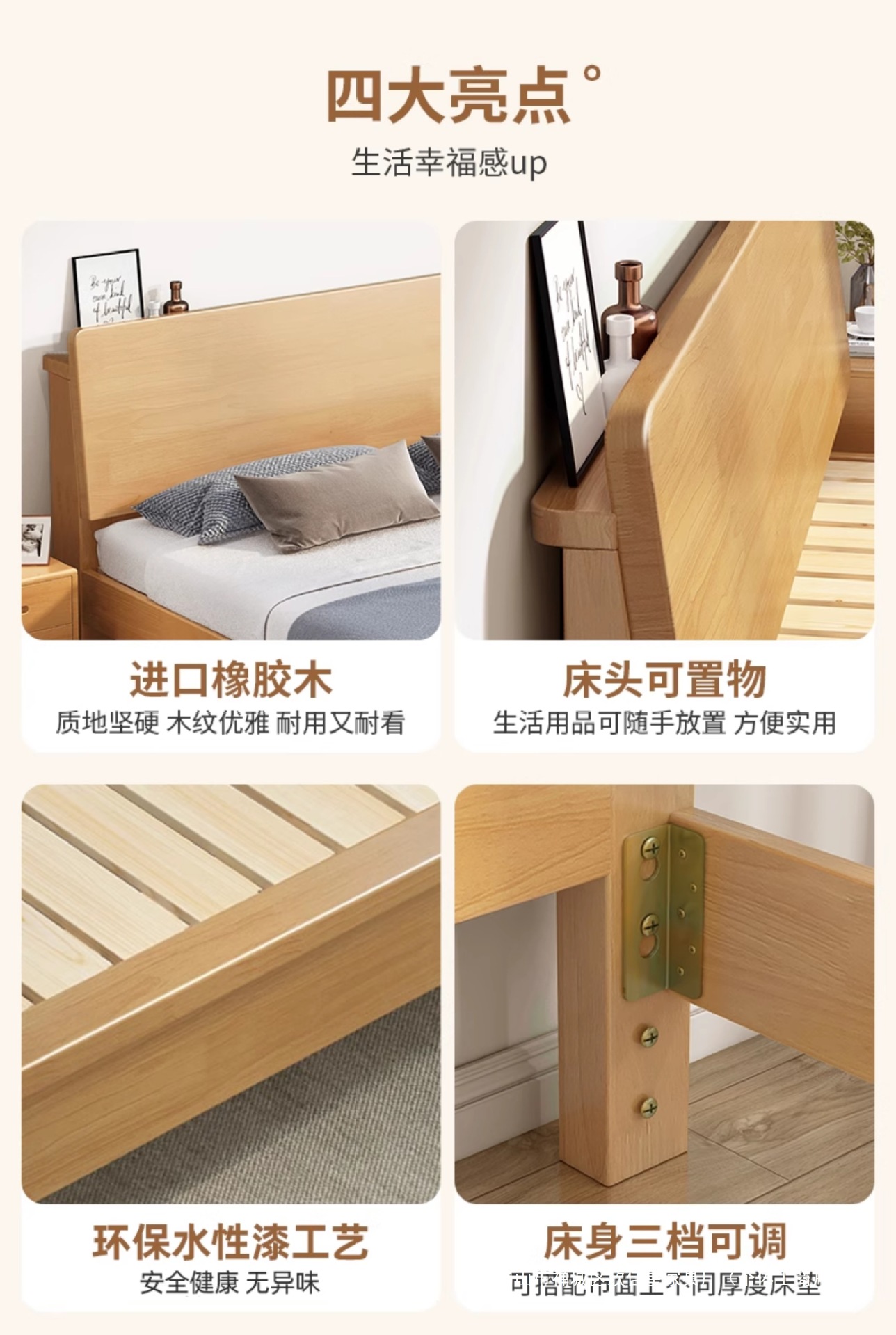 침대 원목 침대 모던 심플 1.5m 침대 임대실 더블 침대 마스터 침실 1.8 고무나무 침대 싱글 침대 프레임스토어 가기