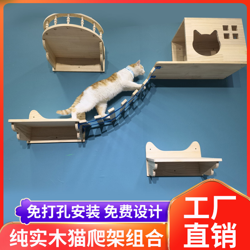 고양이 클라이밍 프레임 벽걸이형 원목 벽걸이형 고양이 둥지 및 고양이 트리 일체형 고양이 프레임 공간 캡슐은 공간을 차지하지 않습니다. 벽걸이형 고양이 클라이밍 컬럼스토어 가기