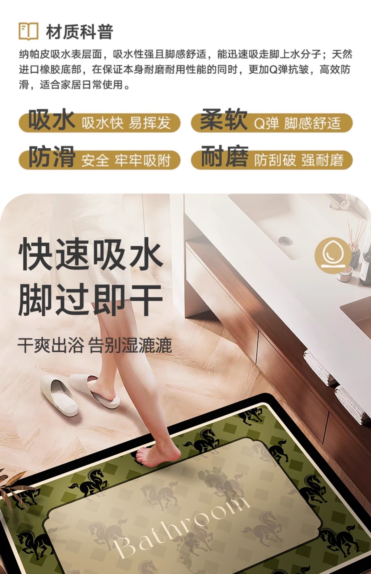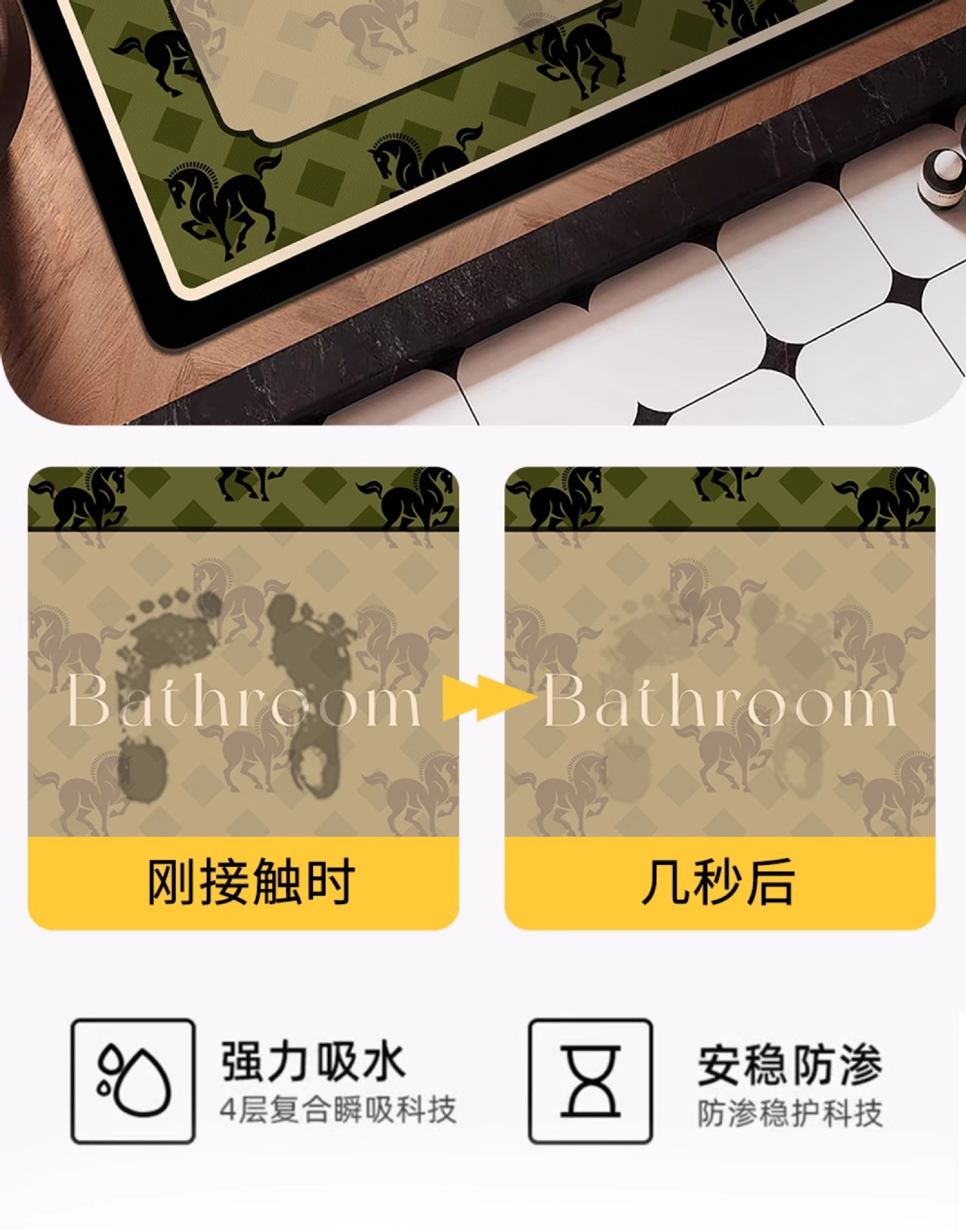 레트로 고급 욕실 매트 디 아톰 진흙 흡수성 미끄럼 방지 발 매트 욕실 건조하고 젖은 분리 빠른 건조 카펫 가구
