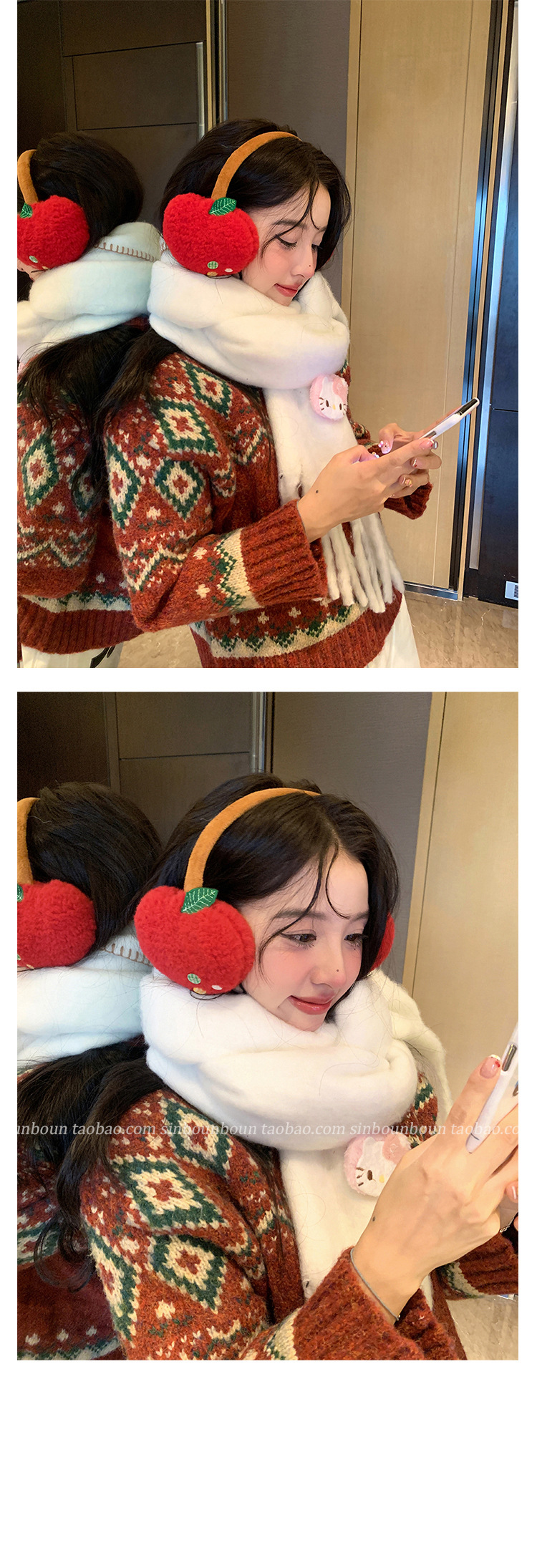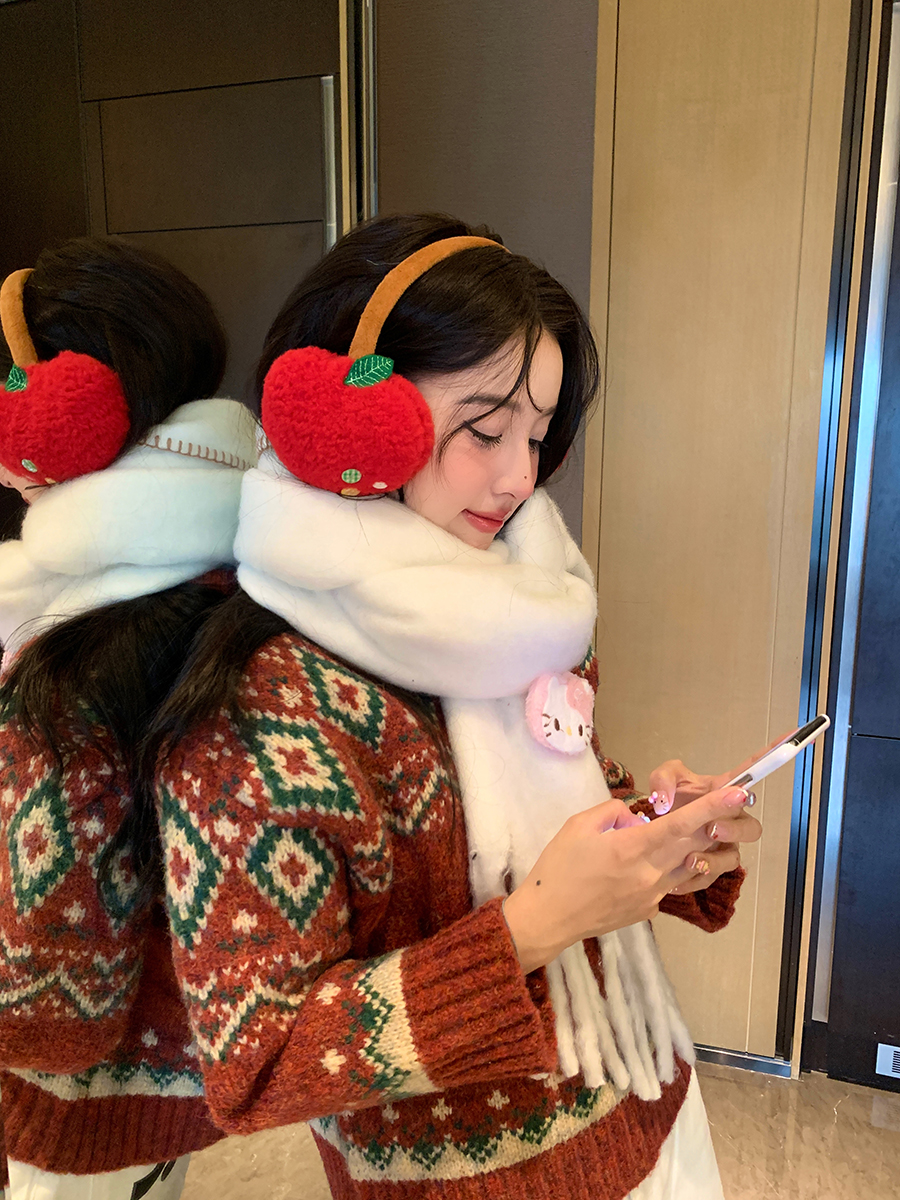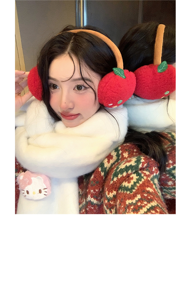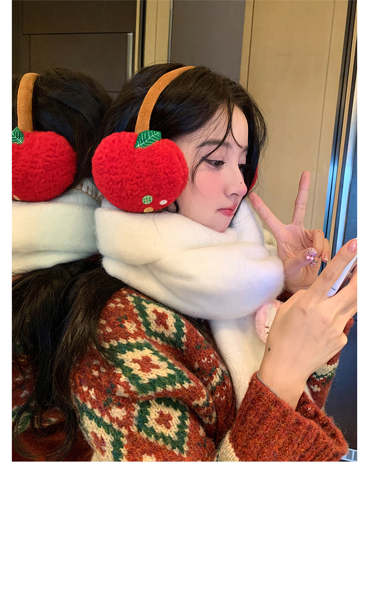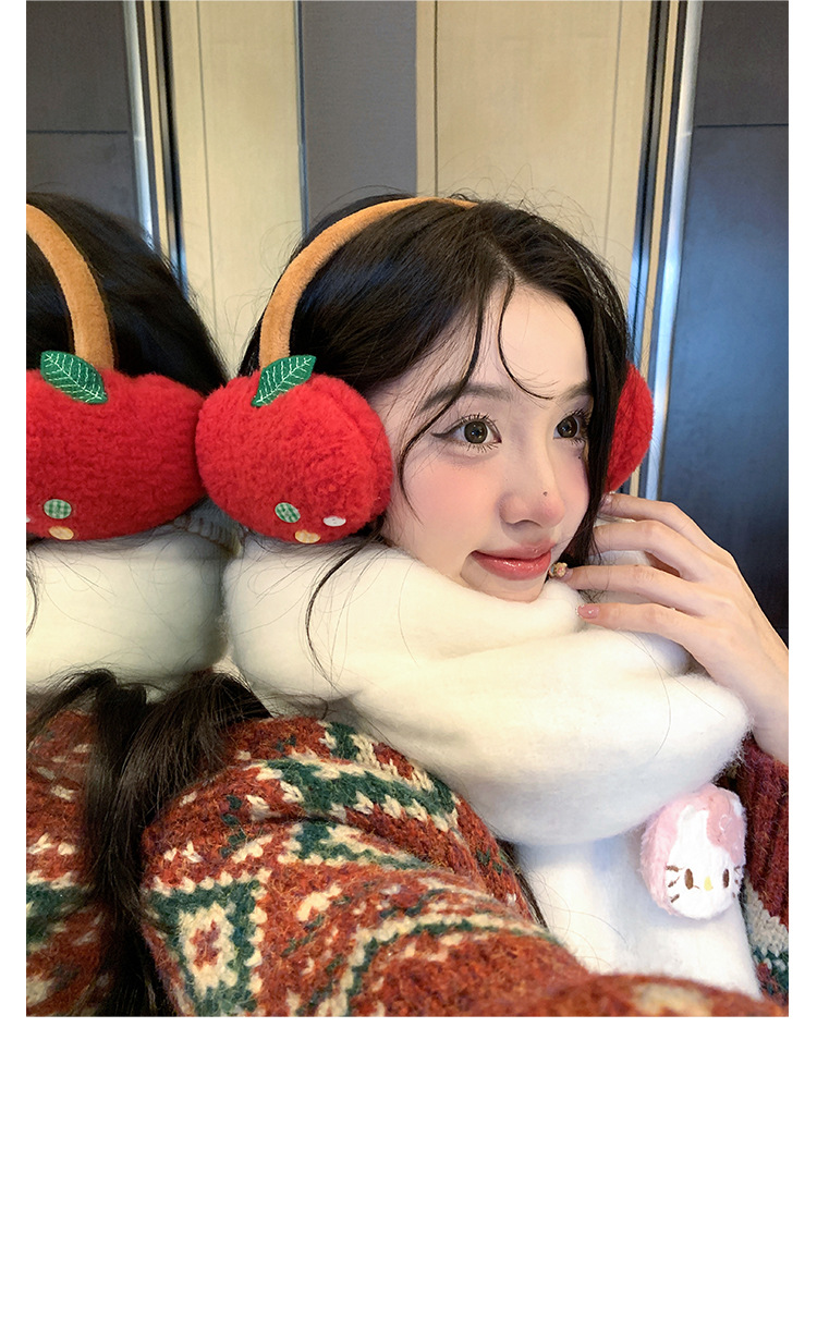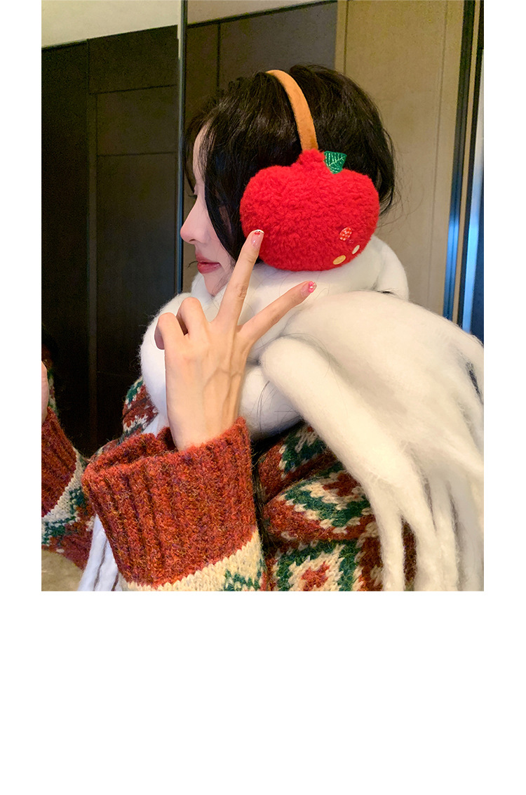 귀여운 사과 귀마개, 동결 방지, 따뜻하고 두꺼운 귀 보호 귀마개, 야외 사이클링 귀마개, 여성용 헤드폰 스타일, 겨울 도매스토어 가기