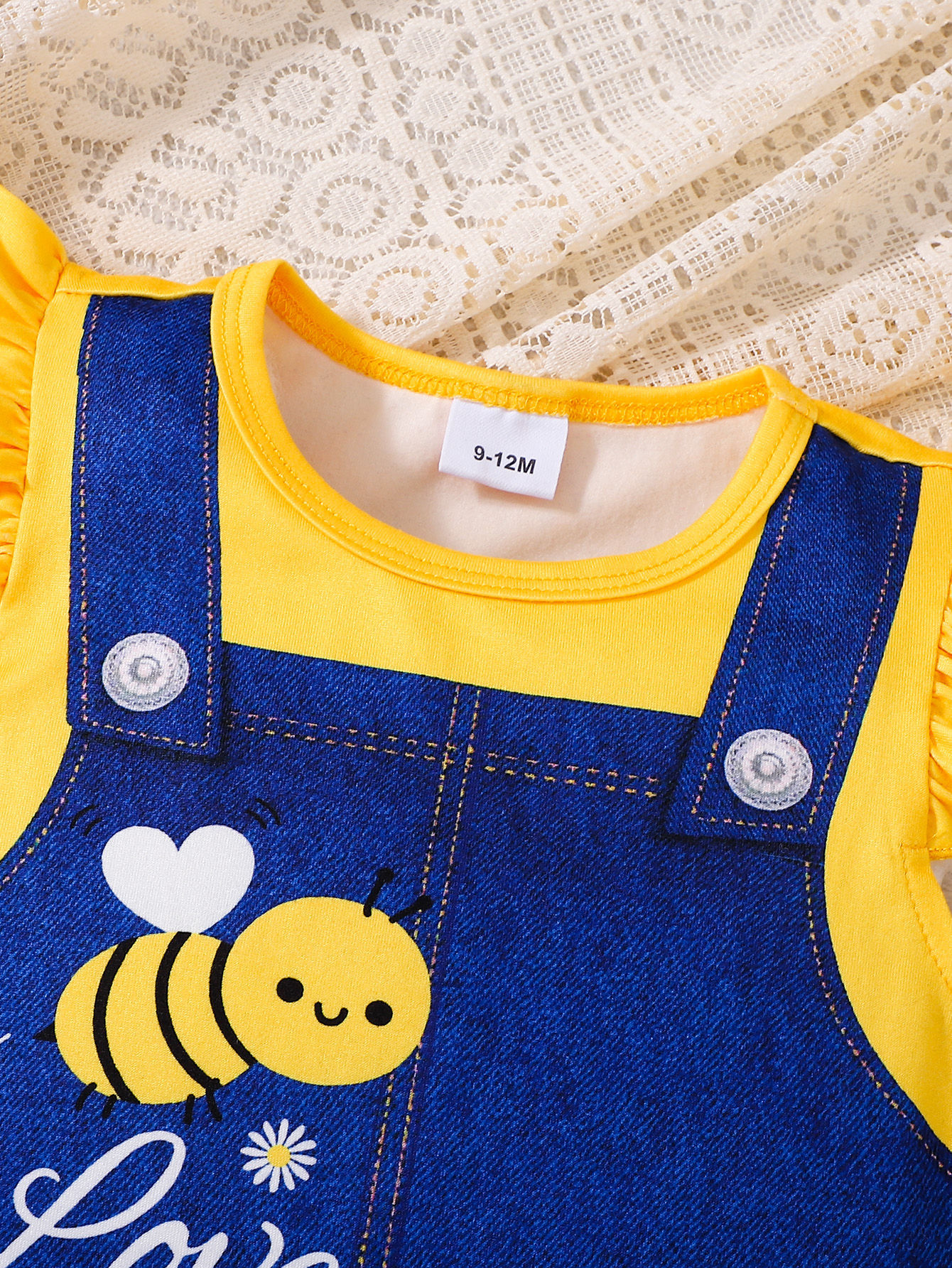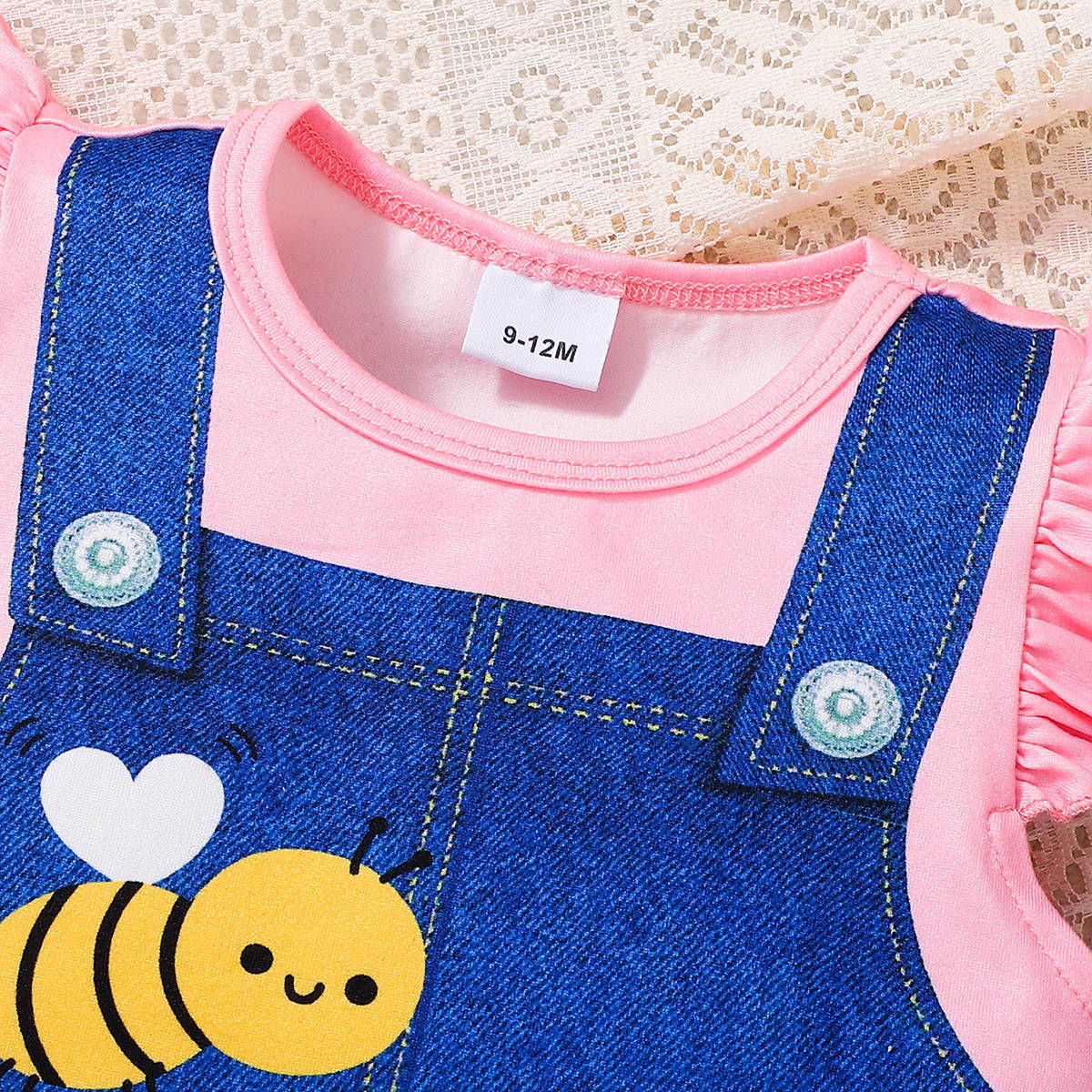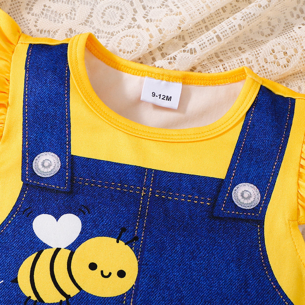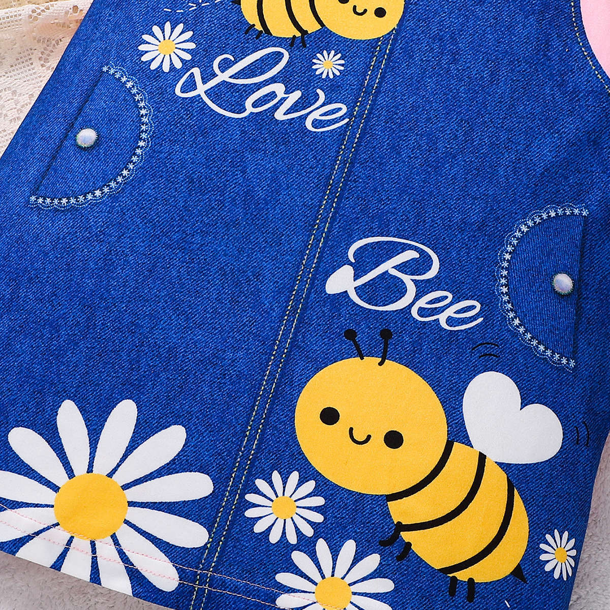 아동복 유럽과 미국 스타일의 소녀 귀여운 꿀벌 스트랩 프린트 라운드 넥 플라잉 슬리브 캐주얼 드레스 Bee Fun