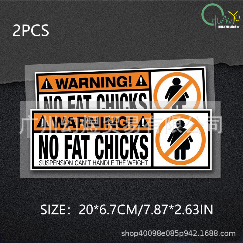자동차 및 오토바이 장식 방수 스티커를위한 No Fat Chicks 자동차 스티커 전용 국경 간 전자 상거래