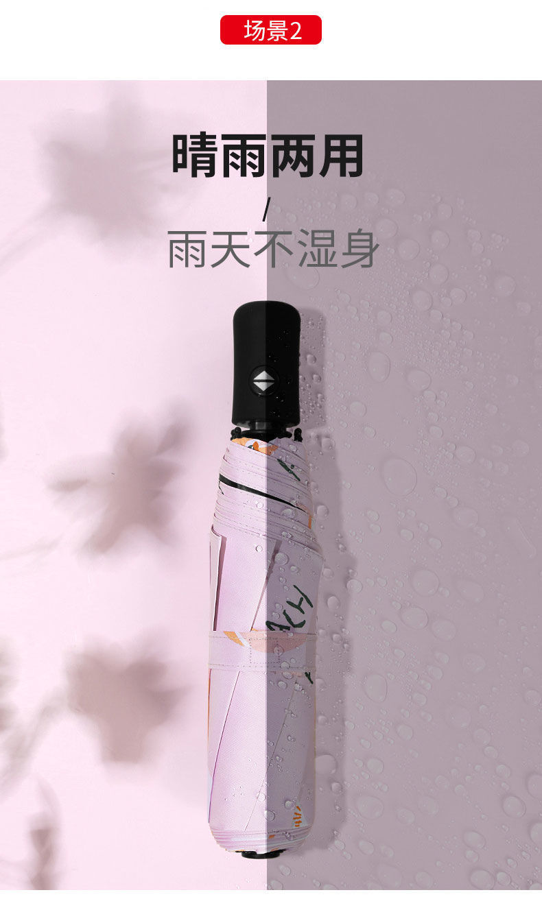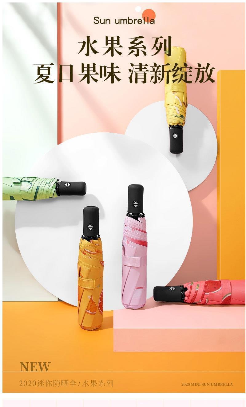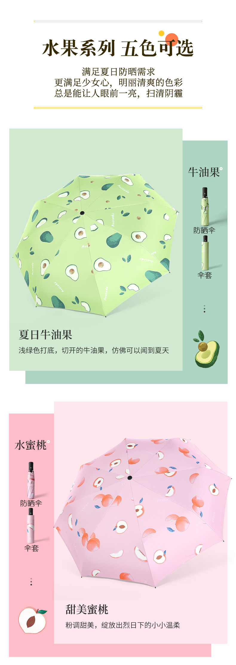 완전 자동 접는 학생 과일 맑고 비오는 우산 검은 고무 햇빛 UV 보호 햇빛 우산 광고 우산스토어 가기
