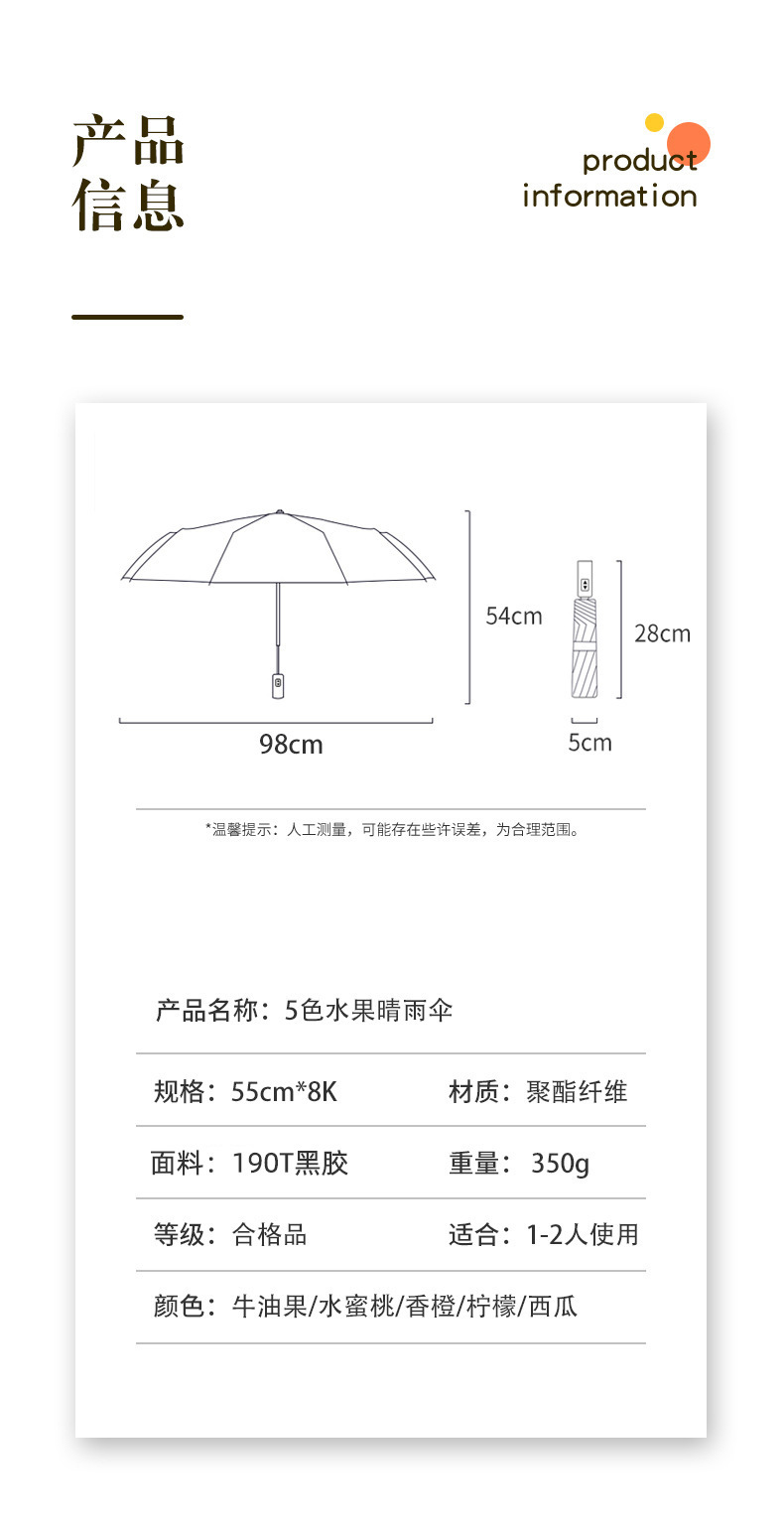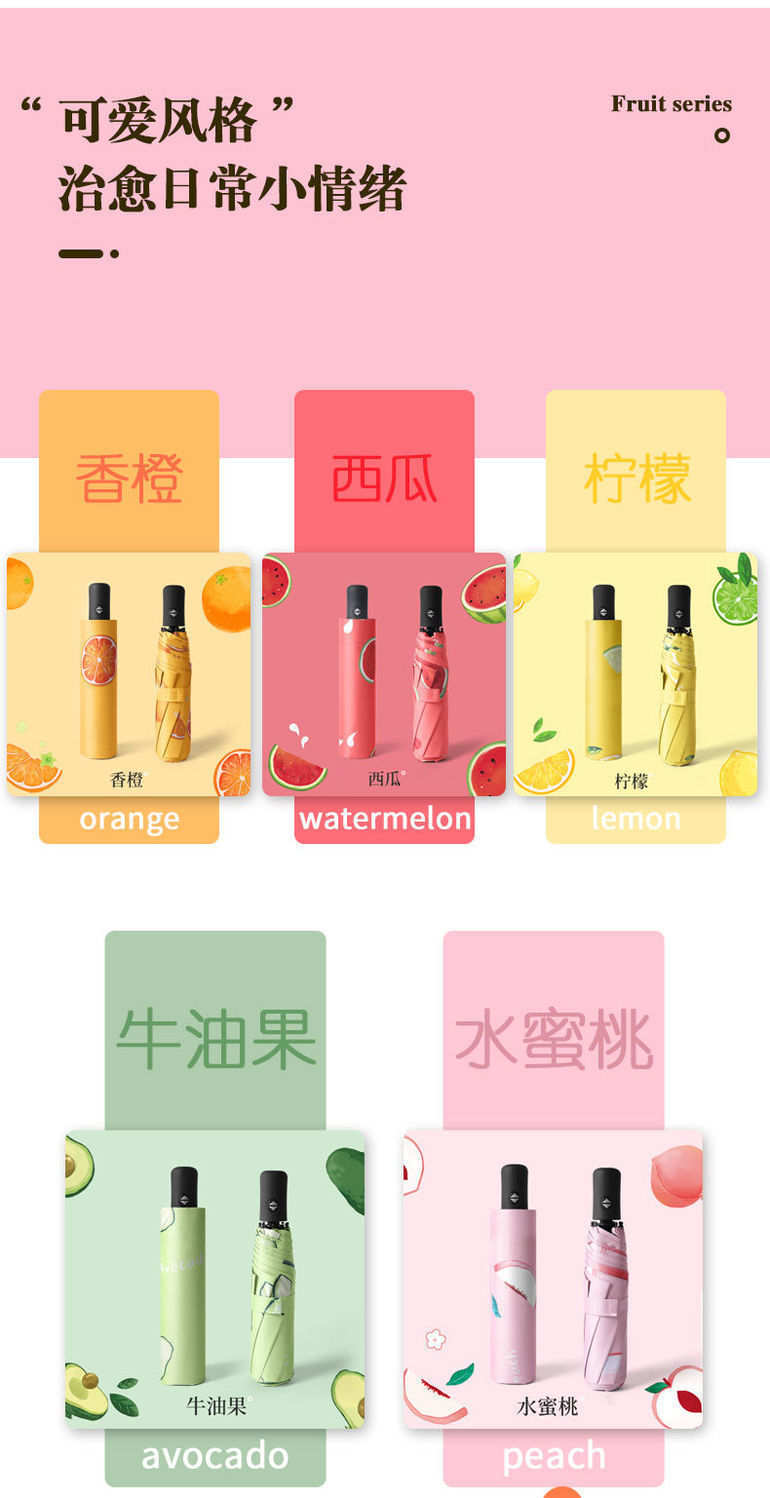 완전 자동 접는 학생 과일 맑고 비오는 우산 검은 고무 햇빛 UV 보호 햇빛 우산 광고 우산