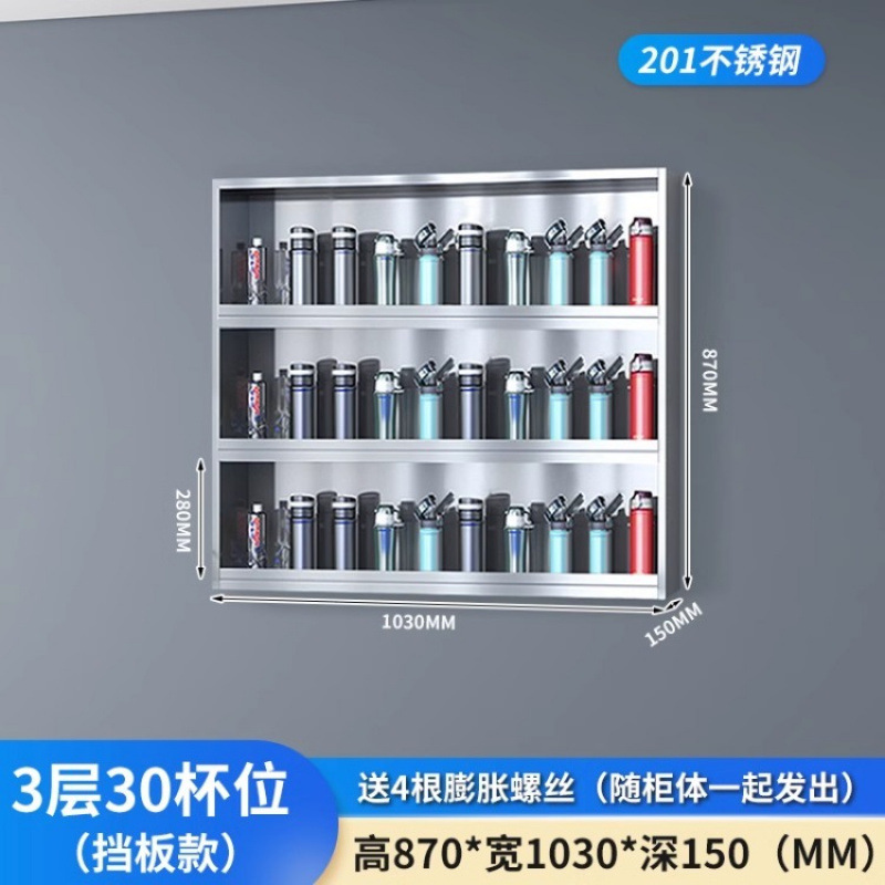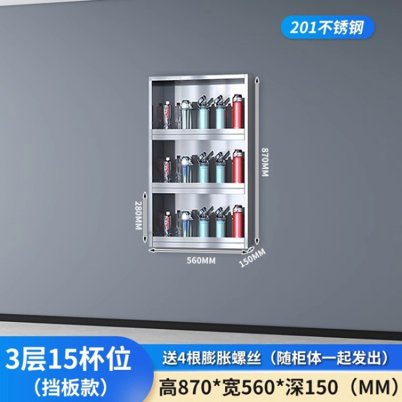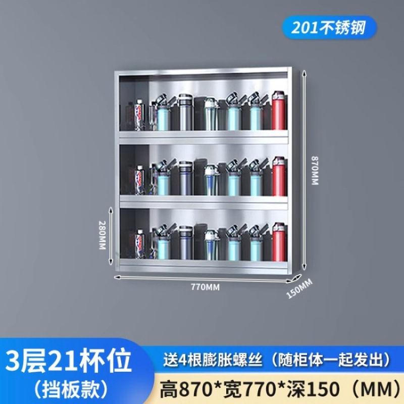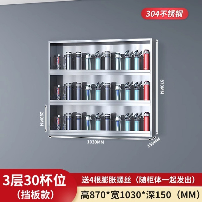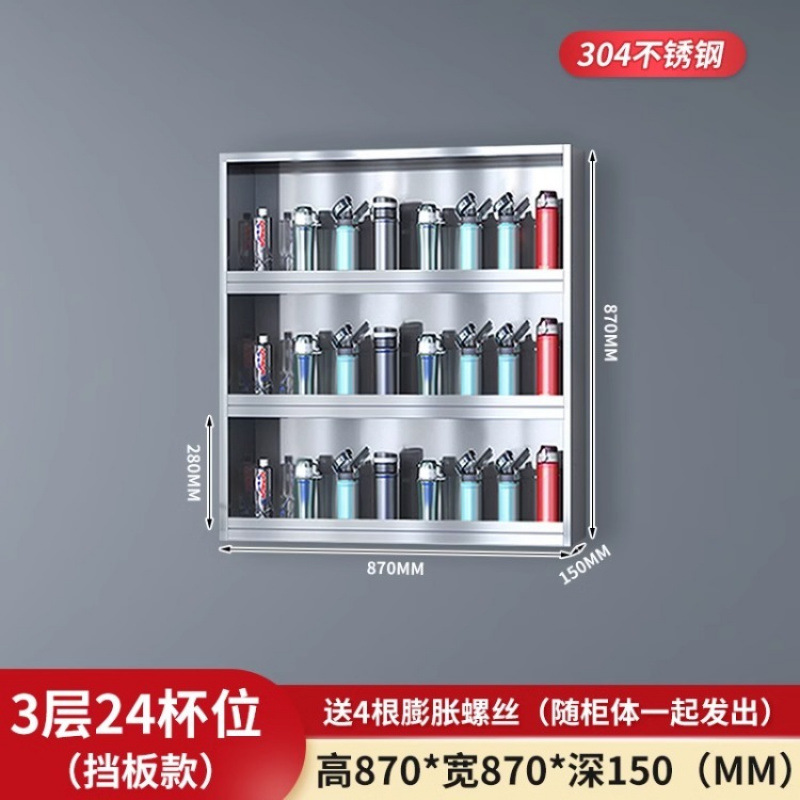 不锈钢壁挂式水杯架工厂员工茶杯存放柜多层置物架杯子收纳架