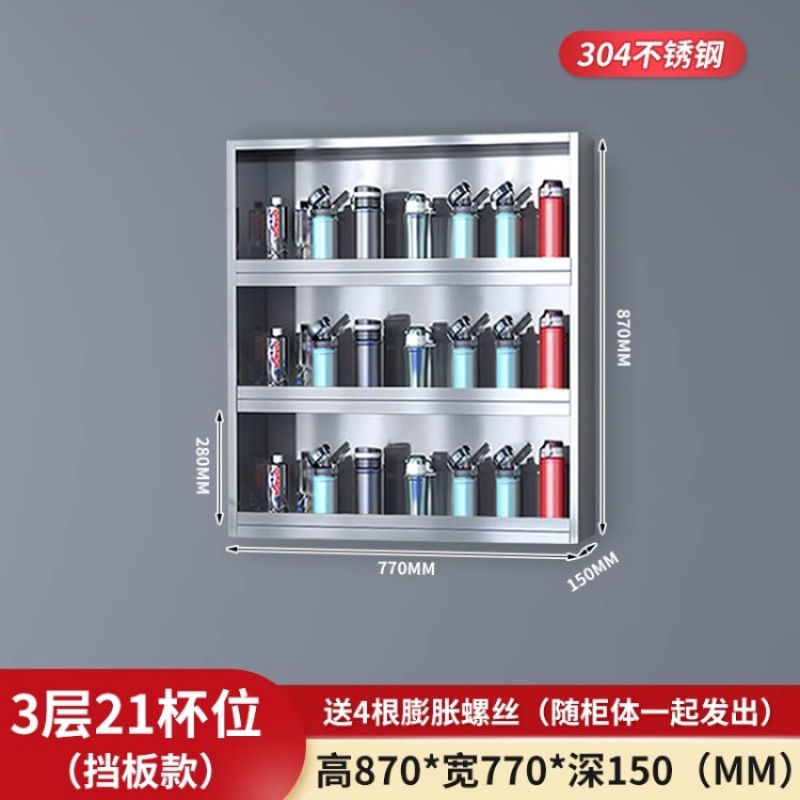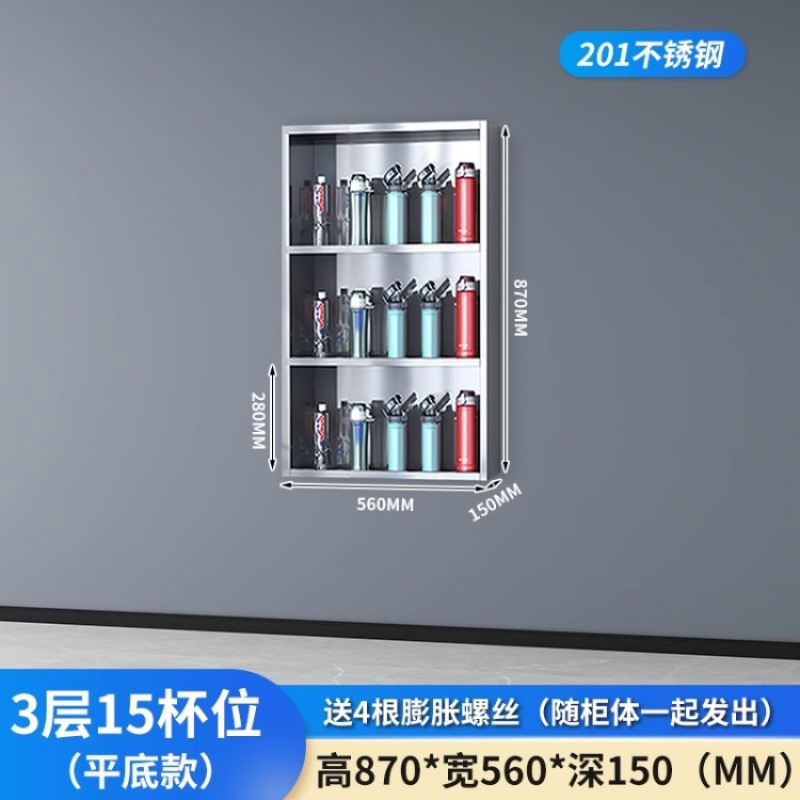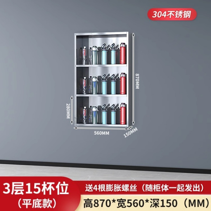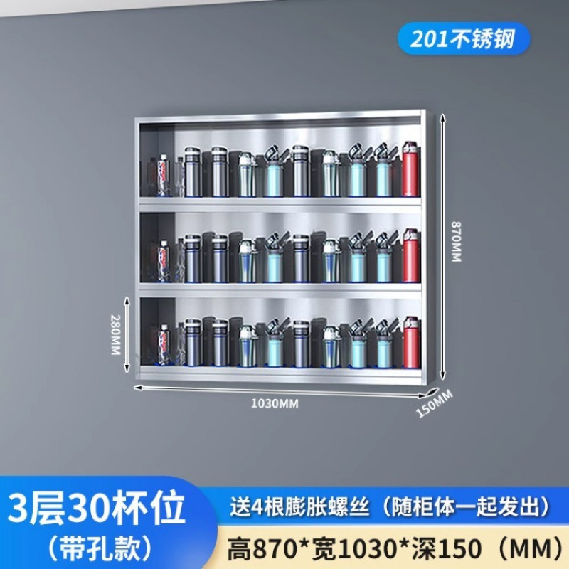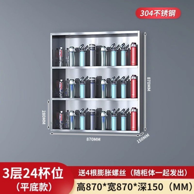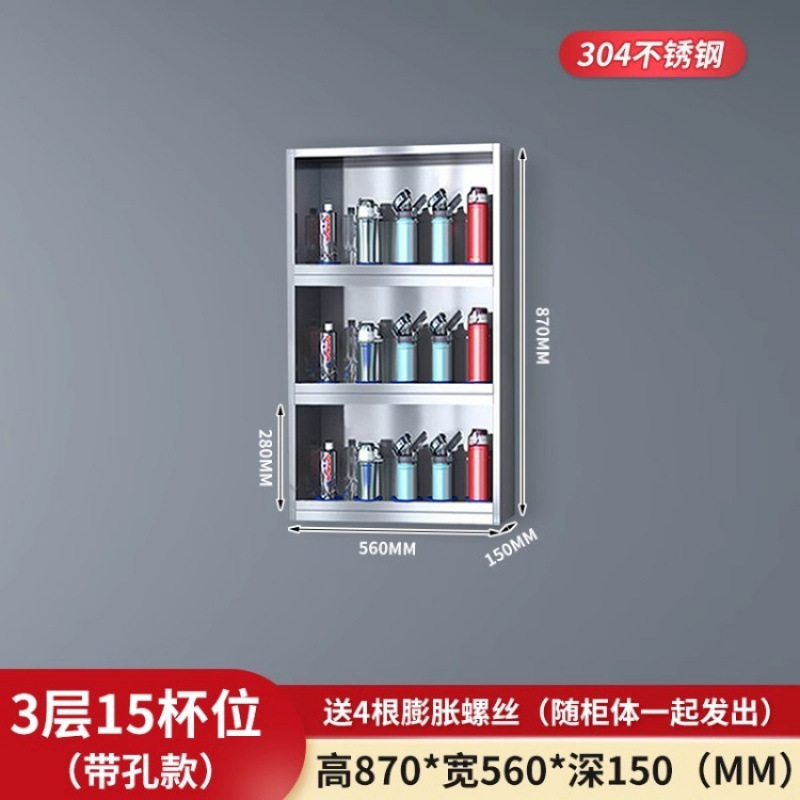 不锈钢壁挂式水杯架工厂员工茶杯存放柜多层置物架杯子收纳架