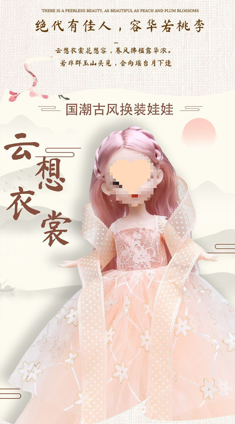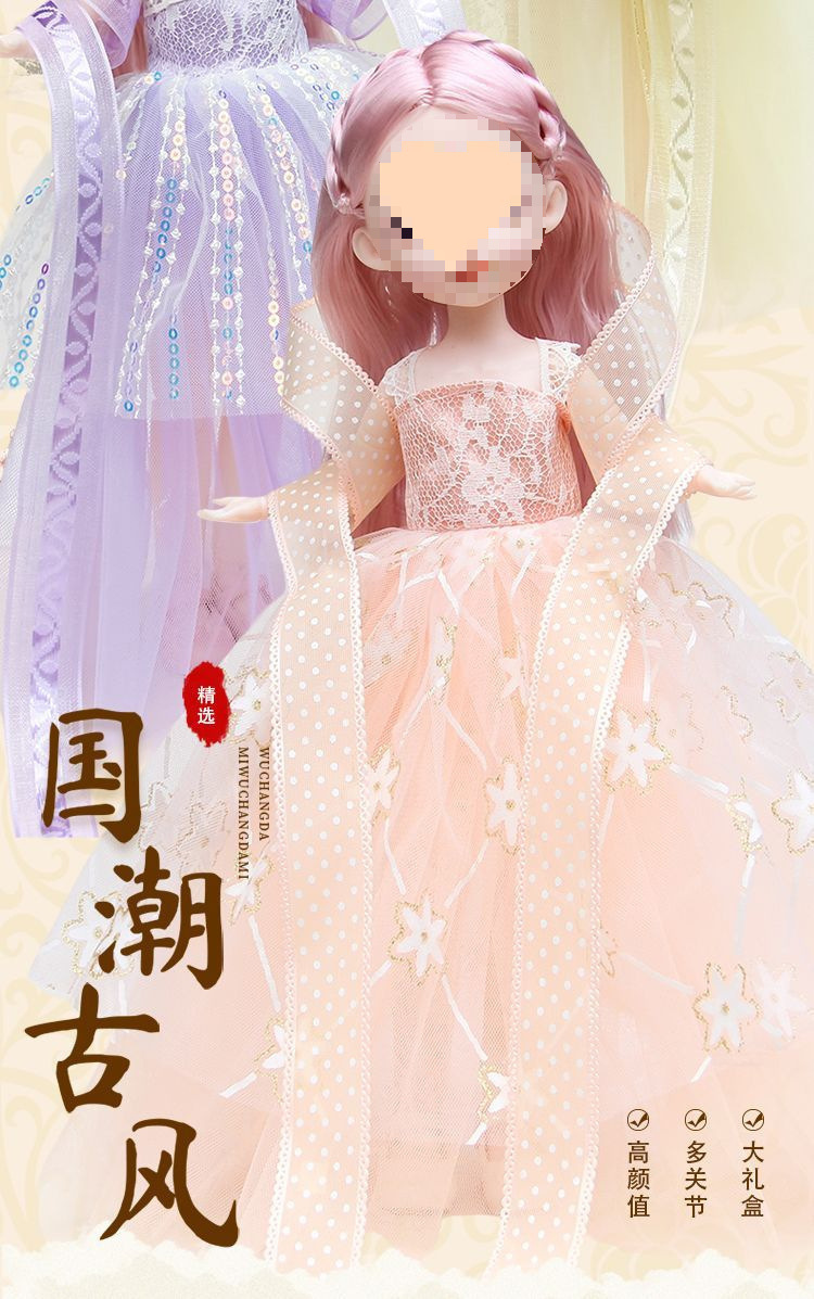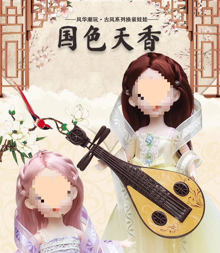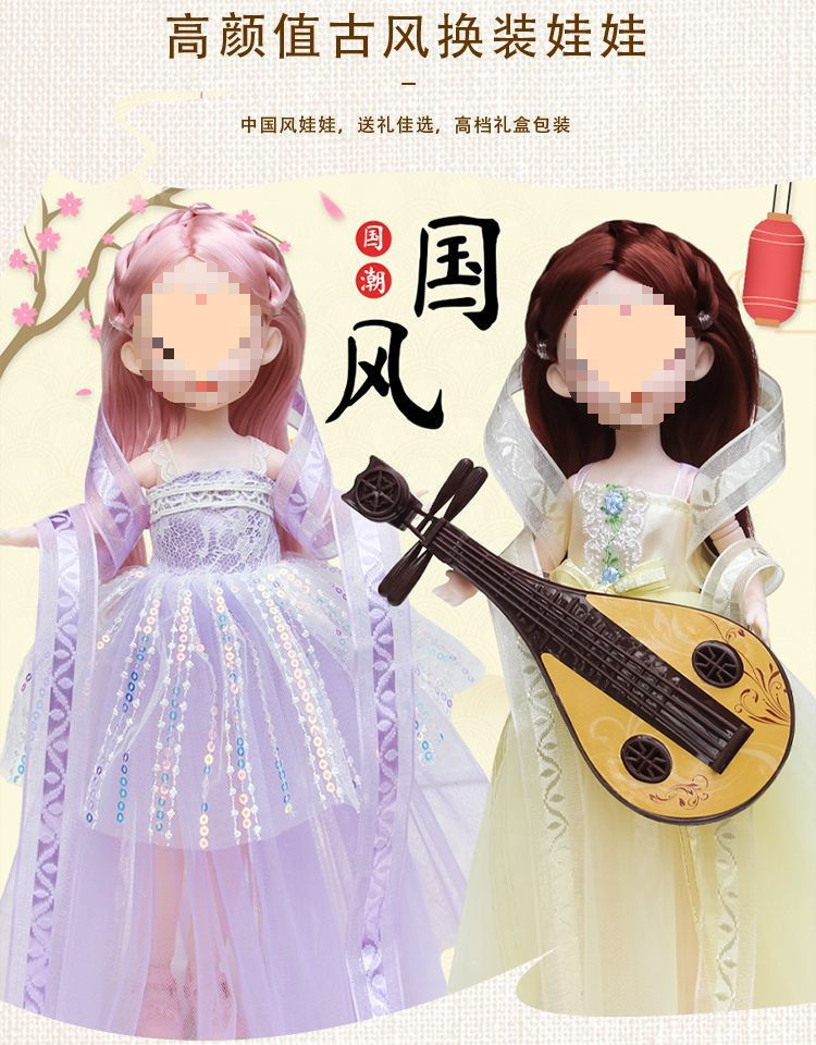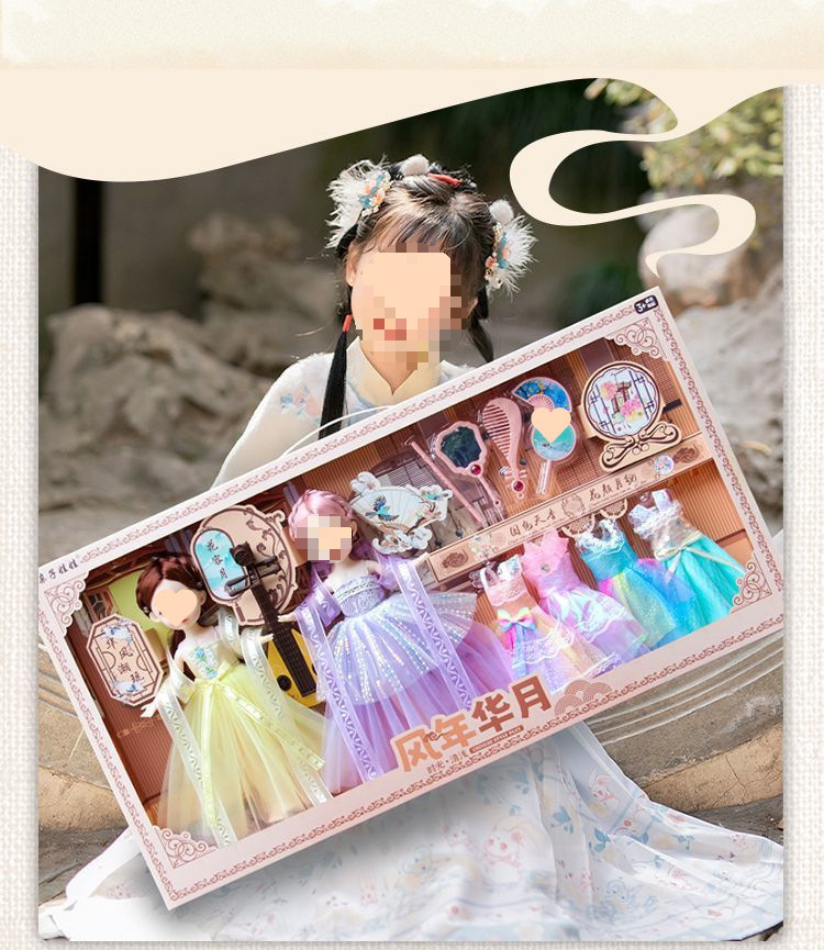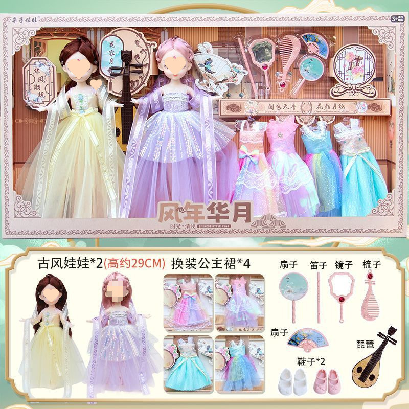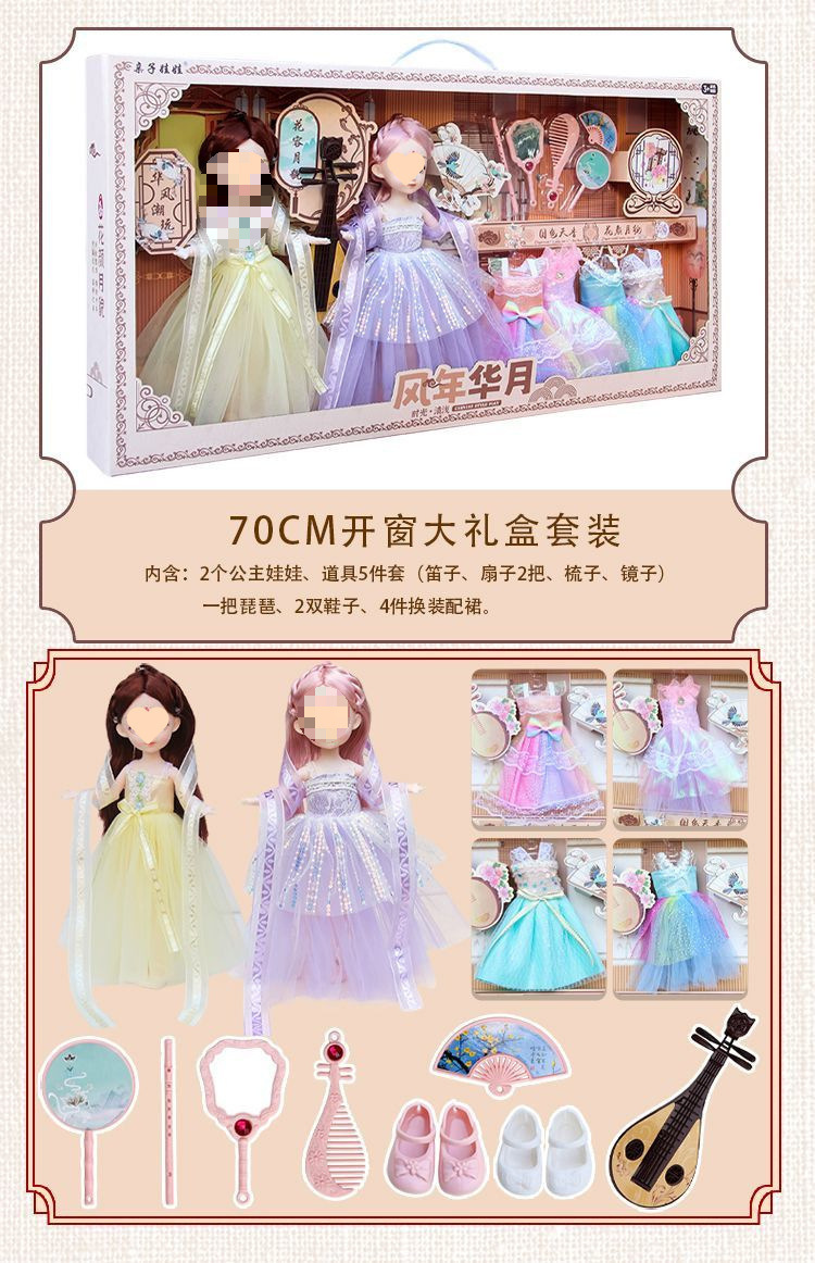 • [특대형 70cm 선물상자] 인형 2개 + 드레스 4개 + 비파