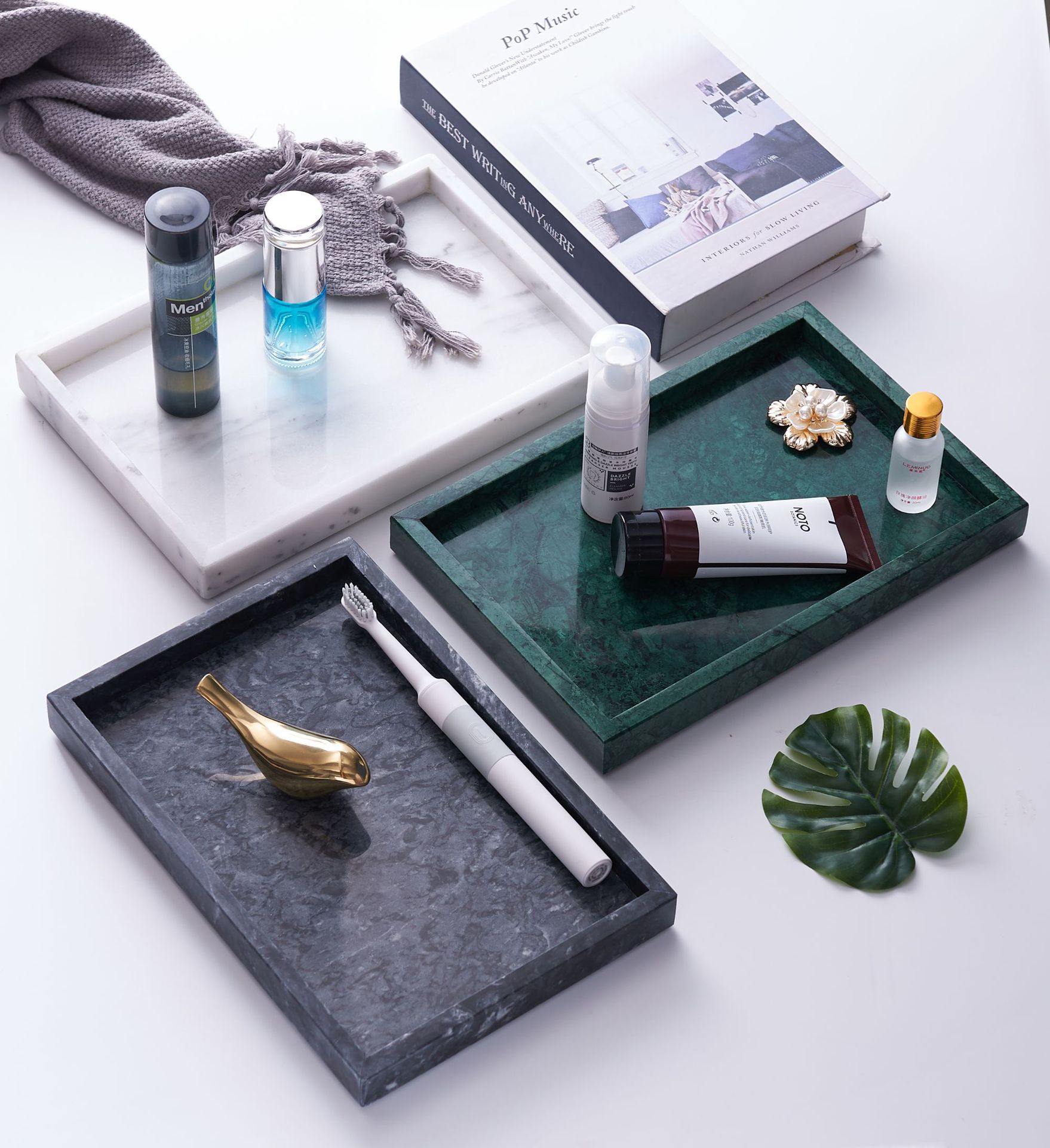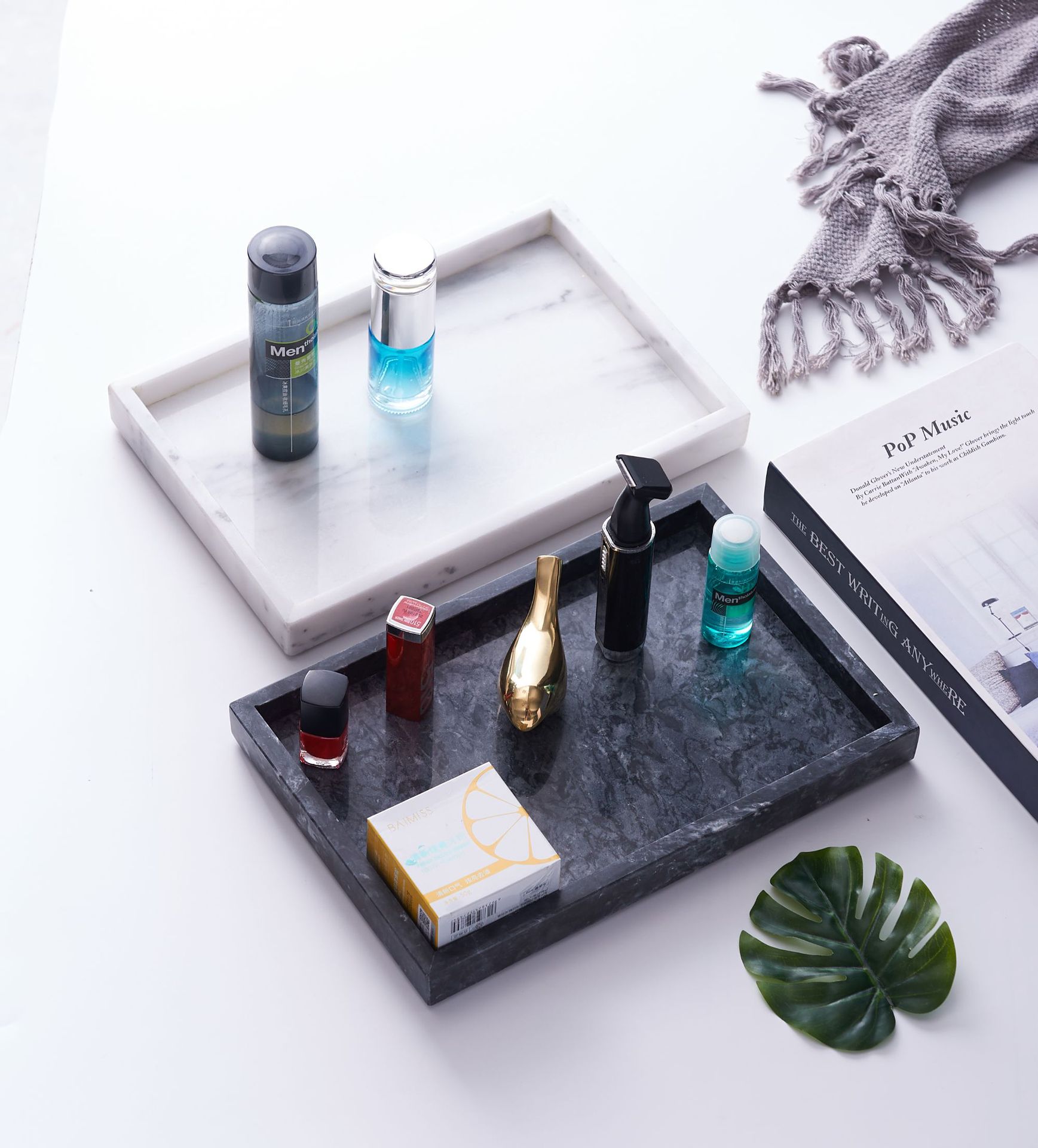 다양한 색상의 대리석 트레이, 욕실 세면대 수납 트레이, 탁상용 화장품 및 액세서리 보관 트레이스토어 가기