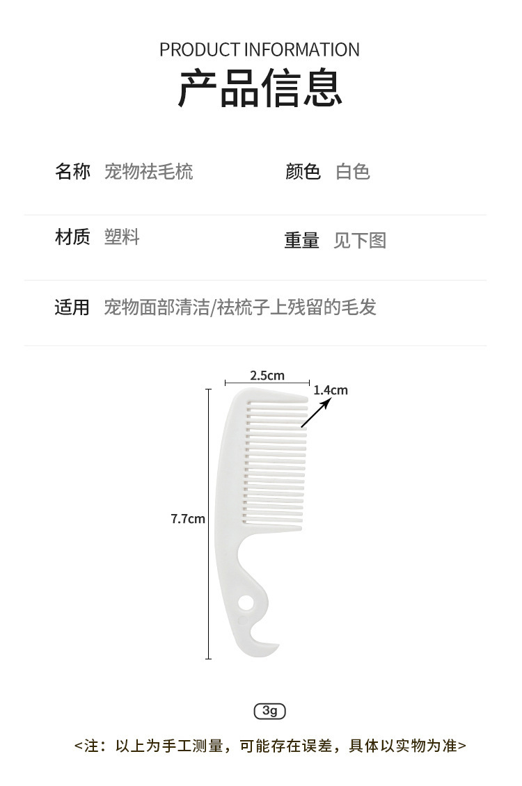 现货宠物祛毛梳狗狗祛浮毛猫咪迷你面梳塑料梳子面部开结梳批发