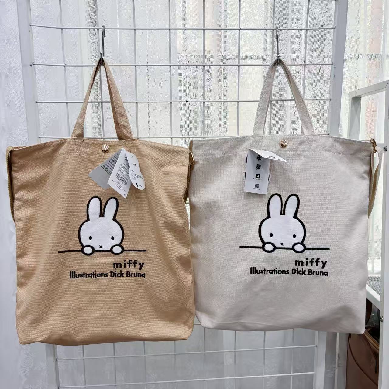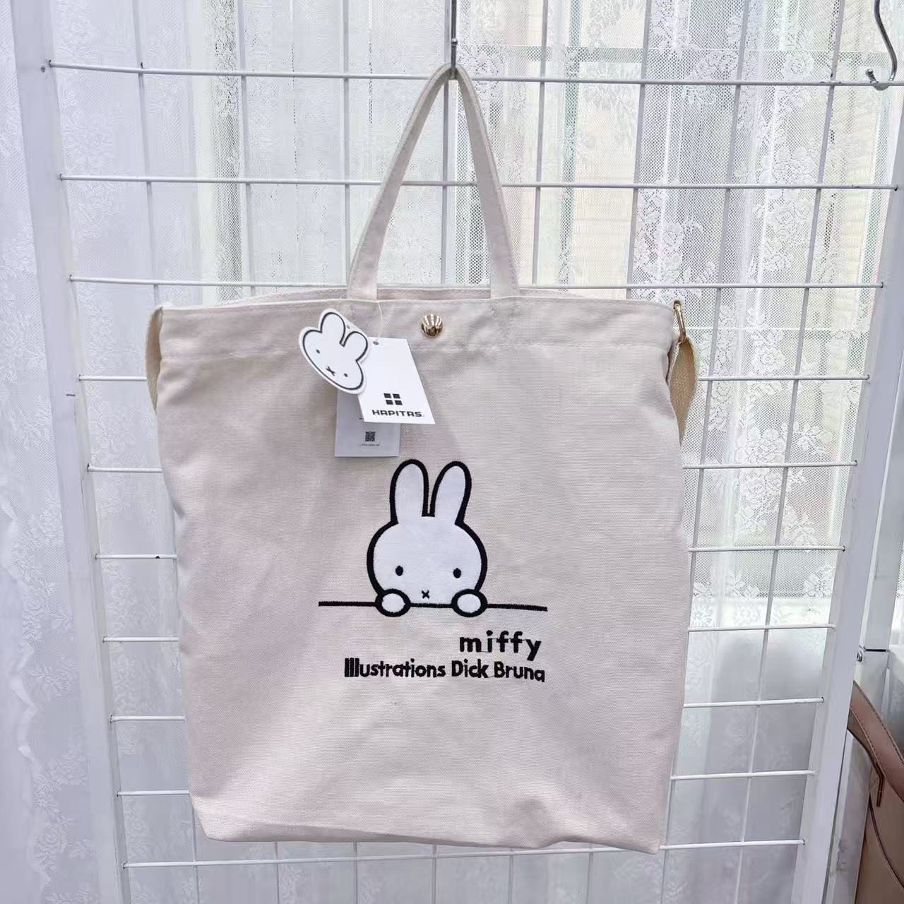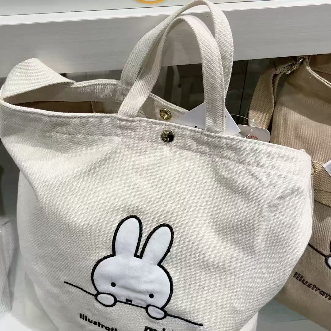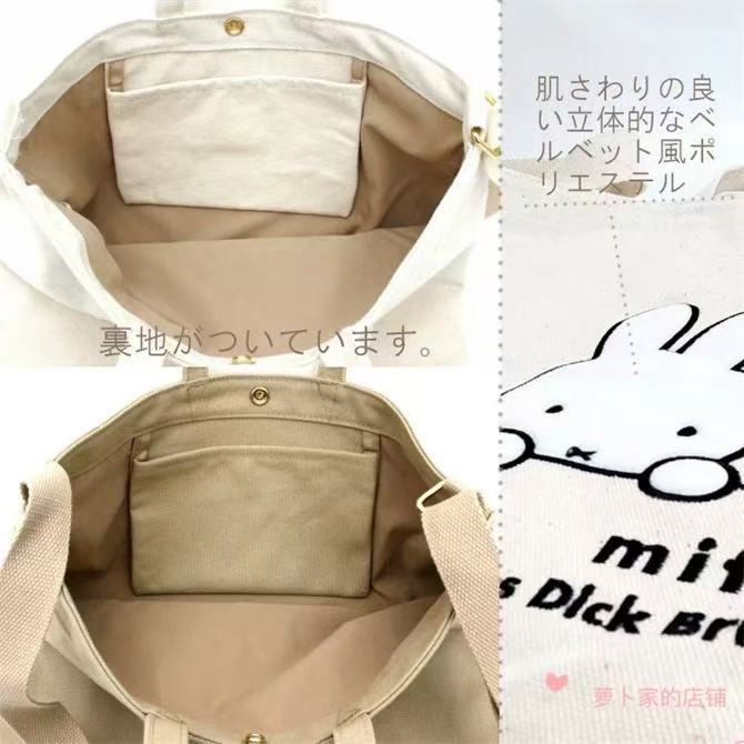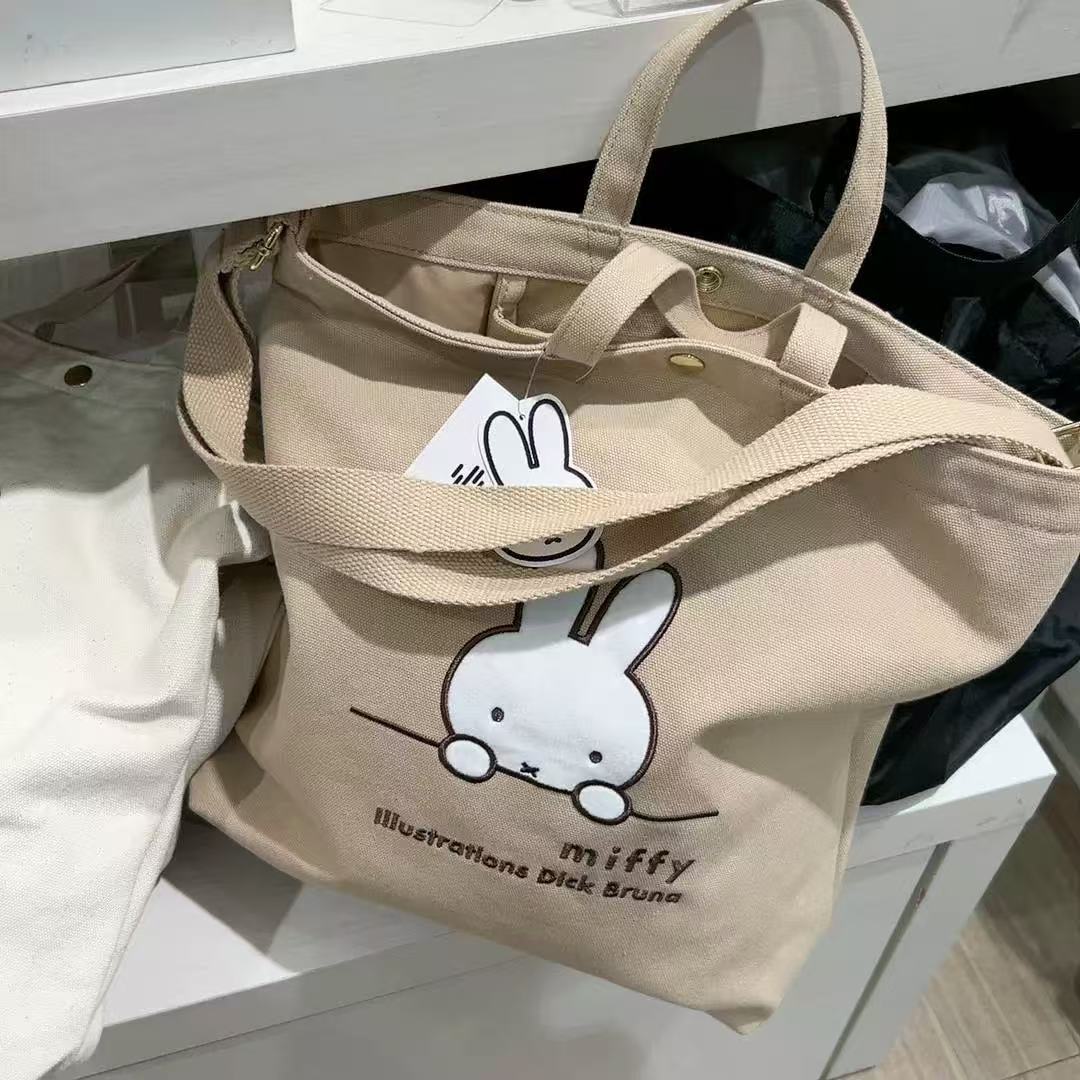 Spot 일본 miffy miffy 만화 자수 어깨 크로스 바디 백 대용량 귀여운 캔버스 휴대용 엄마 가방스토어 가기