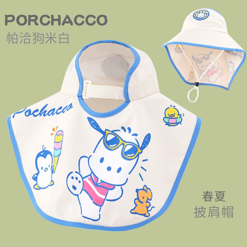 휘파람이 달린 새로운 어린이용 쿠로미 자외선 차단 모자, 자외선 차단 모자, 쓰리리오 모자, 숄, 속건성 차양