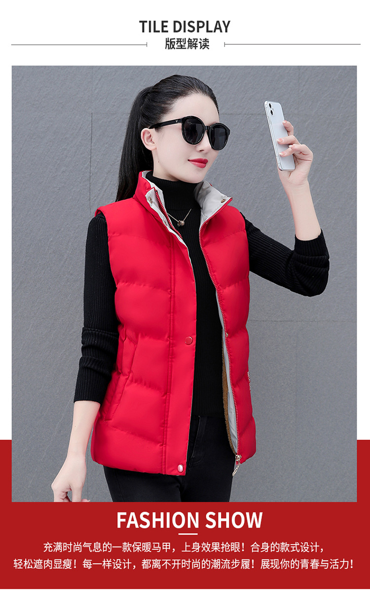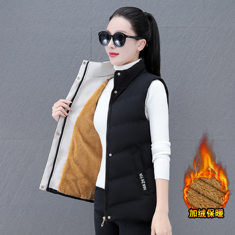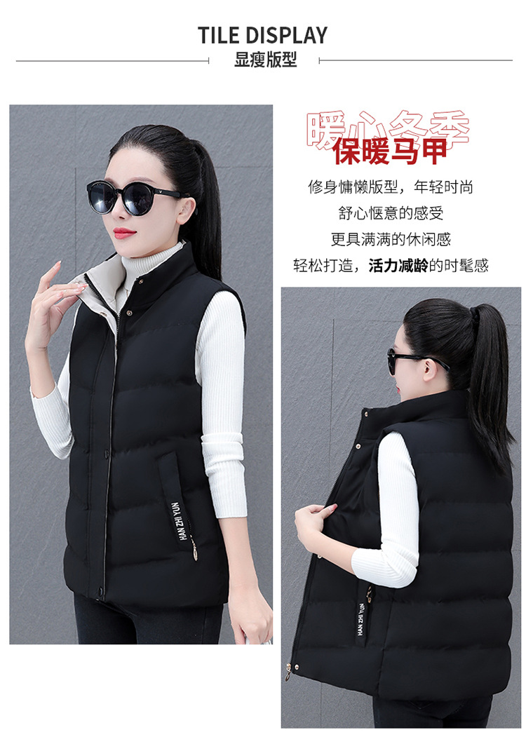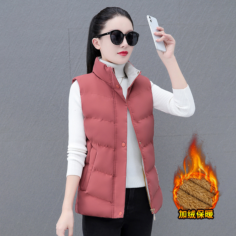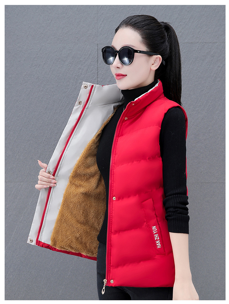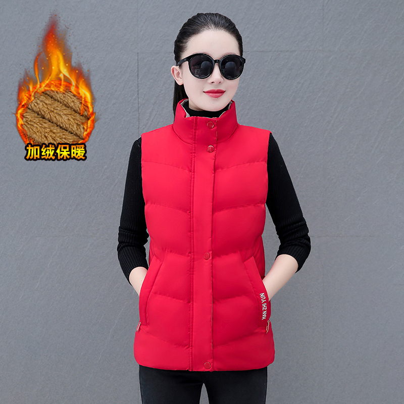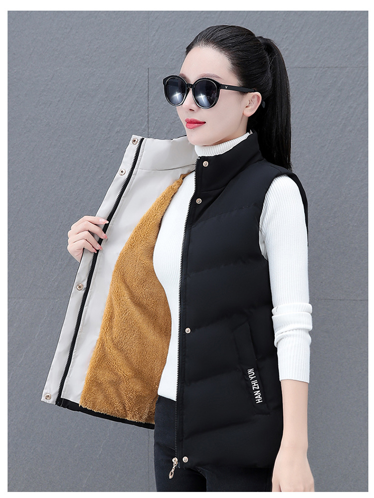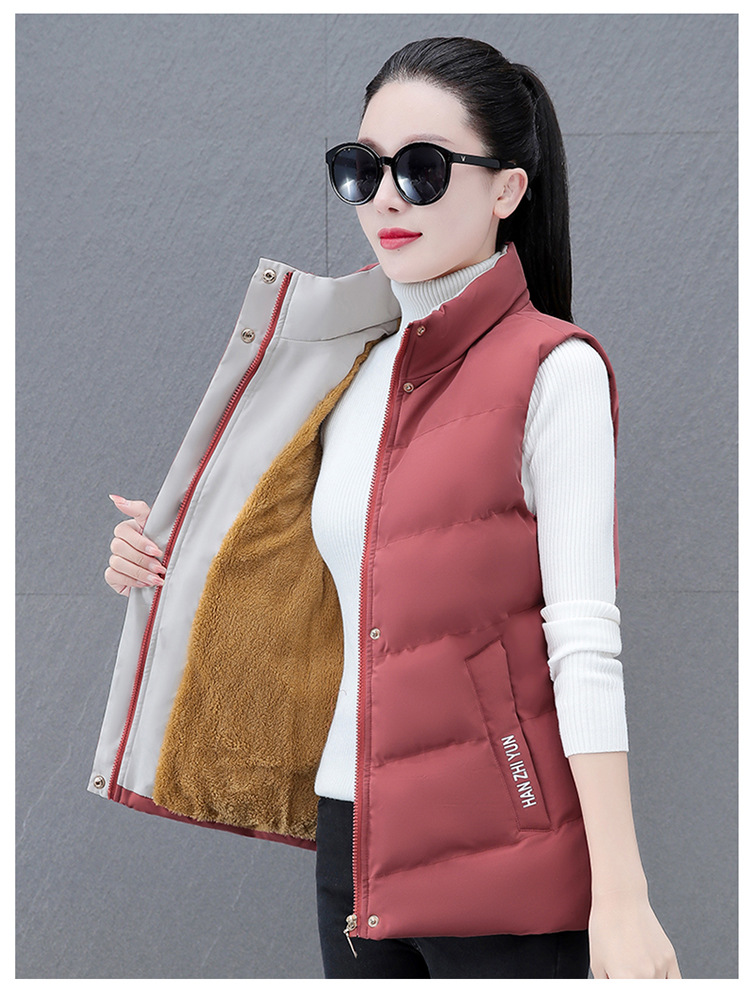 중년 및 노인 어머니의 양털 스탠드 업 칼라 다운 코튼 조끼 여성 가을, 겨울 새로운 스타일 플러스 벨벳 두꺼운 따뜻한 재킷