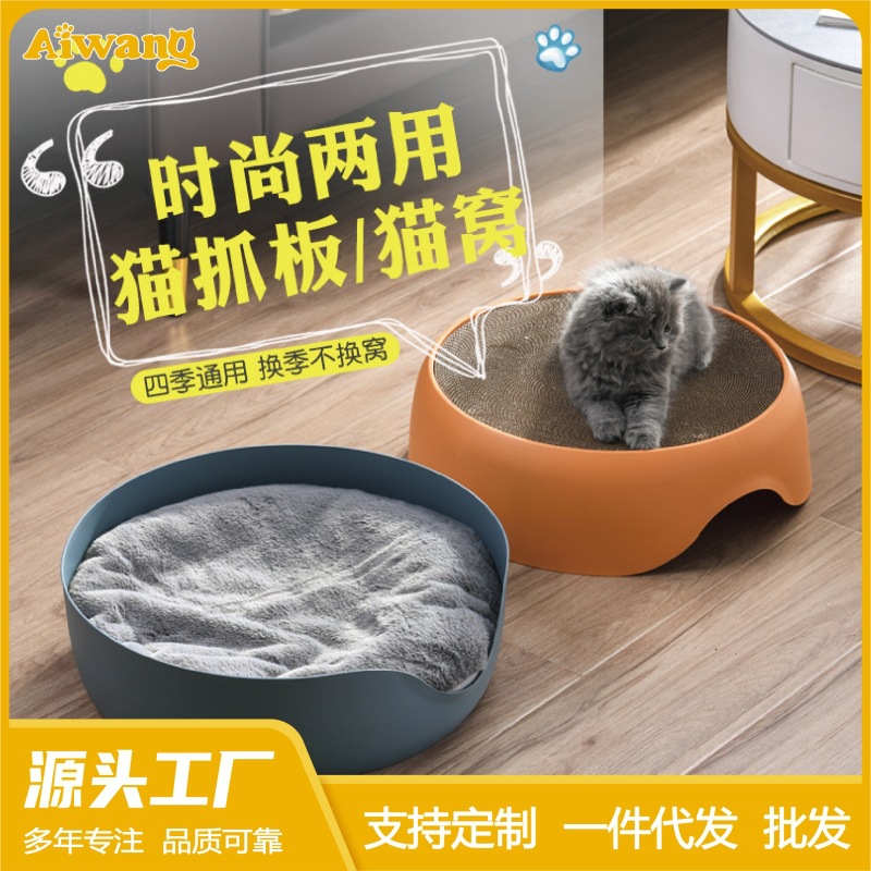 새로운 라운드 고양이 스크래치 보드 고양이 둥지 이중 목적 발톱 연삭 내마모성 골판지 라운드 고양이 스크래치 보드 고양이 용품 도매스토어 가기