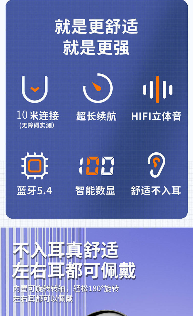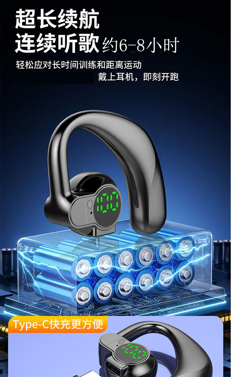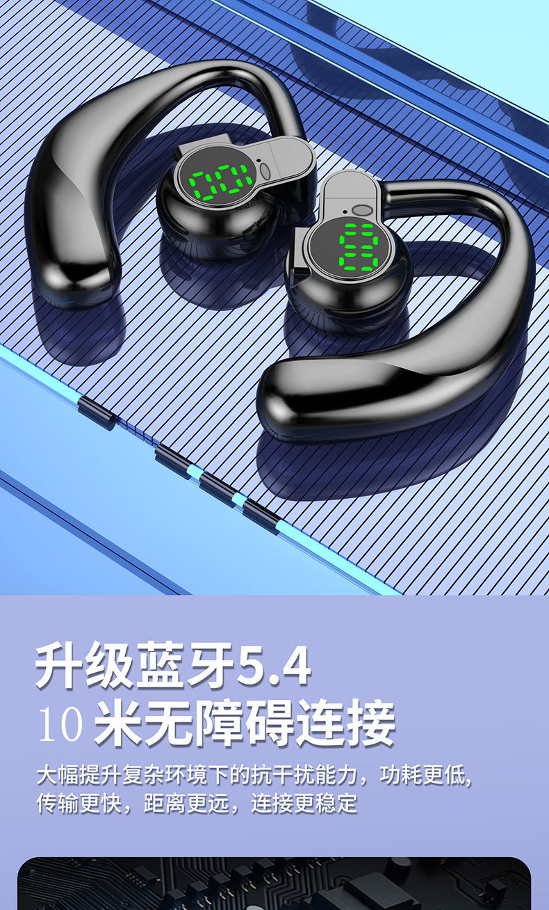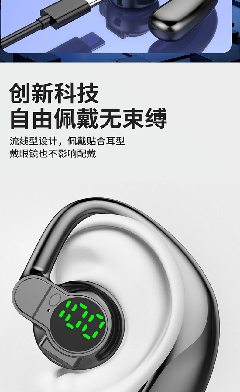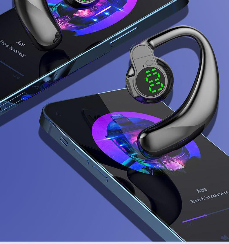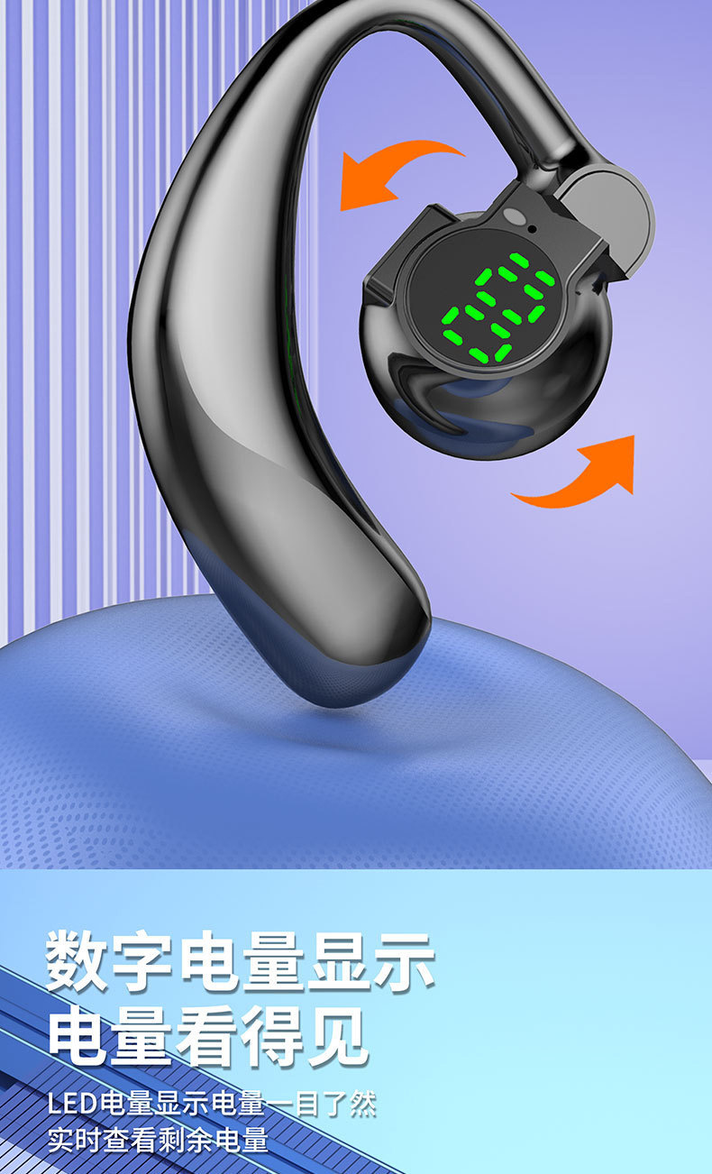 좌우 양쪽 귀에 착용 가능한 싱글 이어 블루투스 헤드셋, 오버이어형, 초장시간 사용 가능, 범용 디지털 디스플레이, 5.4 이어클립형스토어 가기