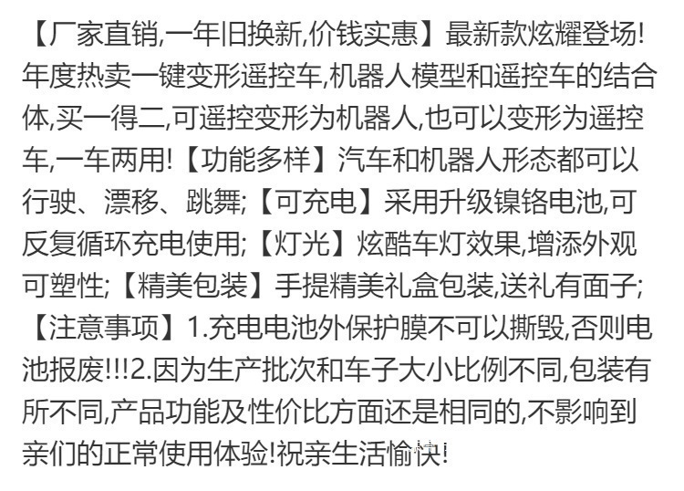 [새로운 업그레이드] 원격 제어 변형 장난감 자동차 킹콩 로봇 어린이 장난감 소년 생일 선물 경주스토어 가기
