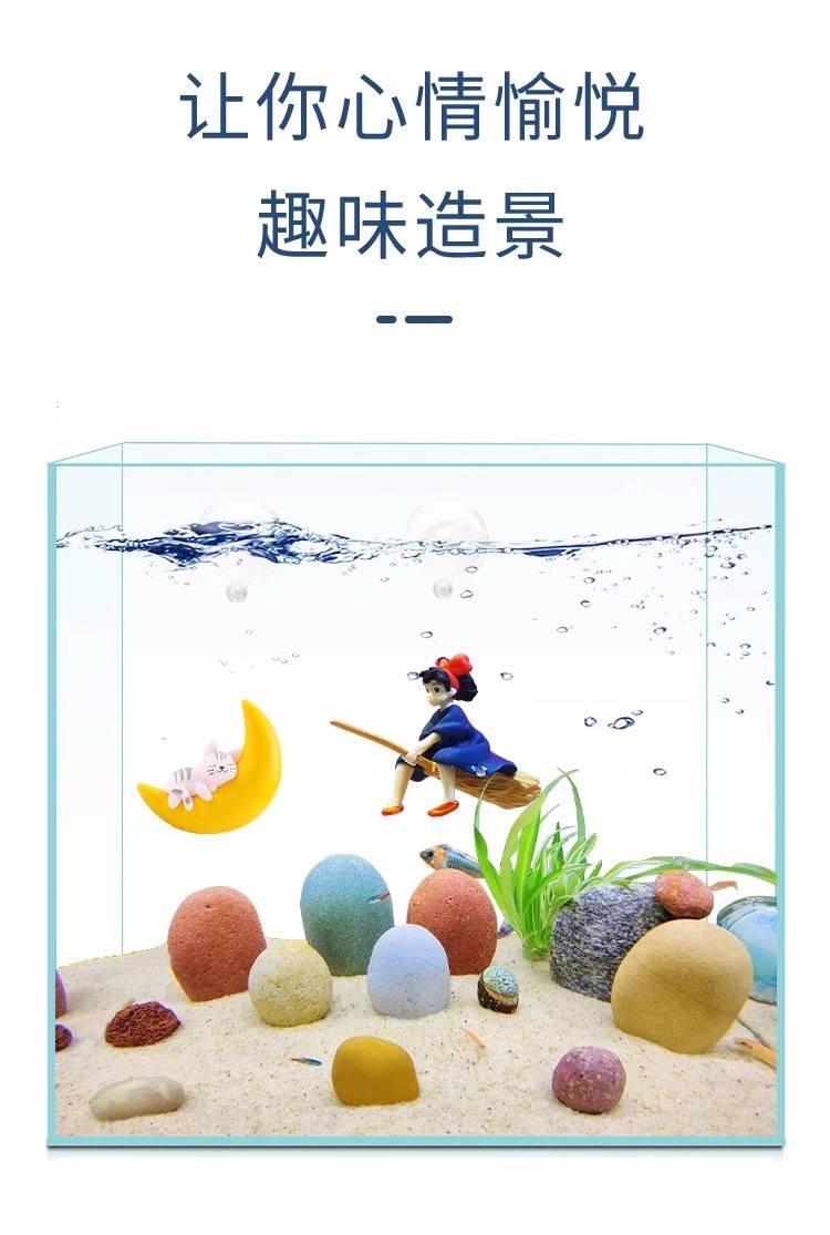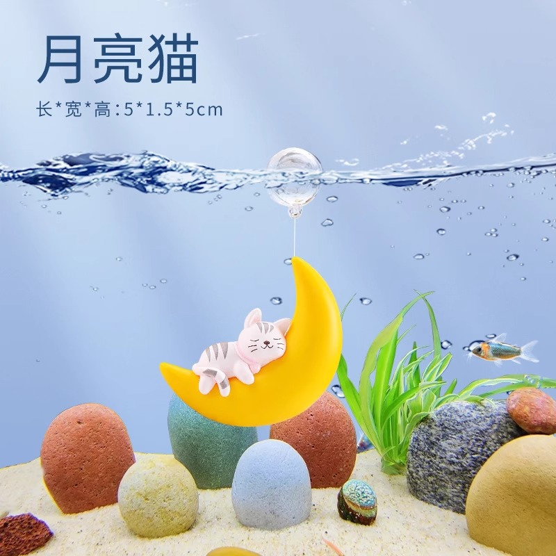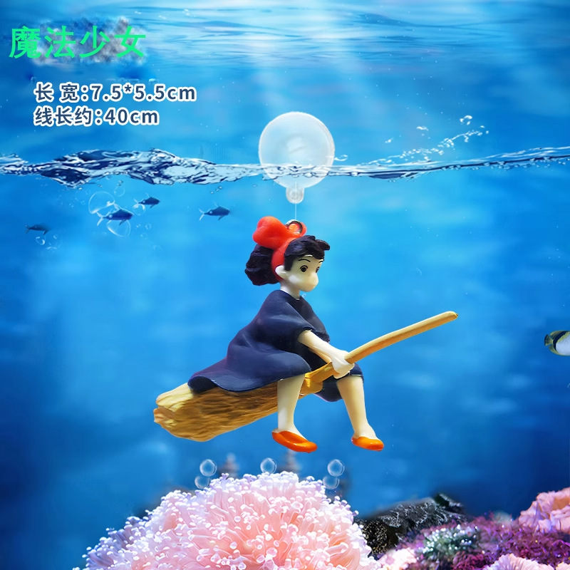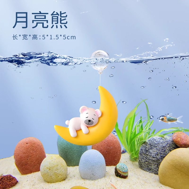 수조 조경 장식, 공중에 떠 있는 달, 곰, 마녀, 인어 수족관, 떠 있는 만화 다이버 장식품스토어 가기