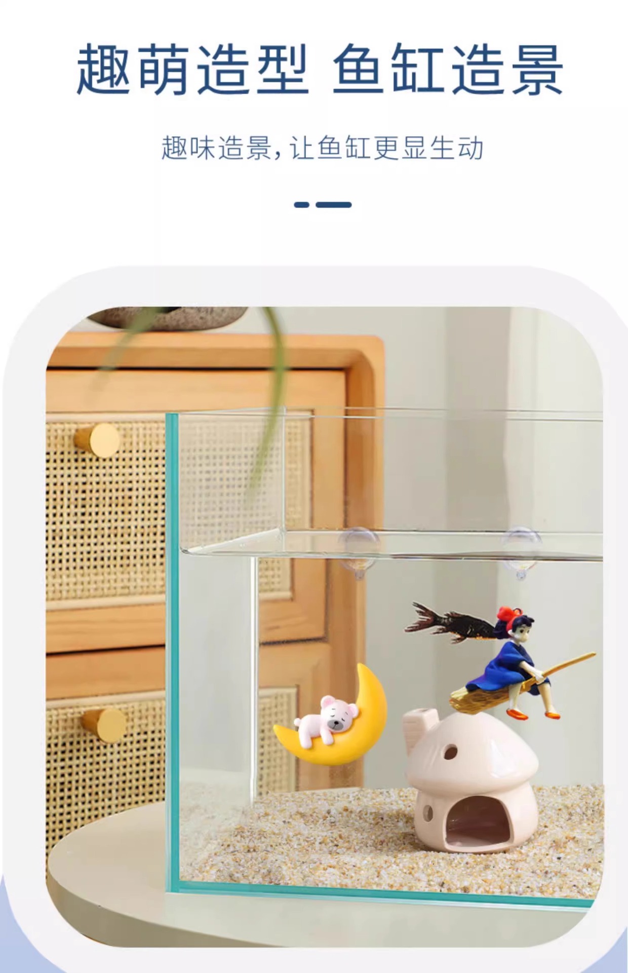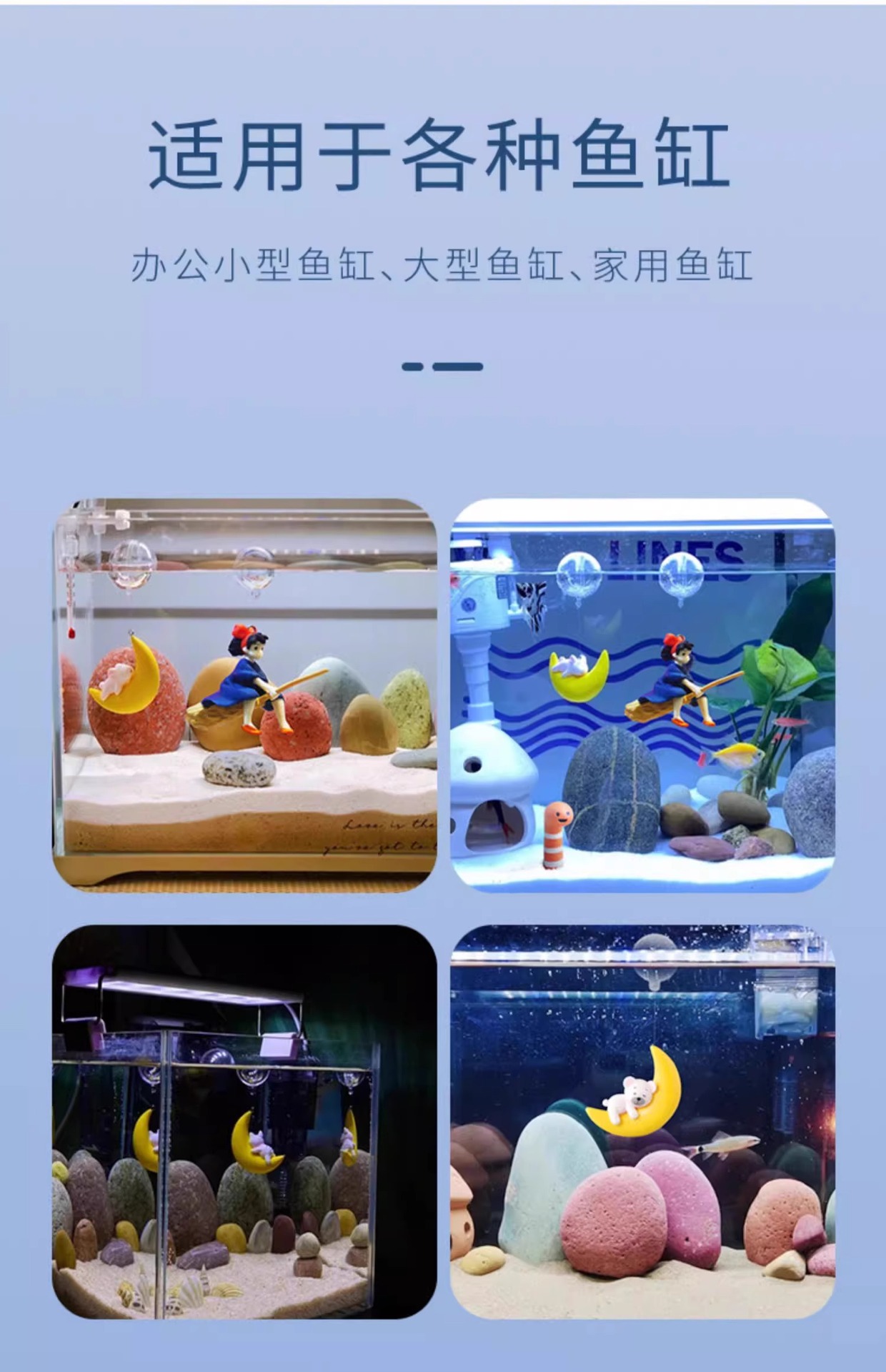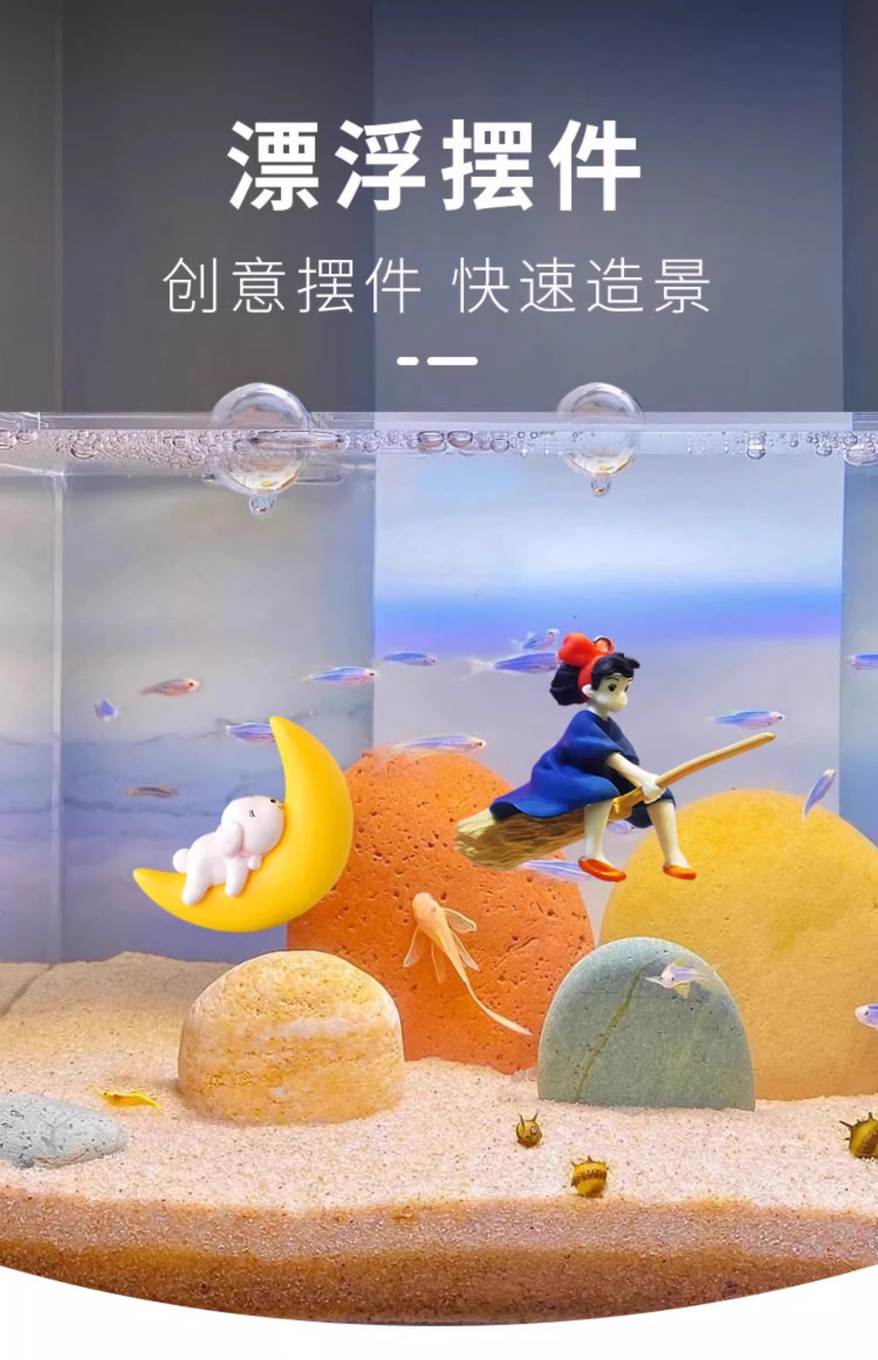 수조 조경 장식, 공중에 떠 있는 달, 곰, 마녀, 인어 수족관, 떠 있는 만화 다이버 장식품스토어 가기