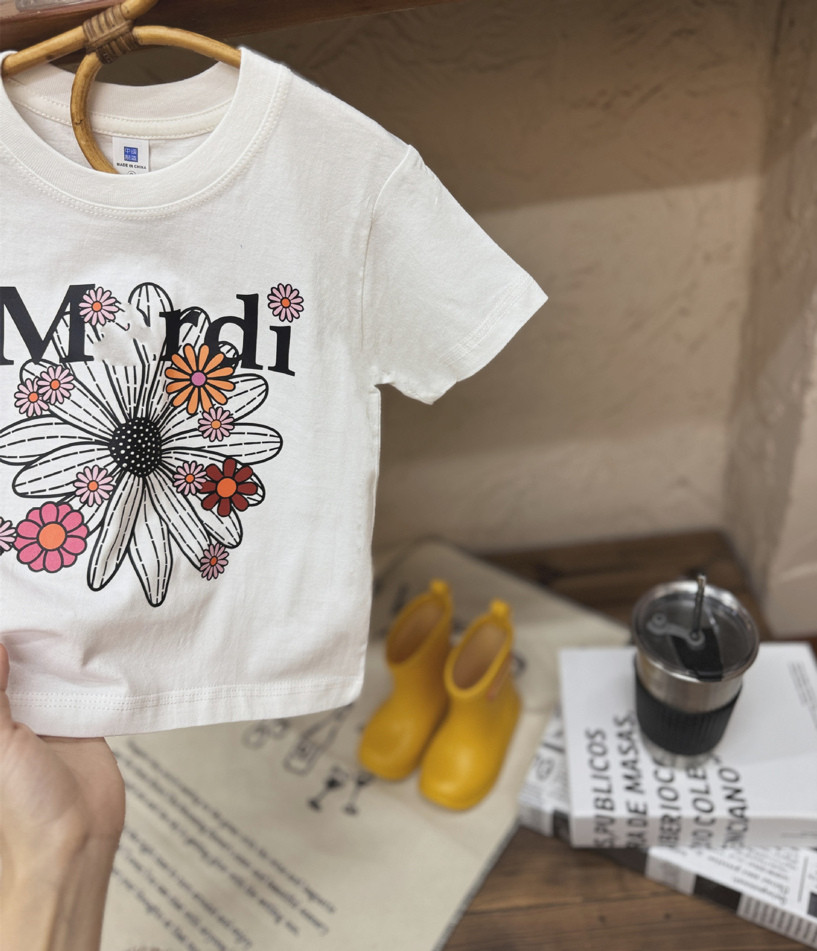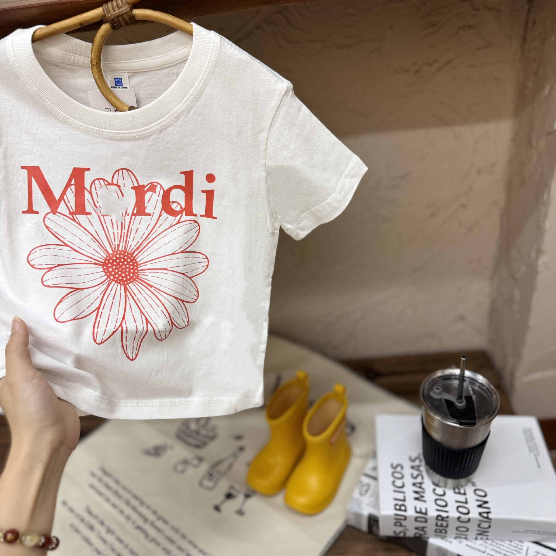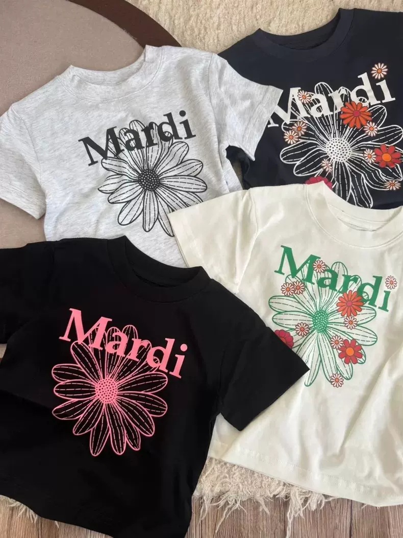 새로운 인기 어린이 반팔 티셔츠 한국 스타일 유행 여름 소년과 소녀 데이지 짧은 티셔츠 아기 옷 여름스토어 가기