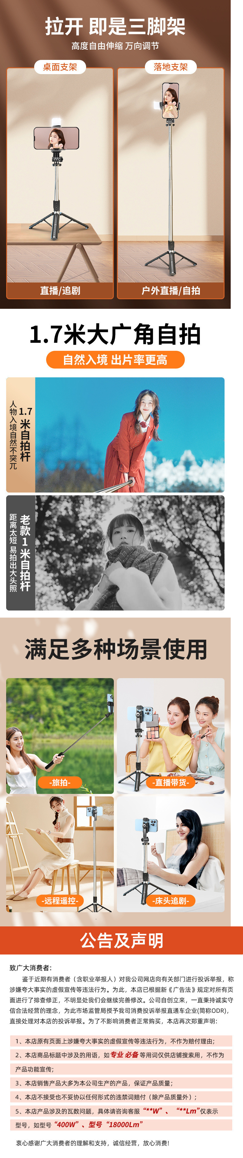 • [확장 1.7m ] 셀카봉 삼각대 + 뷰티램프
