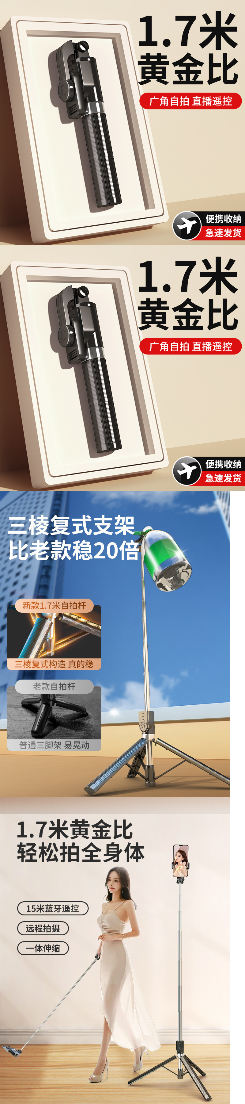 장대 샷 전신 안티 쉐이크 휴대 전화 셀카 스틱 삼각대 셀카 유물 360 도 회전 범용 다기능스토어 가기