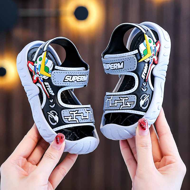 어린이 샌들 여름 소년 2025 새로운 소년 부드러운 단독 미끄럼 방지 아기 비치 샌들 소녀 큰 어린이 신발