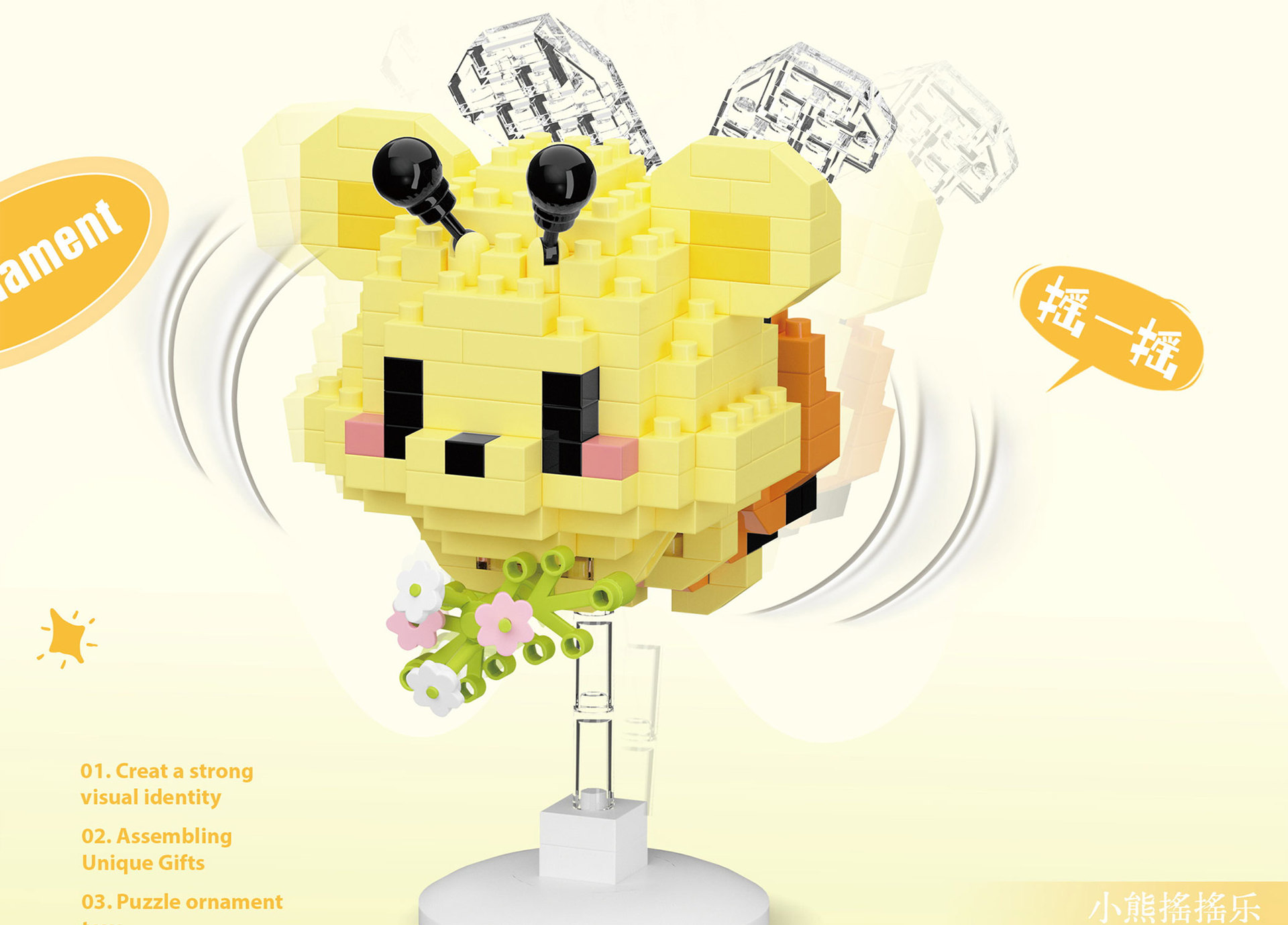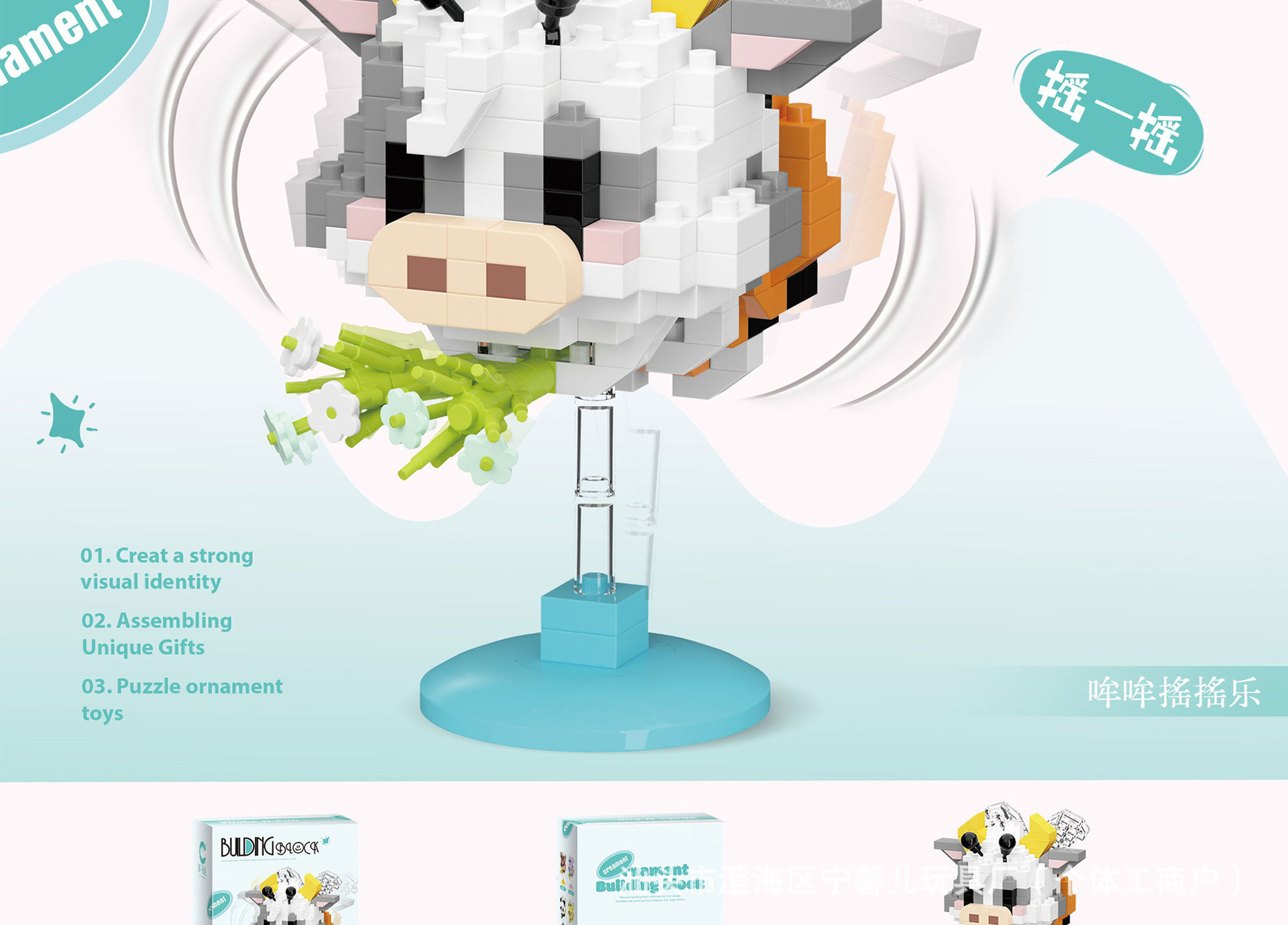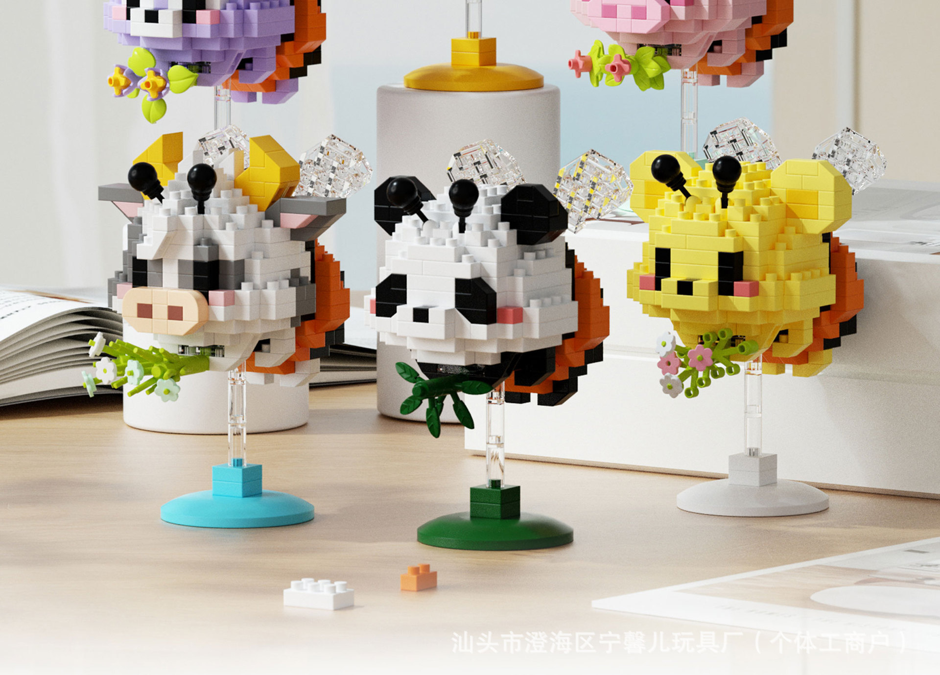 차오 르 추앙 마이크로 입자 만화 인형 빌딩 블록 울리는 음악 어린이 교육 조립 데스크탑 장식품 장난감스토어 가기