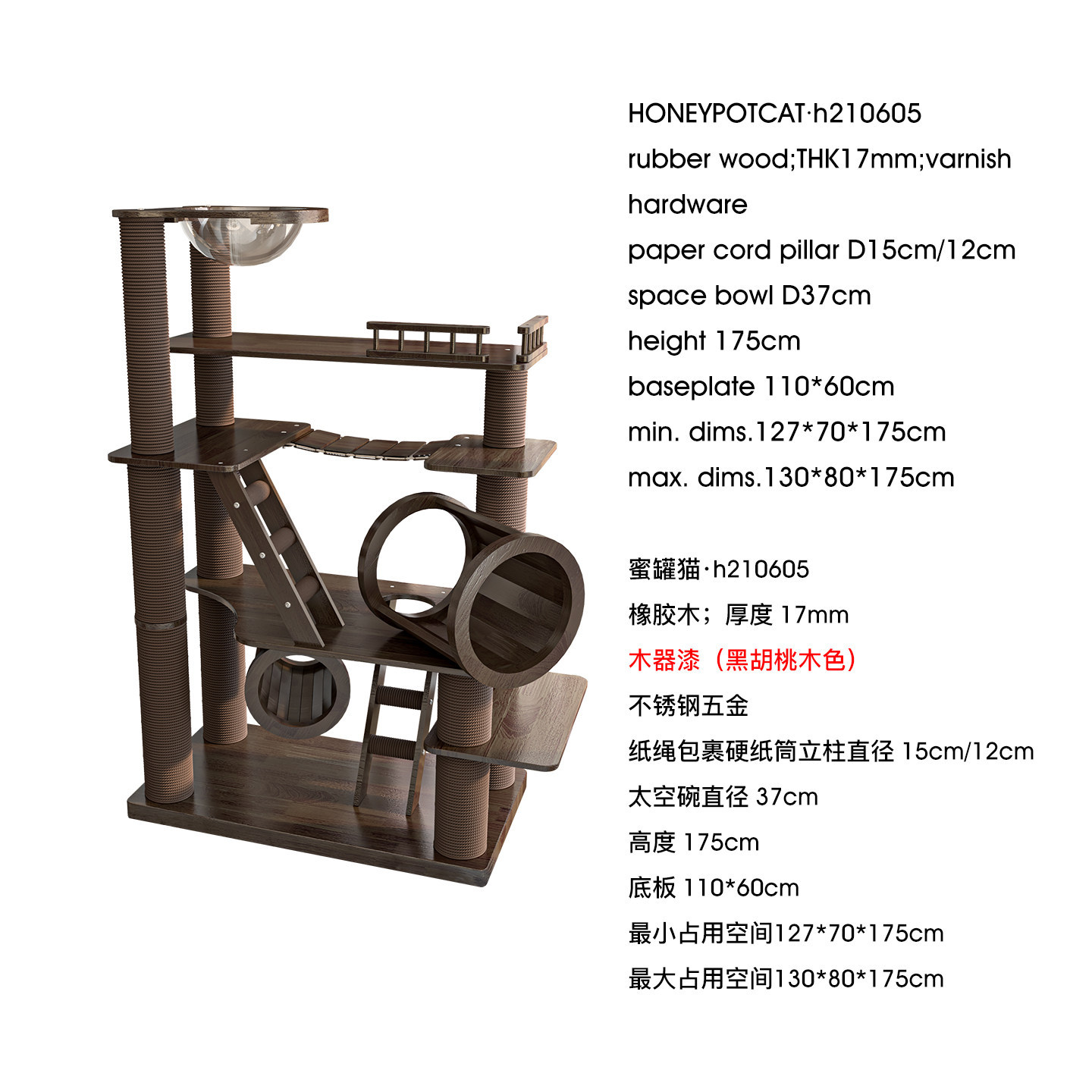 Honeypot 고양이 큰 단단한 나무 고양이 등반 랙 고양이 둥지 고양이 나무 통합 고양이 성 옻칠 검은 호두 색상 h210605스토어 가기