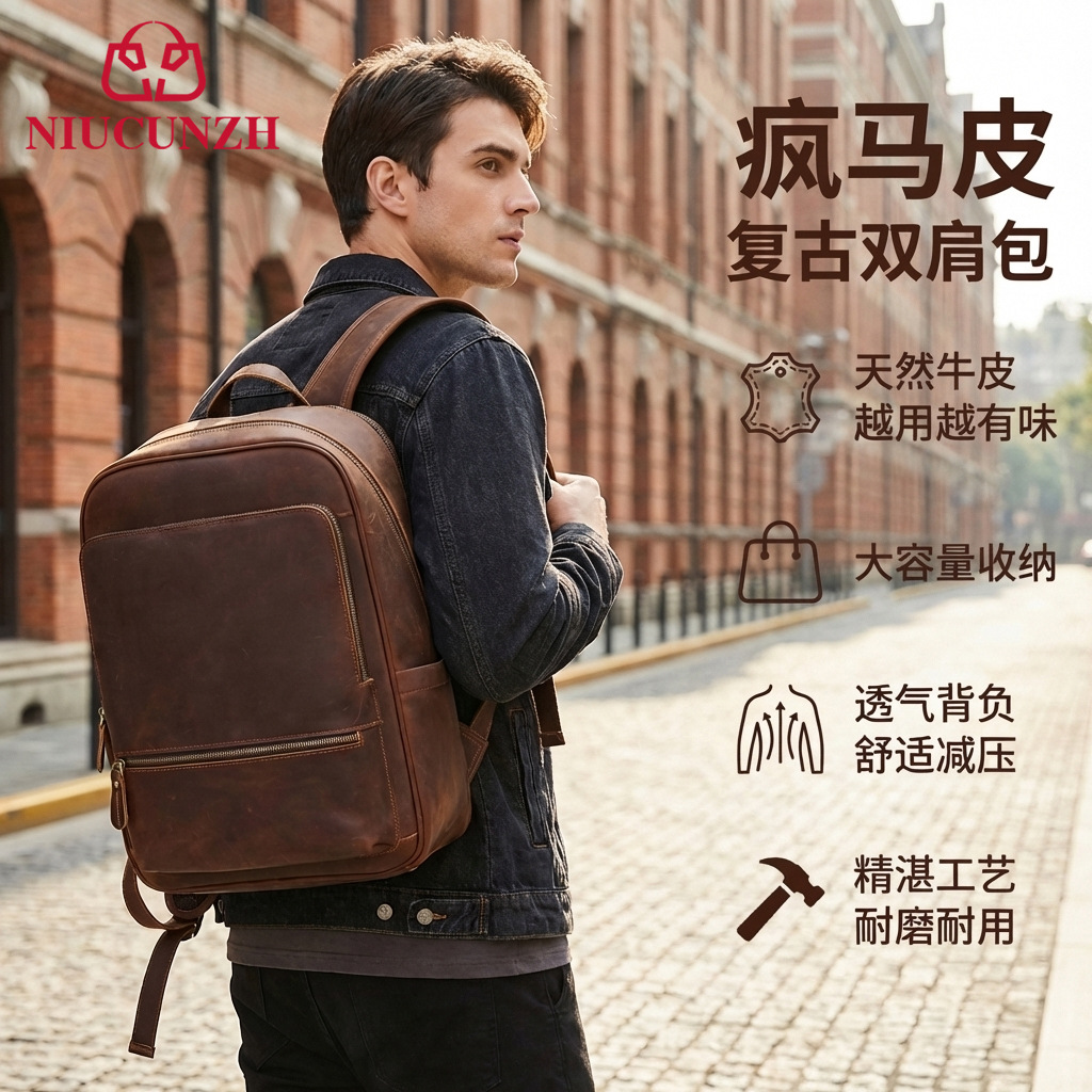 1층 소가죽 지퍼 트롤리 케이스, 비즈니스 여행용 캐리어, 남성용 고급형 가벼운 고급 캐리어, TSA 코드 잠금 장치