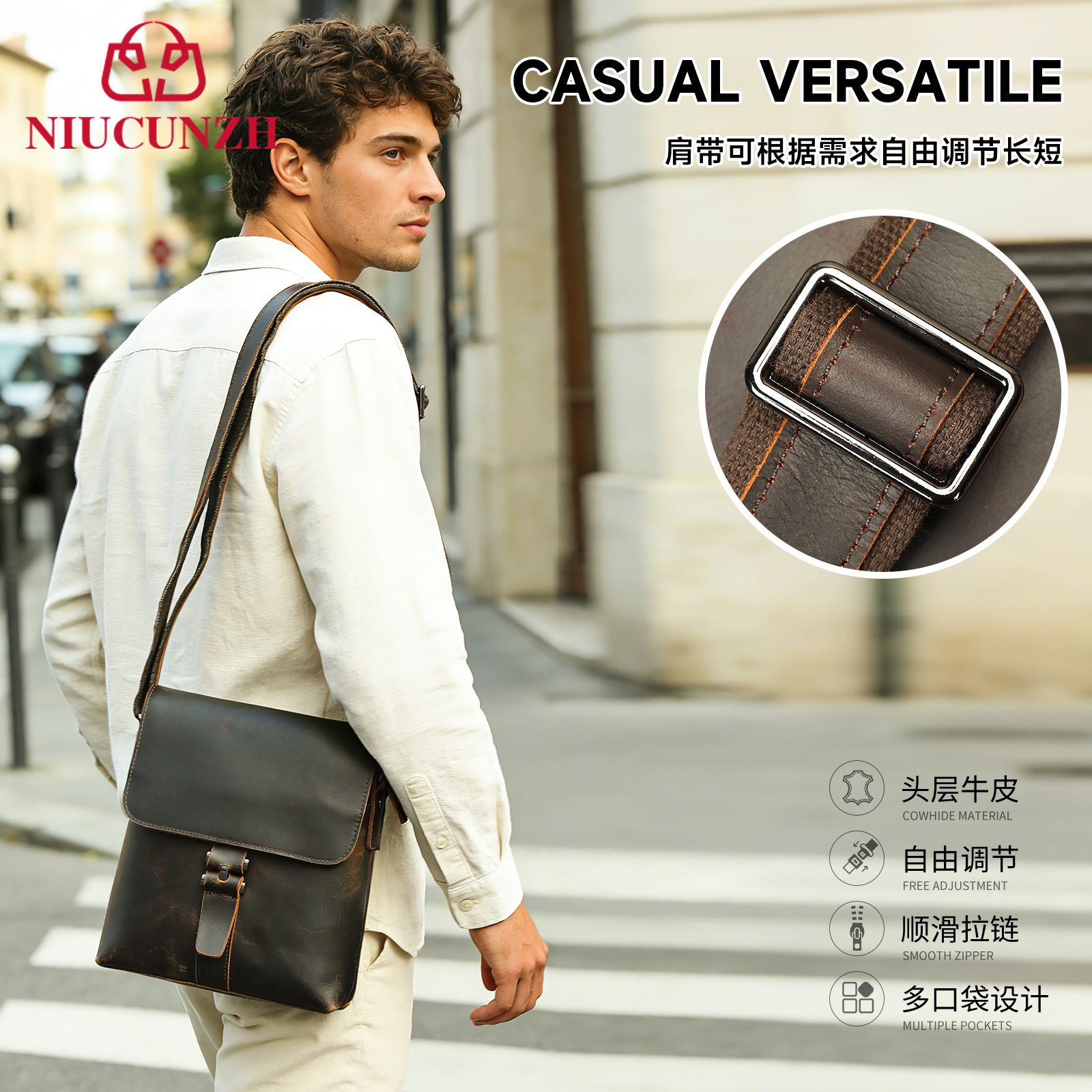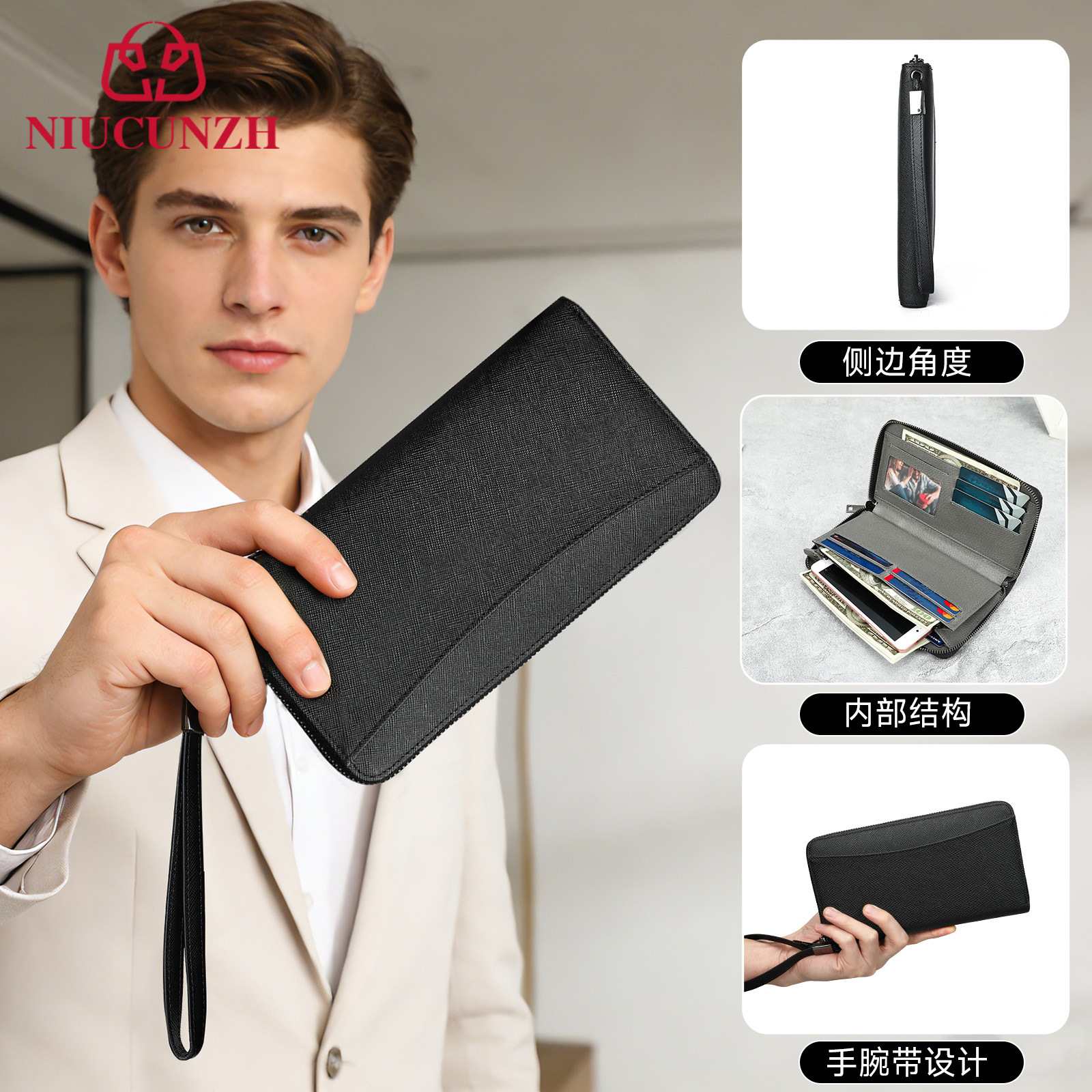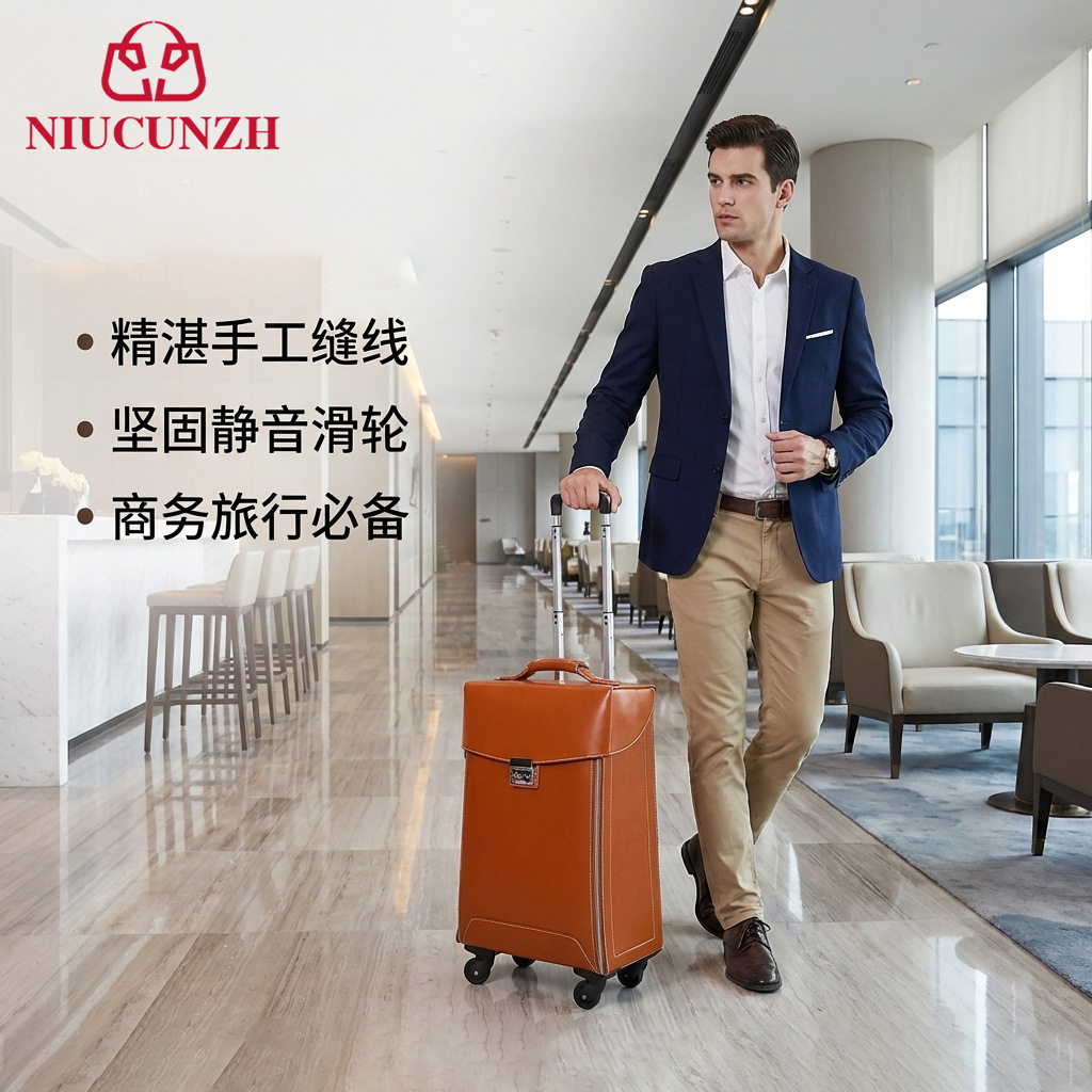 1층 소가죽 지퍼 트롤리 케이스, 비즈니스 여행용 캐리어, 남성용 고급형 가벼운 고급 캐리어, TSA 코드 잠금 장치스토어 가기