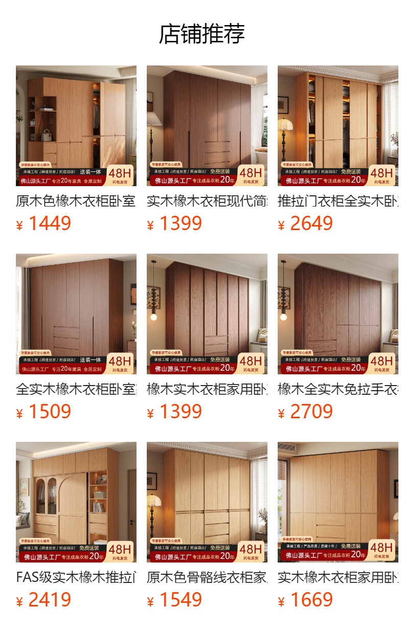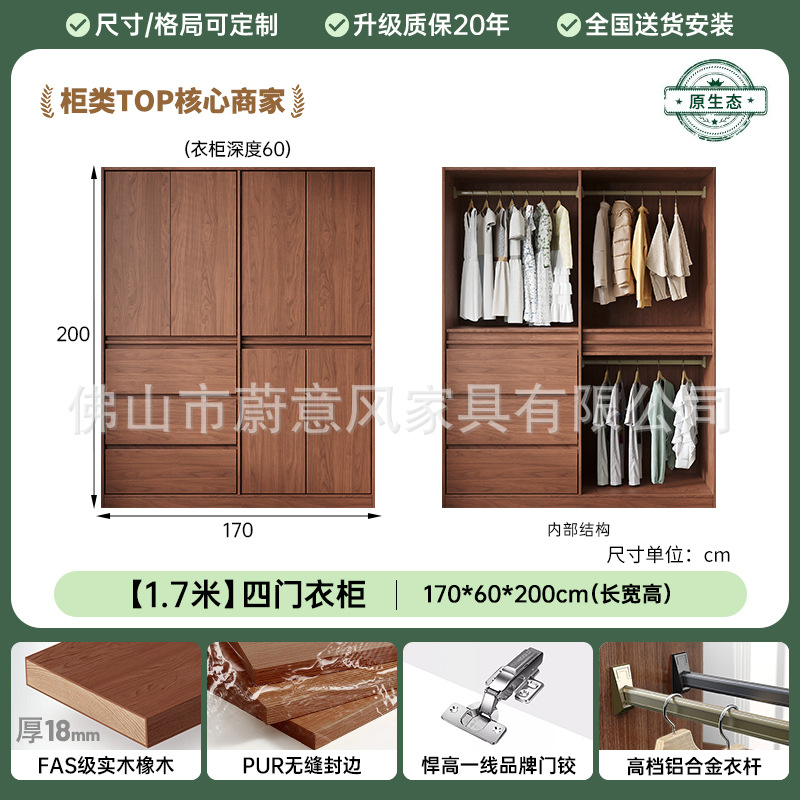 골격선 원목 옷장 ENF 등급 오크 호두 색상 인기 깊은 홈 침실 손잡이 없는 수납 옷장스토어 가기