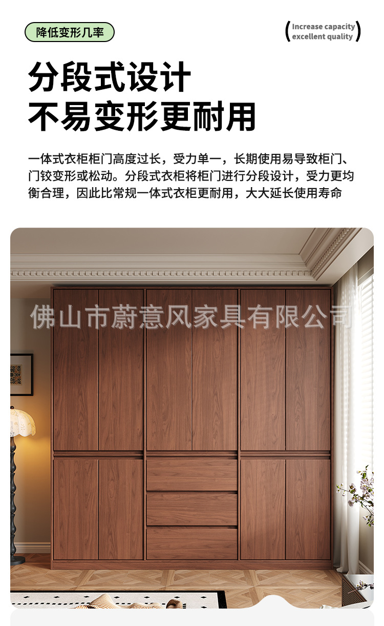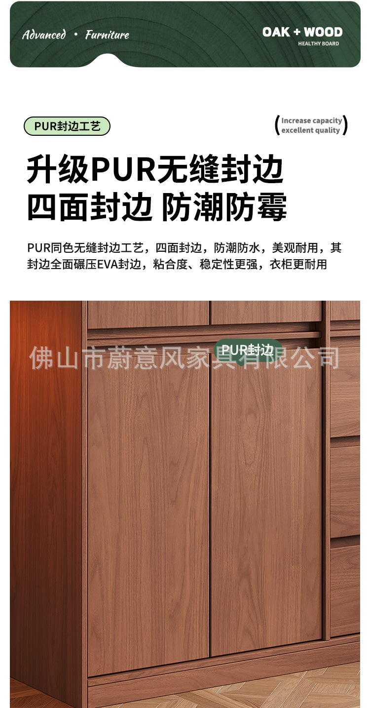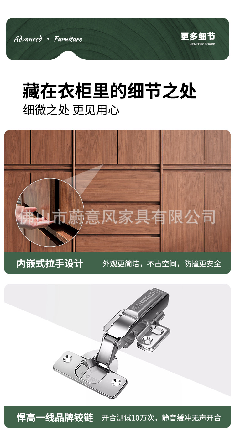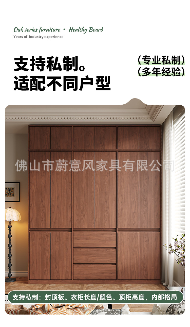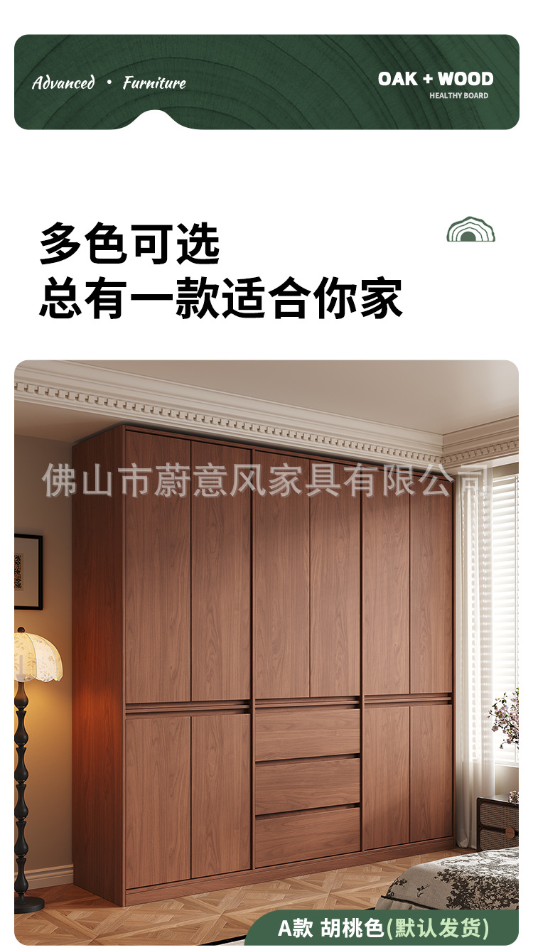 골격선 원목 옷장 ENF 등급 오크 호두 색상 인기 깊은 홈 침실 손잡이 없는 수납 옷장