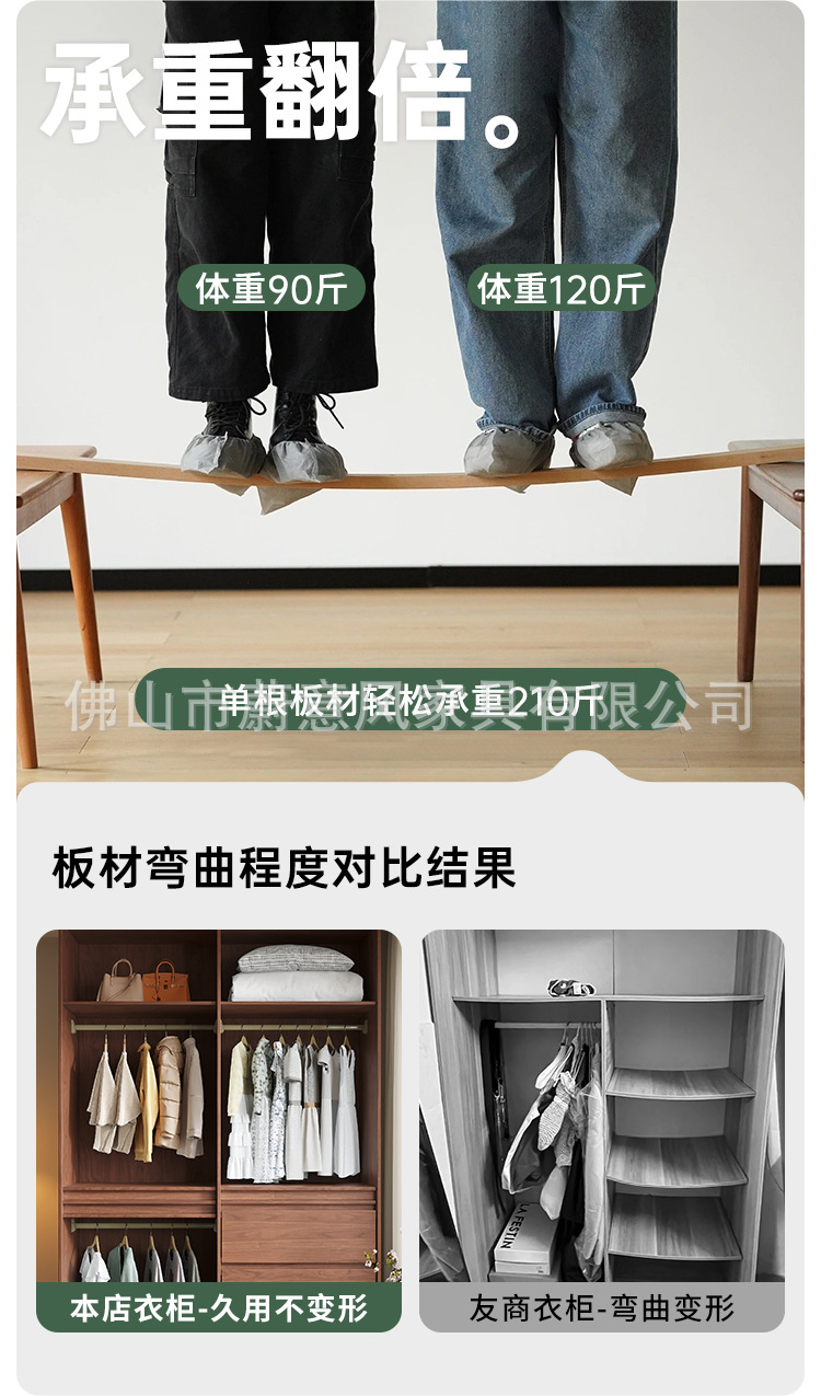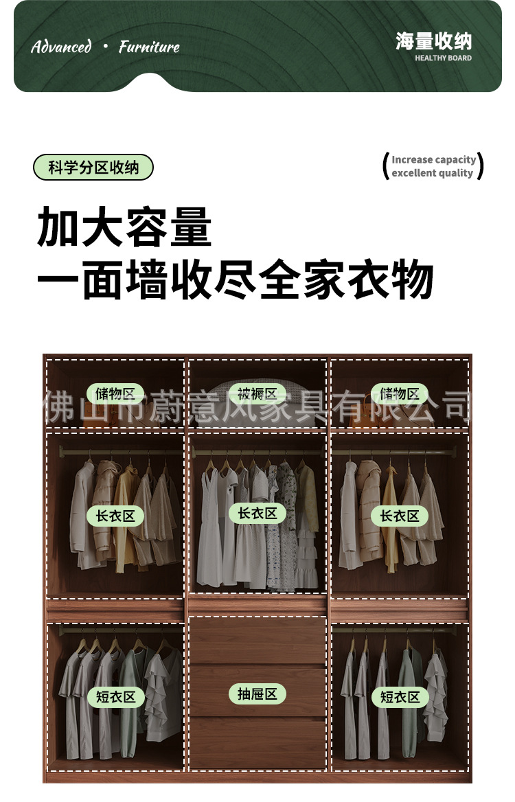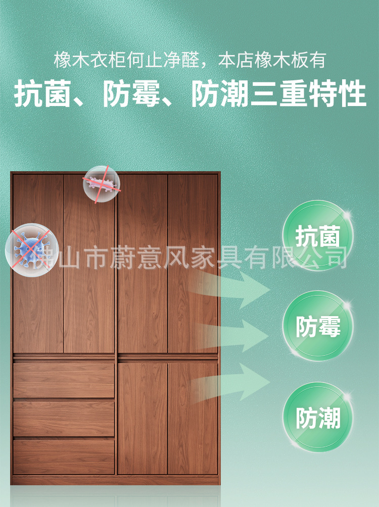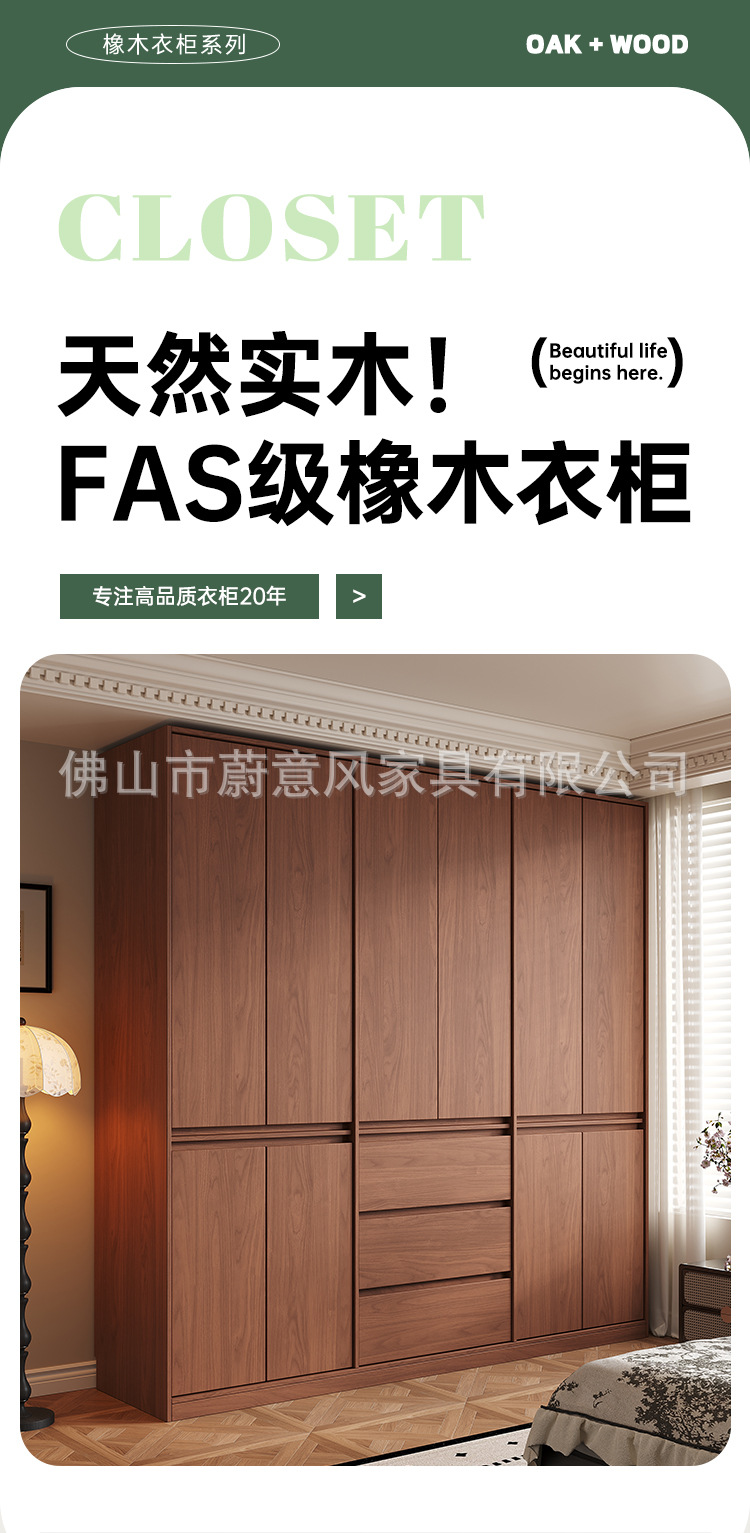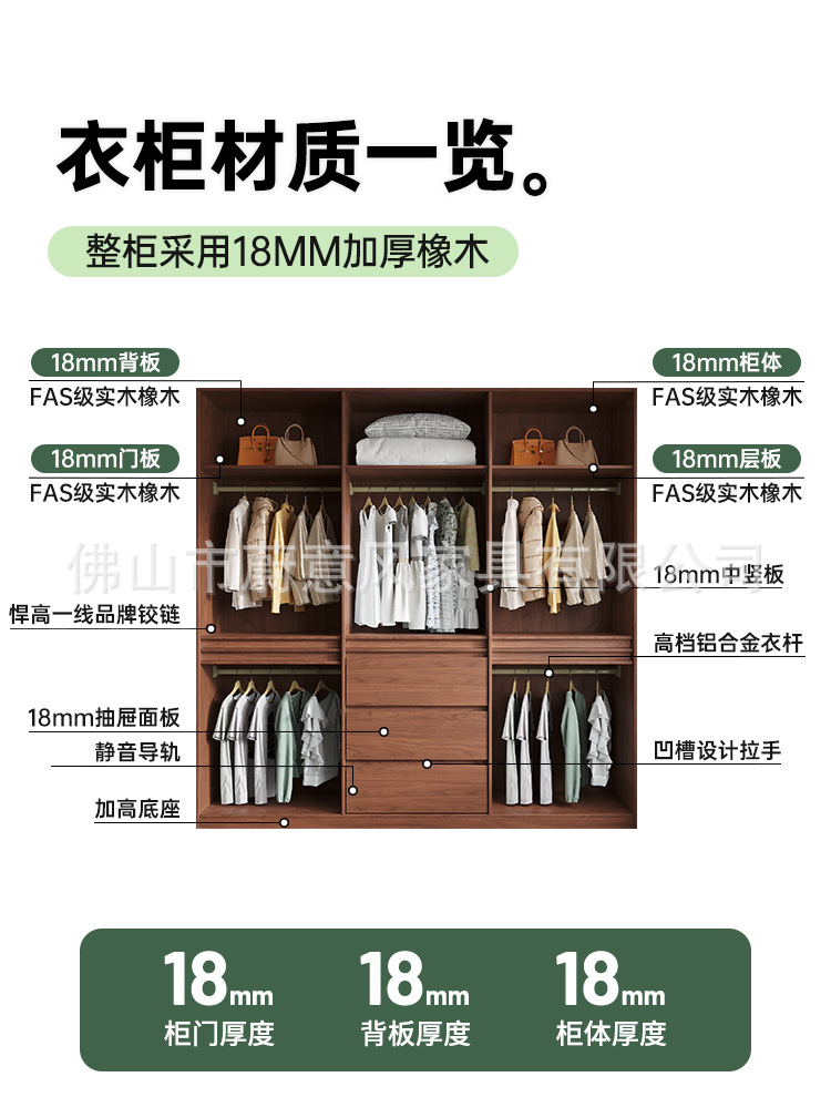 골격선 원목 옷장 ENF 등급 오크 호두 색상 인기 깊은 홈 침실 손잡이 없는 수납 옷장