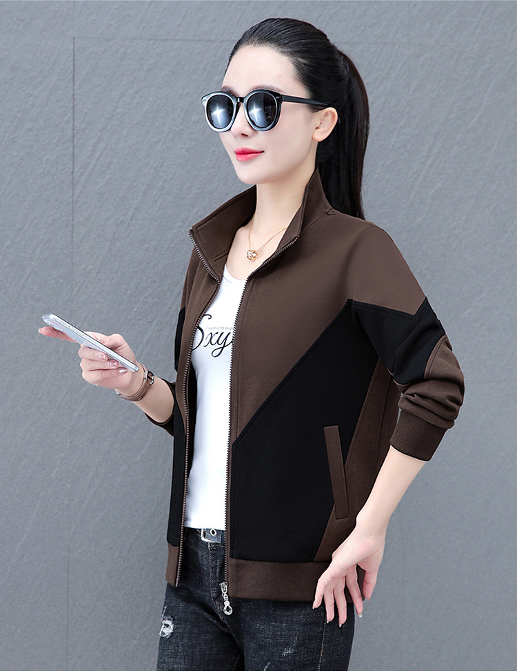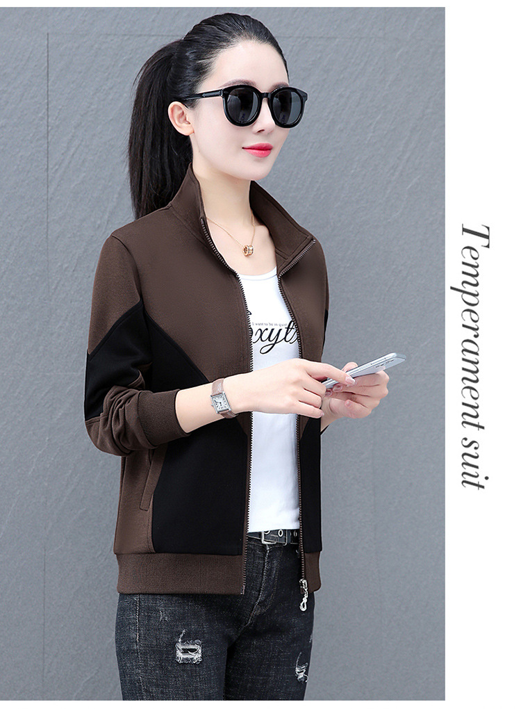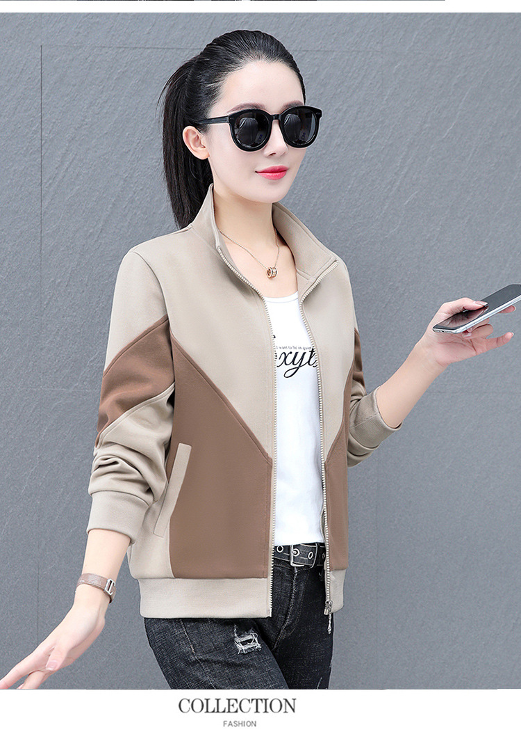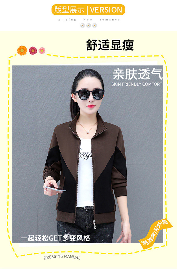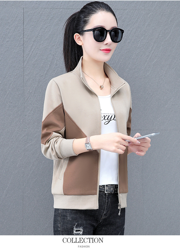 하이 코튼 대비 컬러 스탠드 칼라 패션 캐주얼 재킷 짧은 코트 여성 봄, 가을 새로운 중년 어머니 지퍼 카디건 스웨트 셔츠스토어 가기