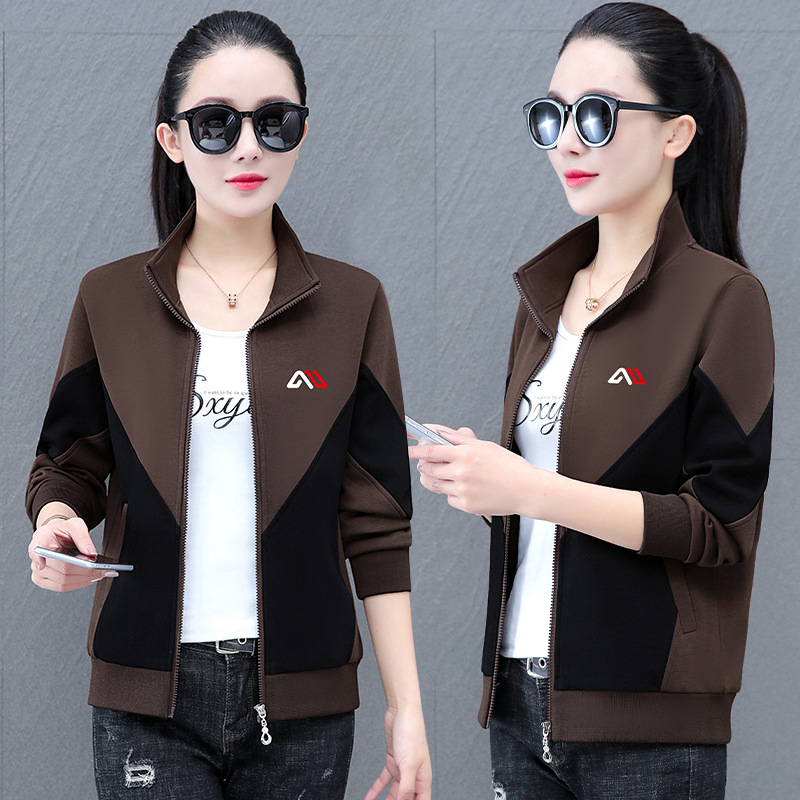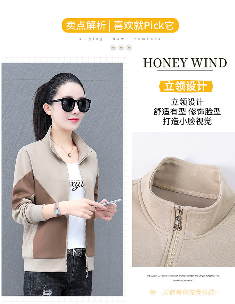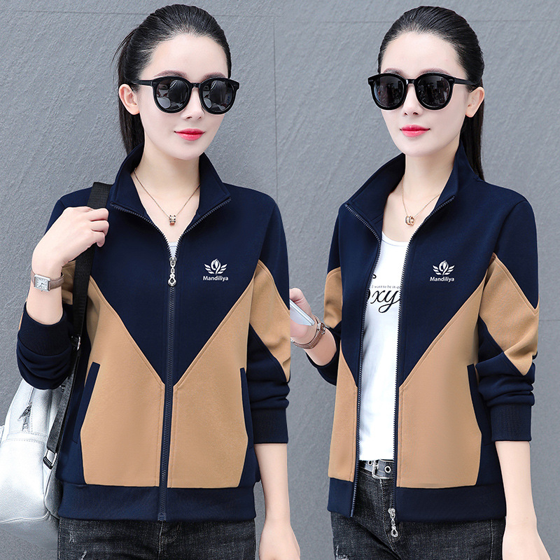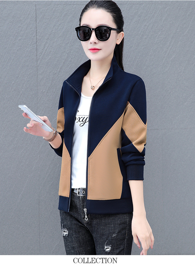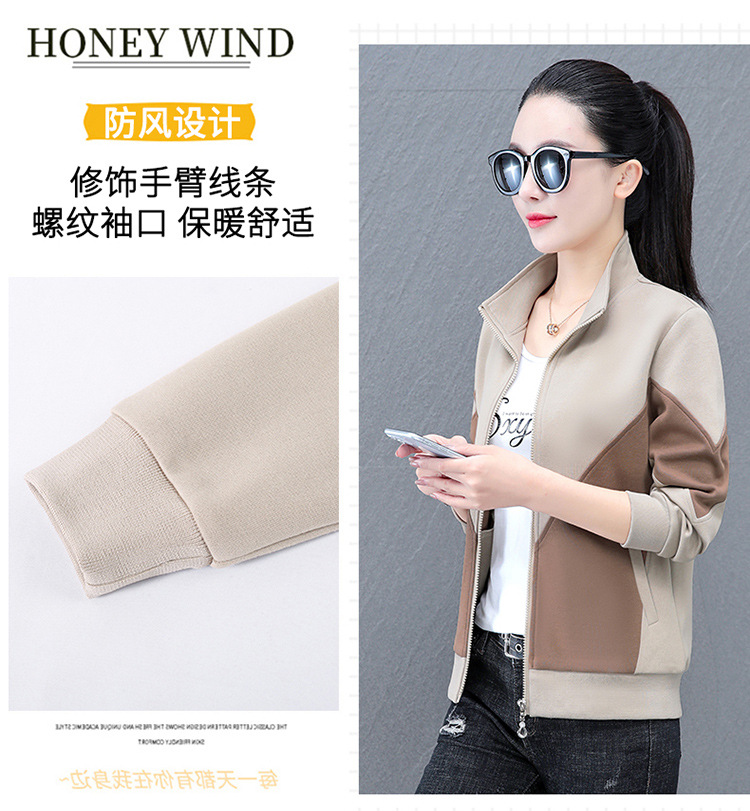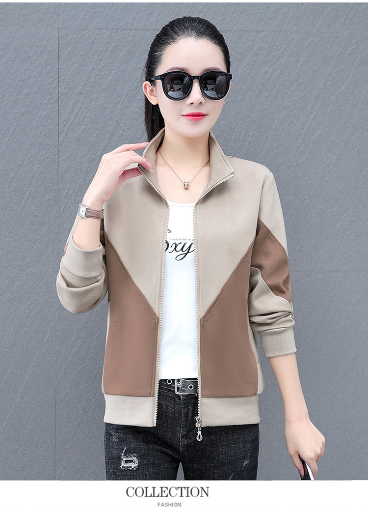 하이 코튼 대비 컬러 스탠드 칼라 패션 캐주얼 재킷 짧은 코트 여성 봄, 가을 새로운 중년 어머니 지퍼 카디건 스웨트 셔츠스토어 가기