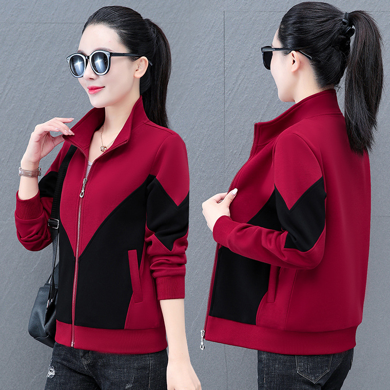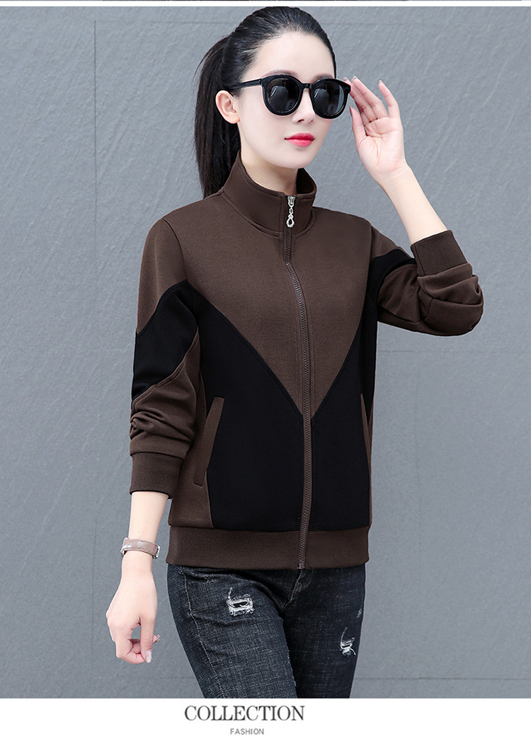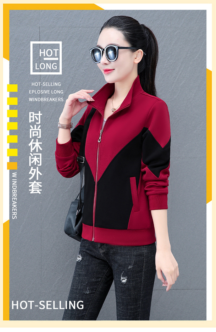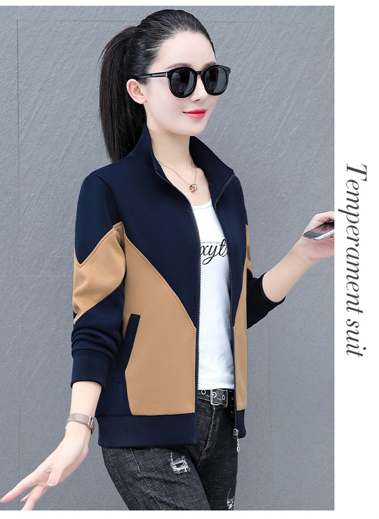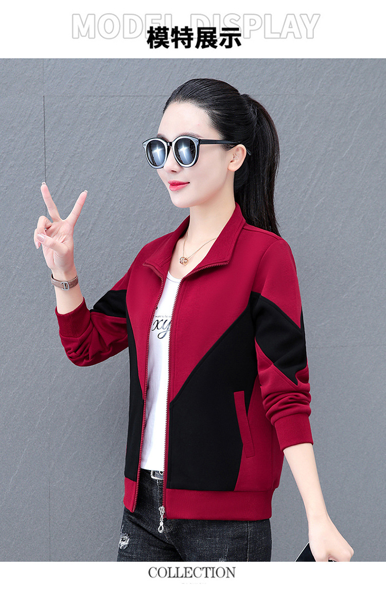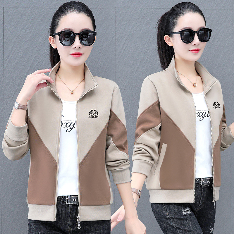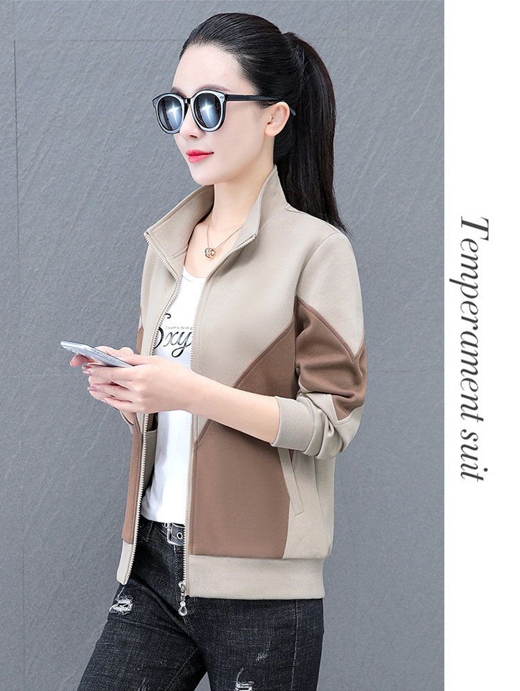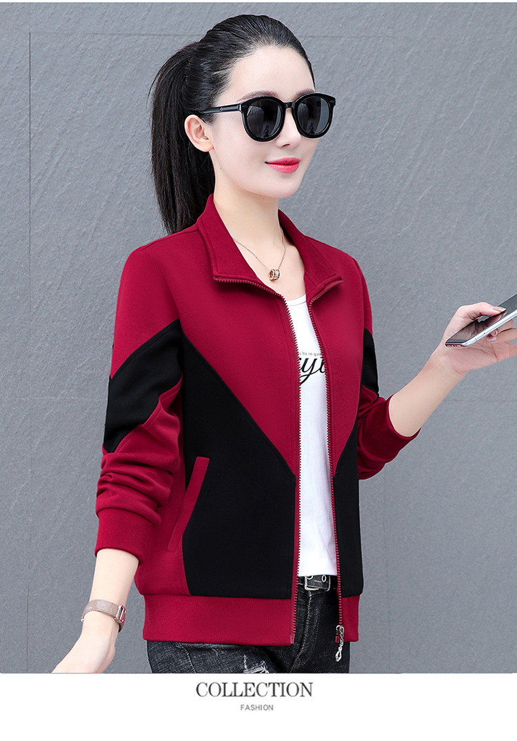 하이 코튼 대비 컬러 스탠드 칼라 패션 캐주얼 재킷 짧은 코트 여성 봄, 가을 새로운 중년 어머니 지퍼 카디건 스웨트 셔츠