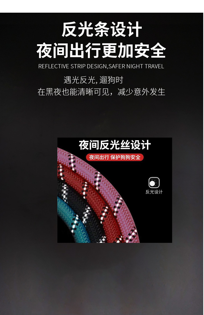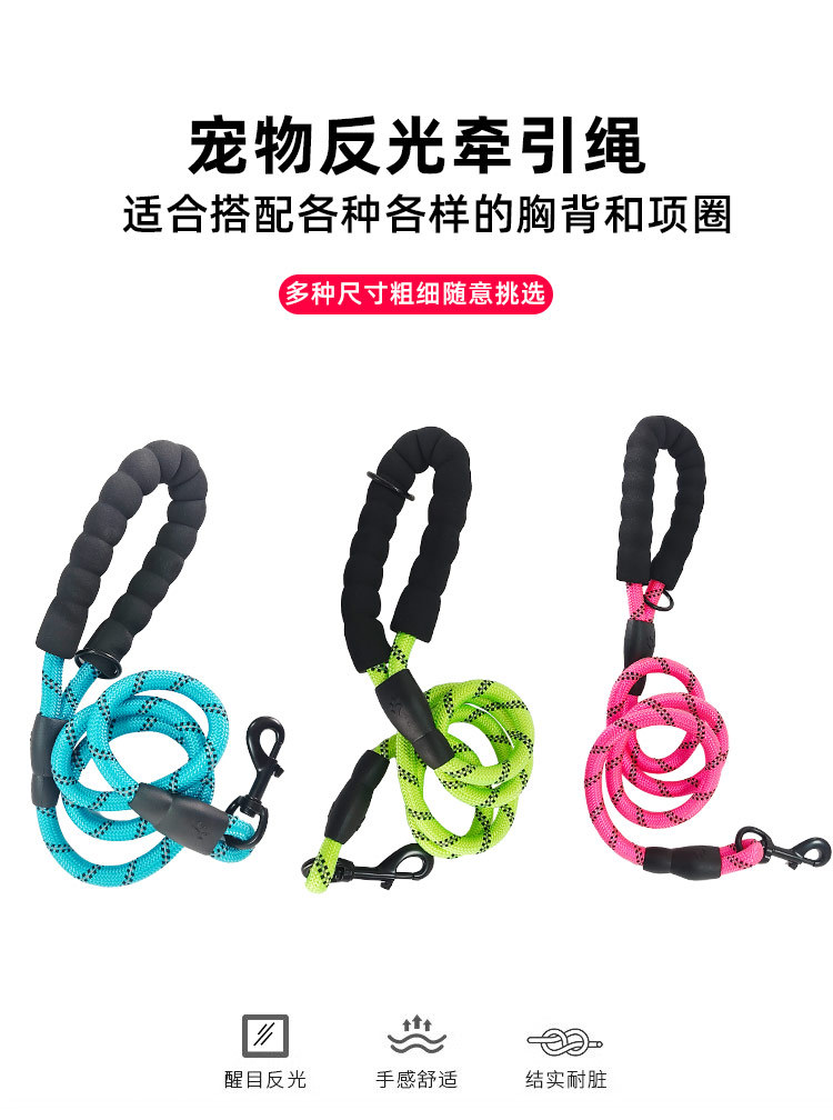 신제품 나일론 개줄 야간 반사 트랙션 로프 내마모성 미끄럼 방지 개줄 재고 도매 애완견 야광 디자인스토어 가기