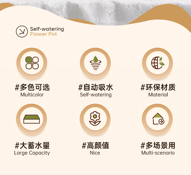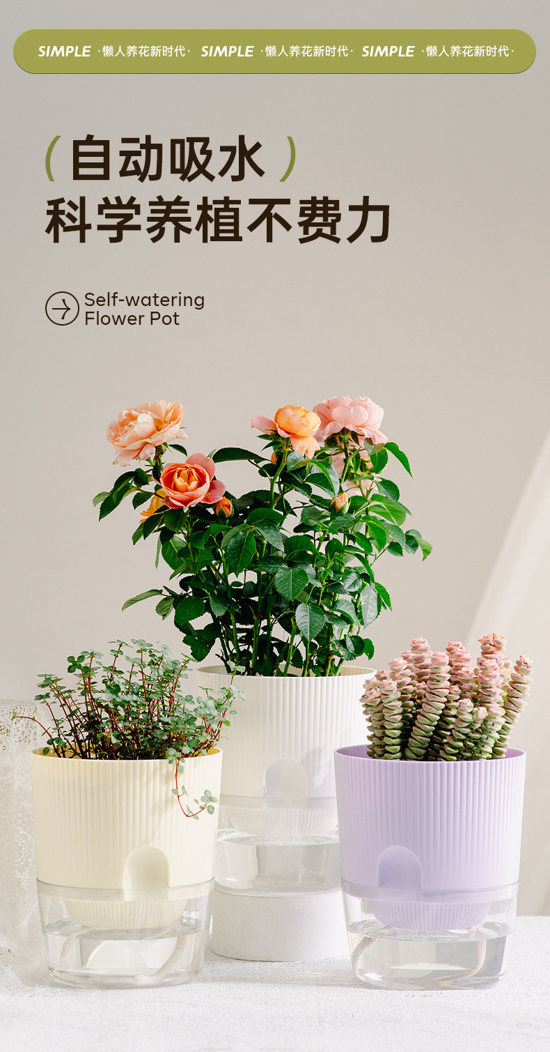 국경을 넘는 자동 흡수 화분, 게으른 사람들을 위한 수경재배 화분, 수경재배 녹색 식물용 흰색 물 저장 화분, 물주기 필요 없는 화분