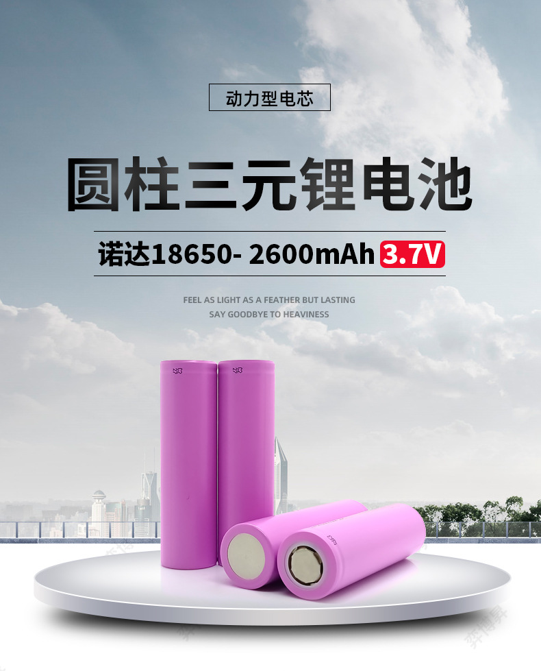 Norda 18650 리튬 배터리 2600mAh/3C 전원 배터리 실외 전원 공급 장치 태양 광 가로등 손전등