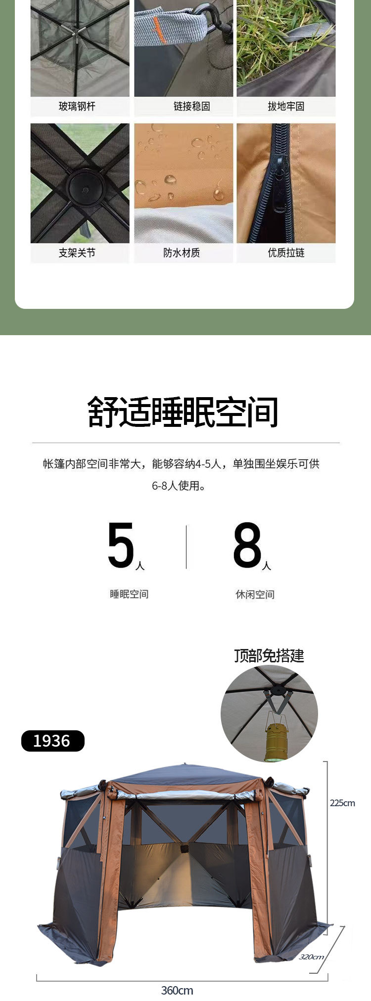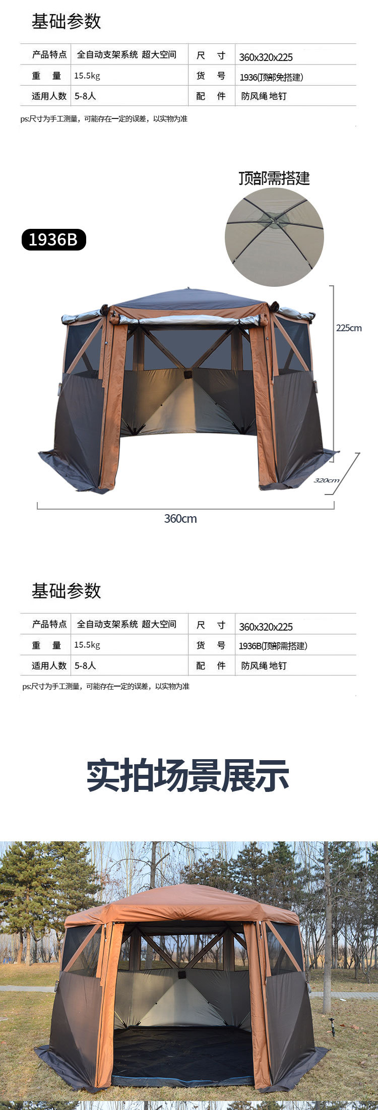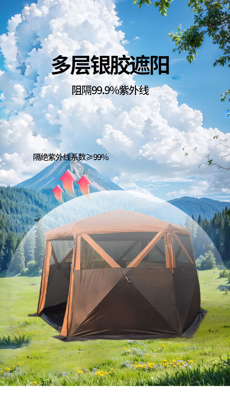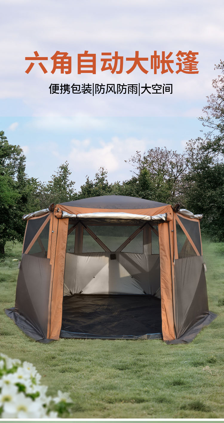 야외 텐트 육각형 자동 빠른 오픈 캠핑 텐트 접이식 나들이 텐트 몽골리안 텐트 5-8인 캠핑 장비스토어 가기
