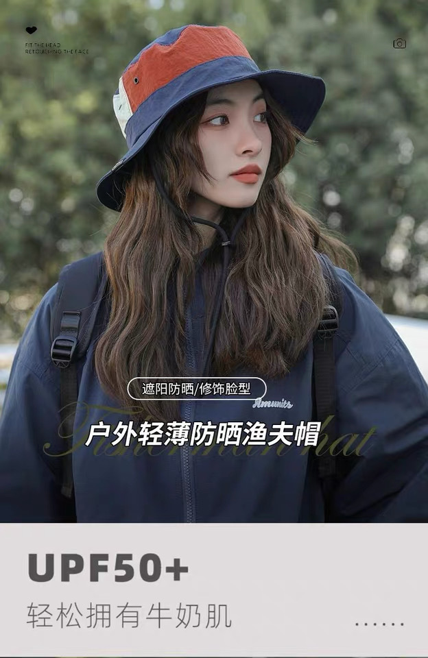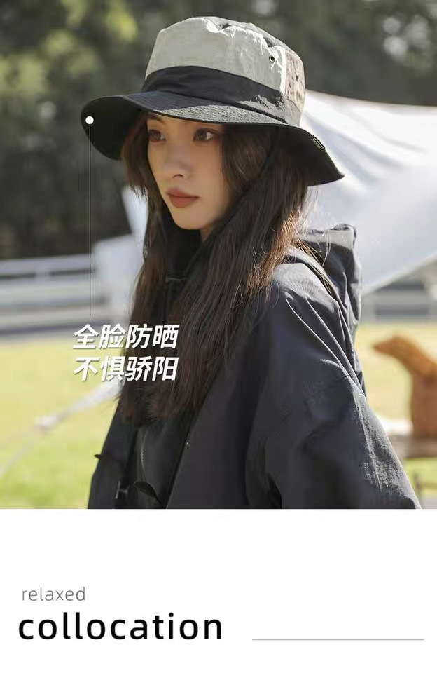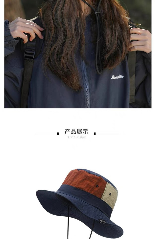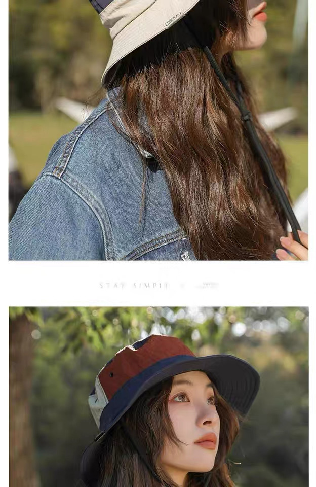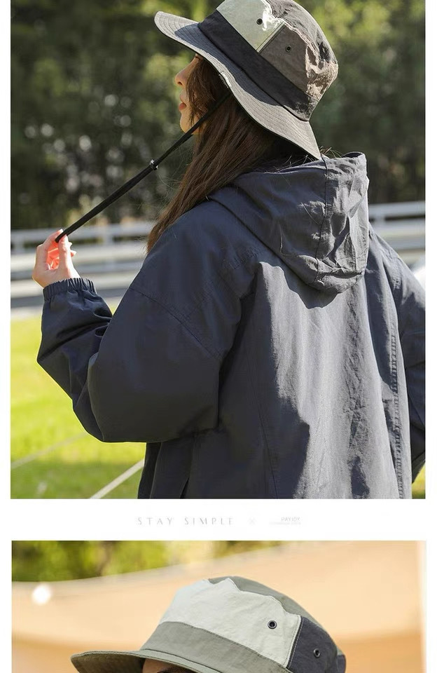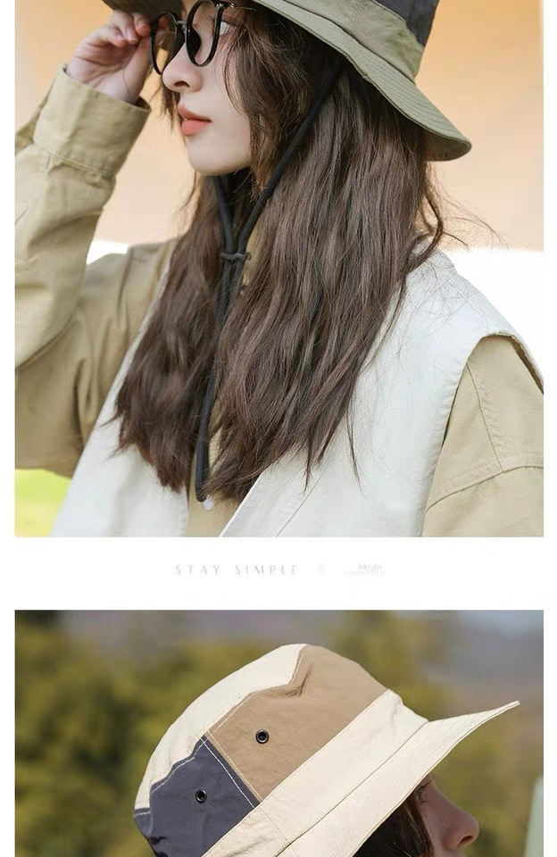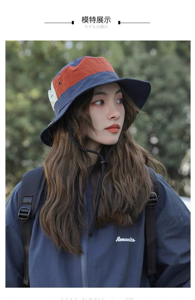 색상 차단 어부 모자 일본식 속건성 2025 새로운 여름 여성 야외 등산 얇은 통기성 태양 보호 모자스토어 가기