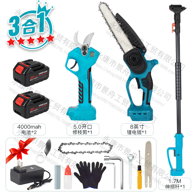 • 3m 고가지 가위 + 텔레스코픽 폴 + 배터리 2개가 포함된 5개 섹션 + 블레이드