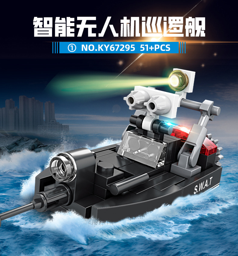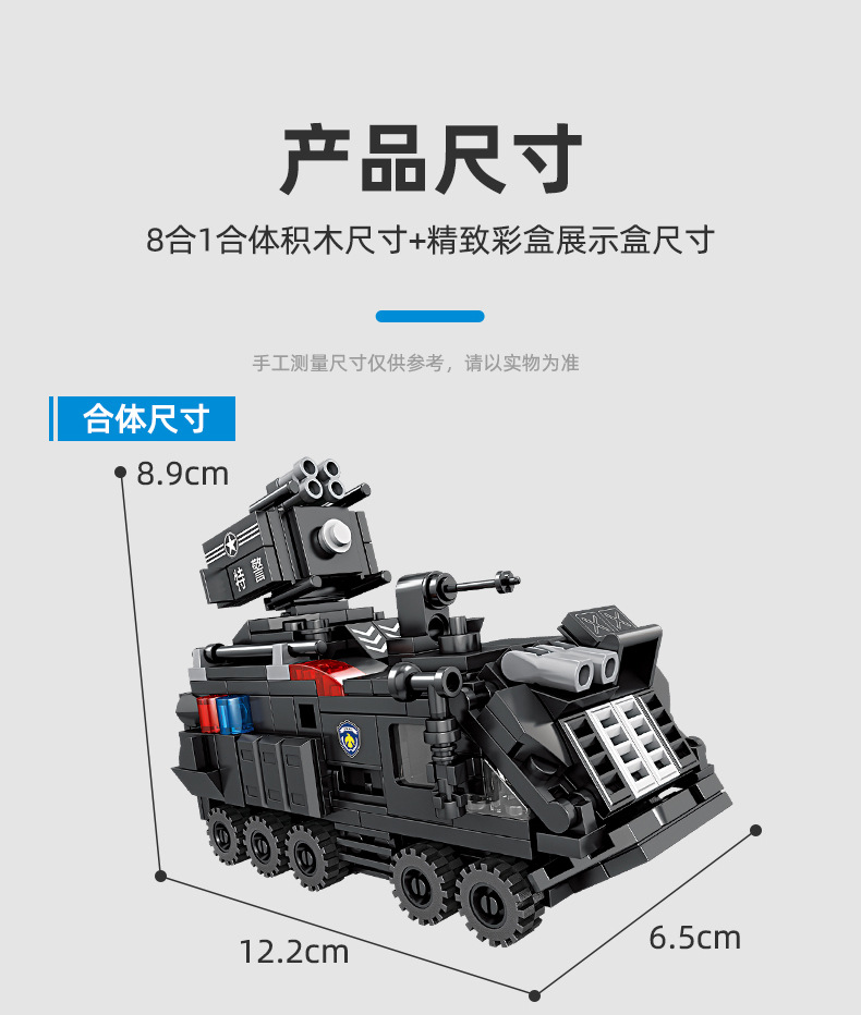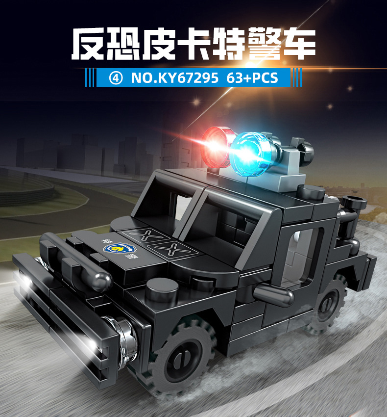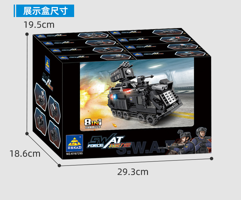 Kaiji 67295 SWAT 8-in-1 방폭형 군사 수송 차량 조립 모델 소년 조립 빌딩 블록 장난감 선물스토어 가기