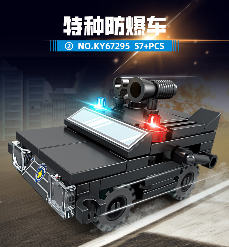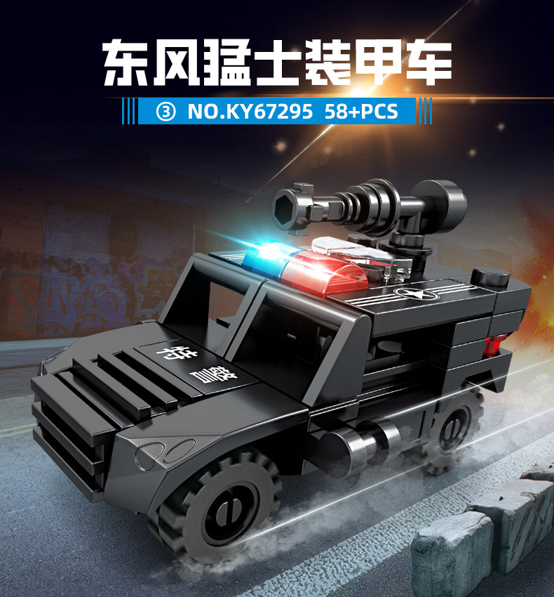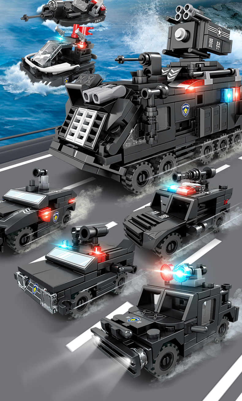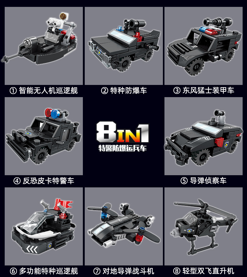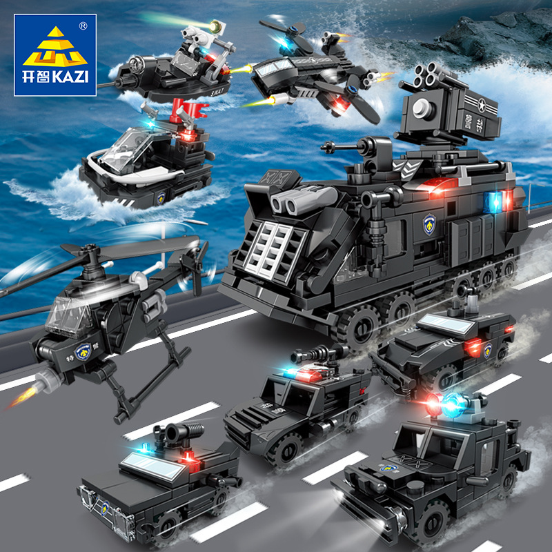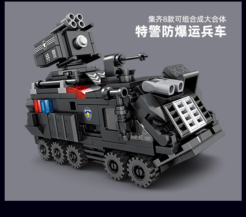 Kaiji 67295 SWAT 8-in-1 방폭형 군사 수송 차량 조립 모델 소년 조립 빌딩 블록 장난감 선물