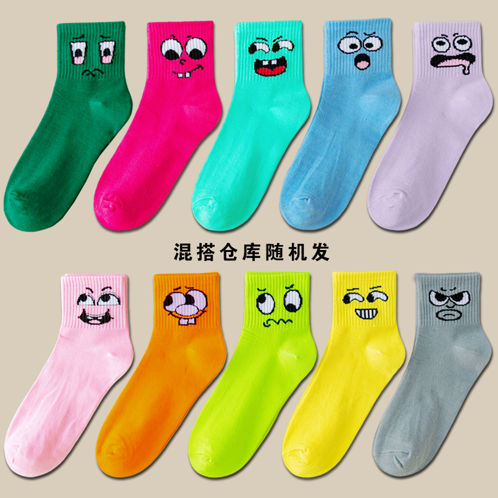 Zhuji 만화 고양이 학생 양말 솔리드 컬러 다목적 긴 양말 봄과 여름 통기성 중간 튜브 양말 여성 도매