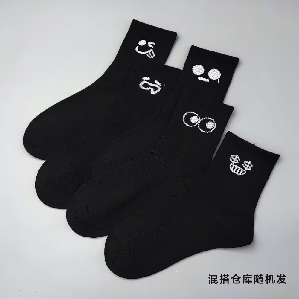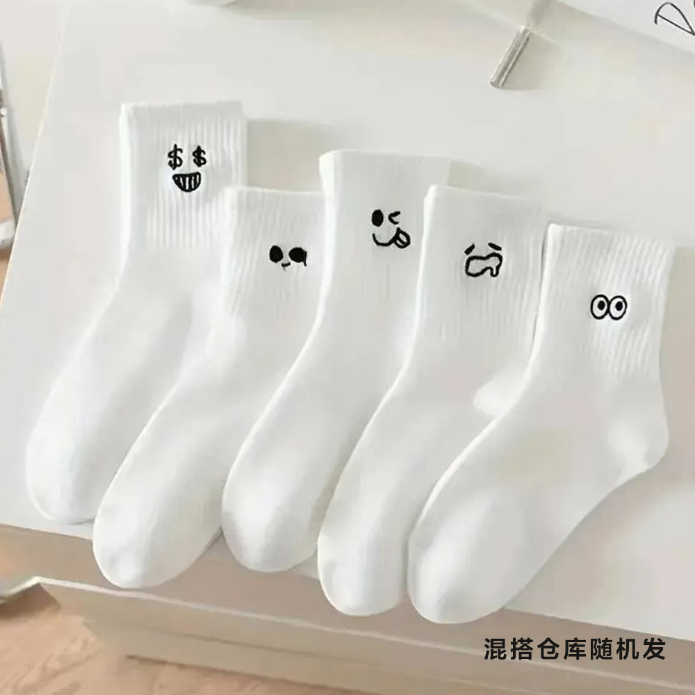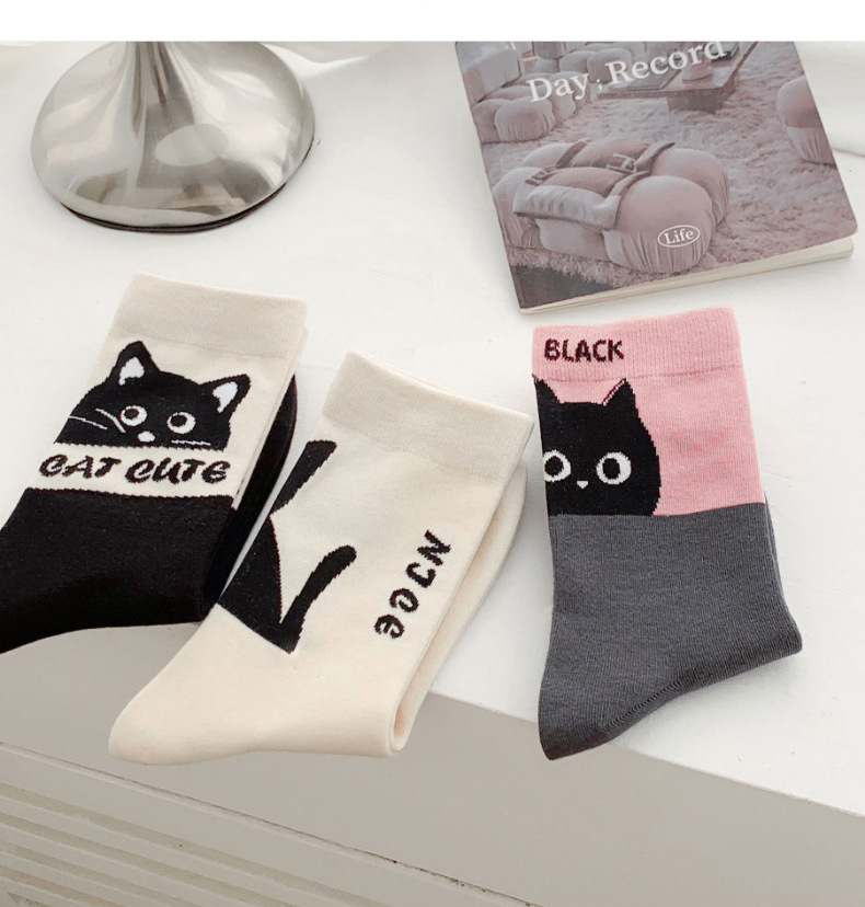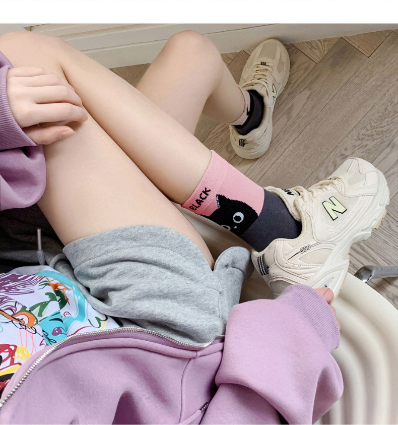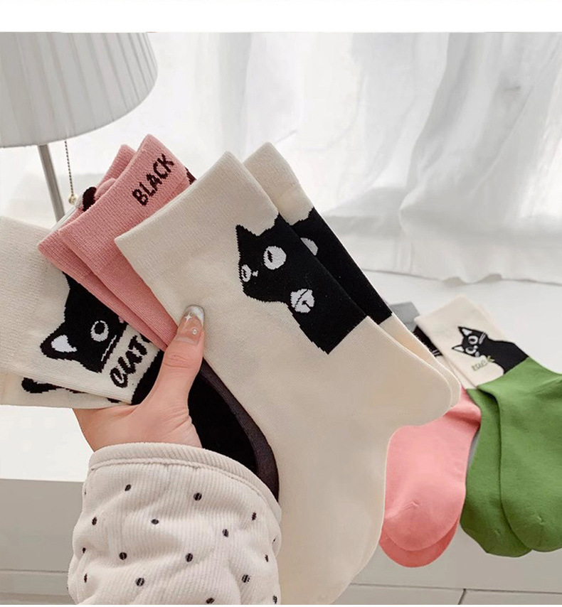 Zhuji 만화 고양이 학생 양말 솔리드 컬러 다목적 긴 양말 봄과 여름 통기성 중간 튜브 양말 여성 도매스토어 가기