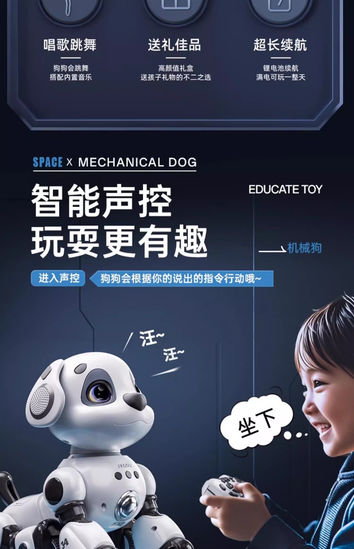 지능형 로봇 개 어린이 장난감 아기 조기 교육 교육 이야기 음악 원격 제어 걷기 로봇 전자 애완 동물