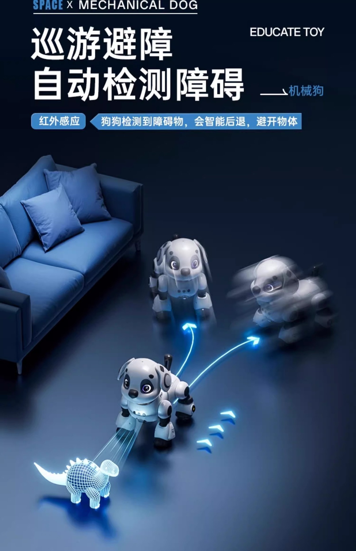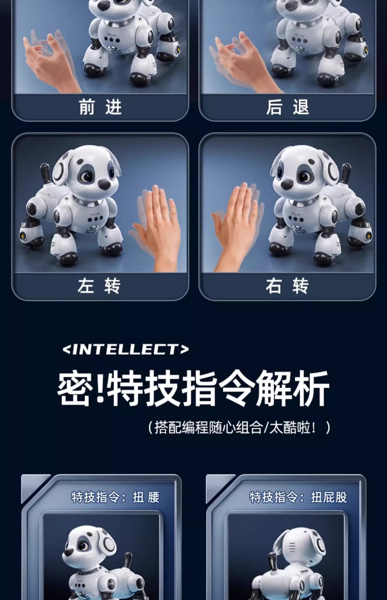 • [업그레이드된 제스처 장애물 회피 버전] 단일 리튬 배터리 기술 흰색 - 업그레이드된 대형 프로그래밍 도그 - 제스처 감지 + 순찰 장애물 회피 + 터치 상호 작용 + 음성 감지 + 스토리 백과사전