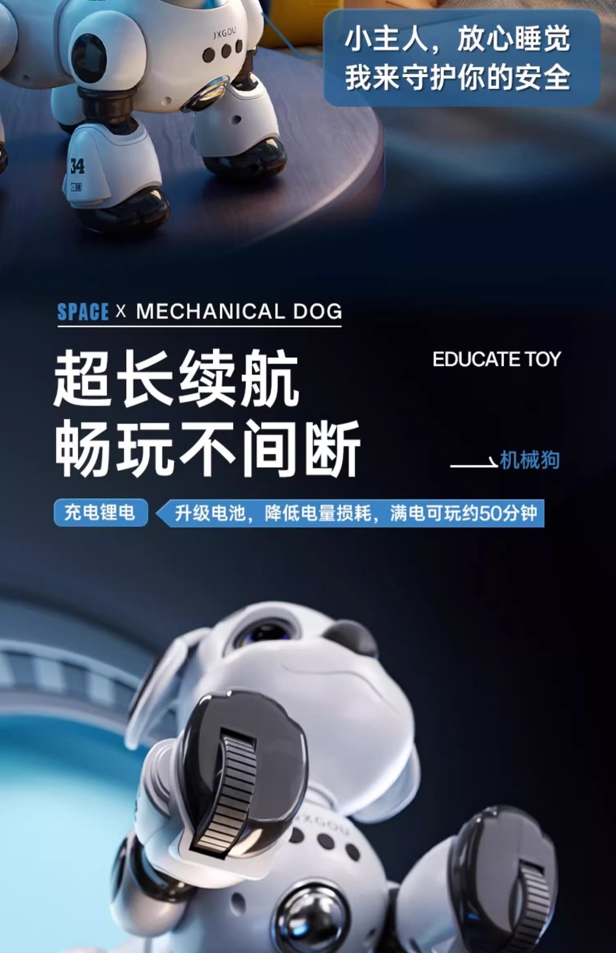 • [업그레이드된 제스처 장애물 회피 버전] 듀얼 리튬 배터리 기술 화이트 - 업그레이드된 대형 프로그래밍 도그 - 제스처 감지 + 순찰 장애물 회피 + 터치 상호 작용 + 음성 감지 + 스토리 백과사전