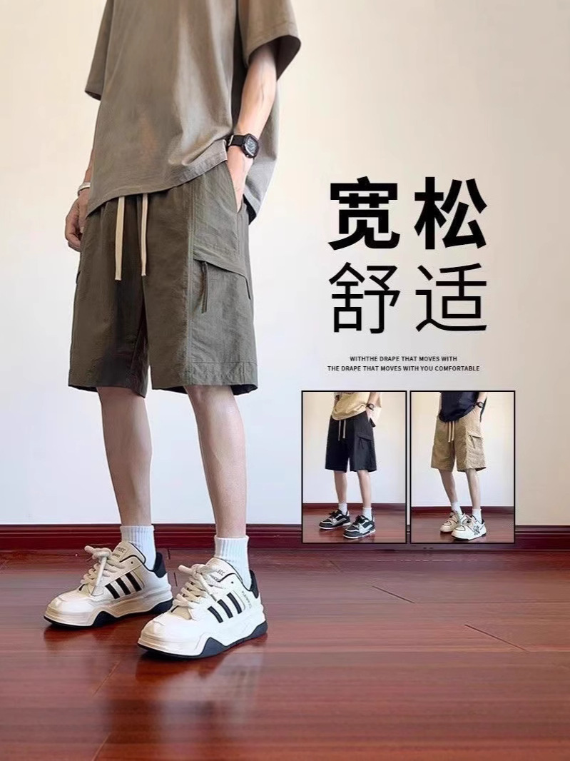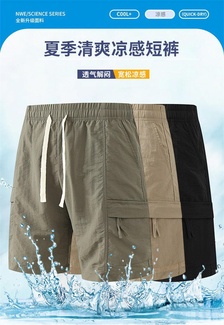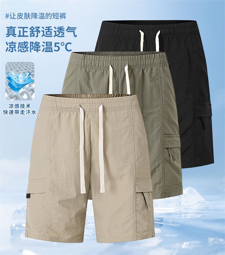 트렌디한 브랜드 카고 반바지 남성 여름 얇은 2025 새로운 스포츠 바지 겉옷 얼음 실크 다용도 5점 캐주얼 바지스토어 가기